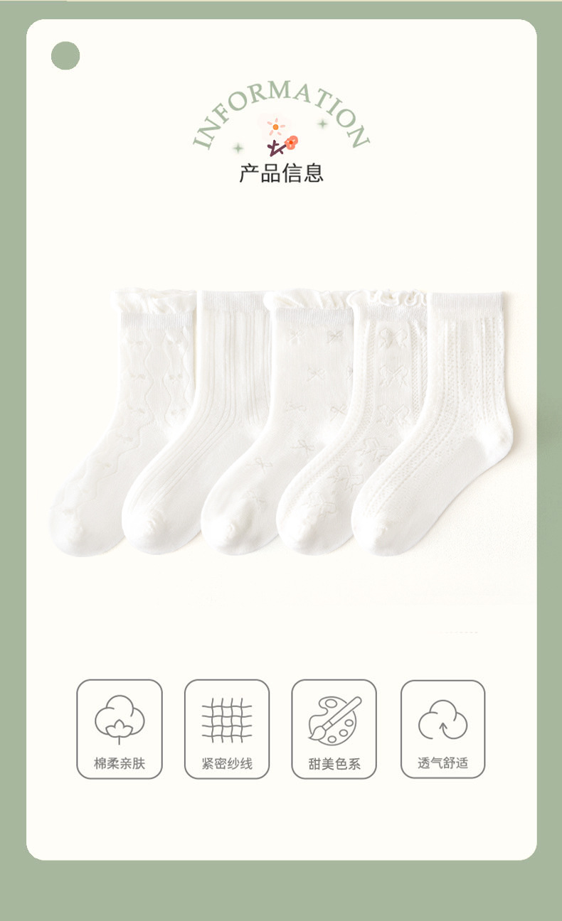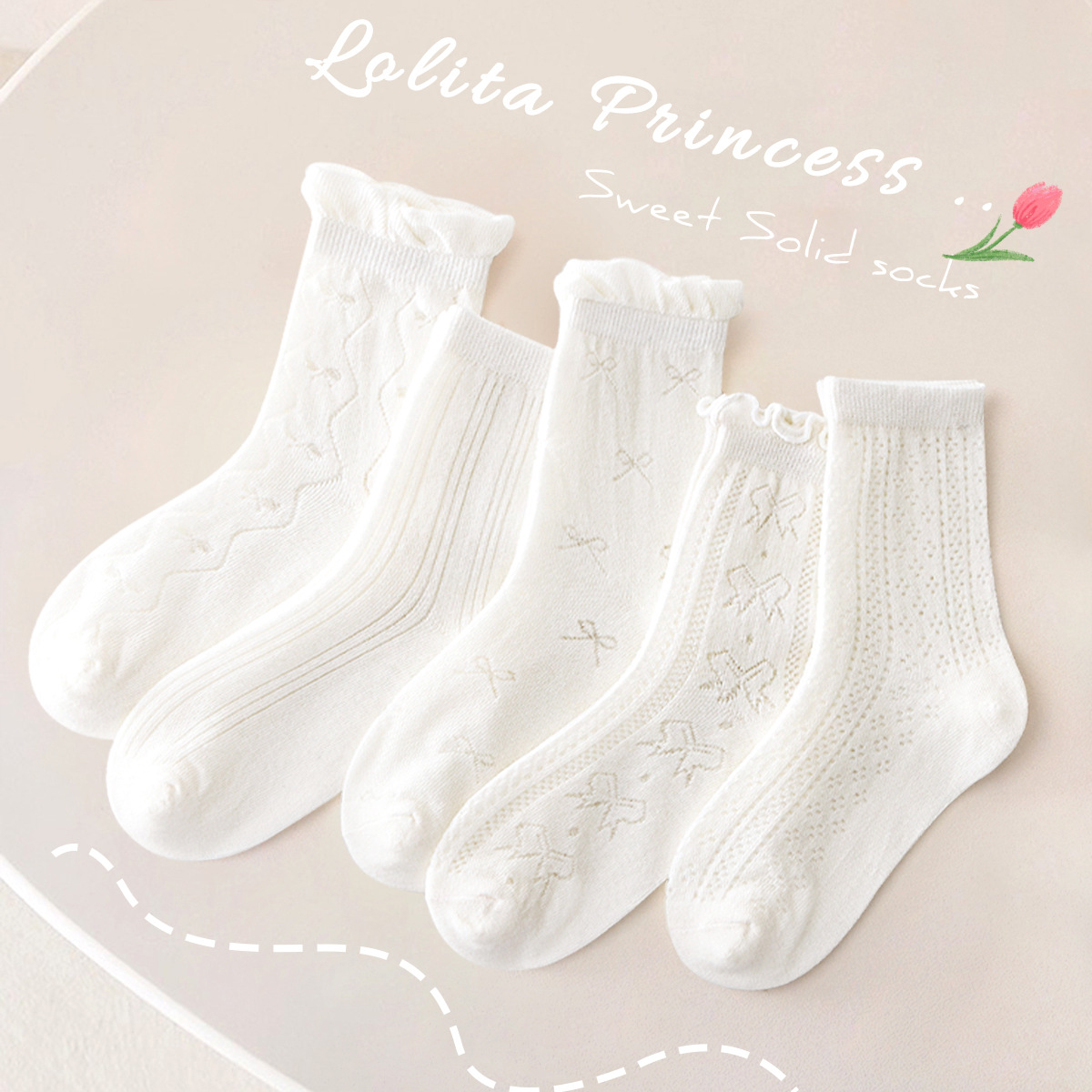 소녀 양말 봄과 여름 얇은 로리타 클래스 A 면 양말 경량 통기성 화이트 프린세스 스타일 레이스 어린이 양말
