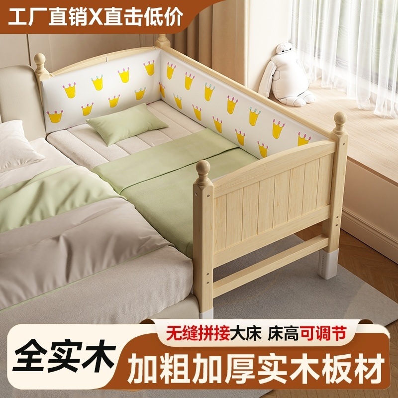 어린이 접합 침대 확대 유아용 침대 소년 소녀 단단한 나무 대형 침대 가드 레일 아기 침대 옆 싱글 침대 크로스 보더스토어 가기