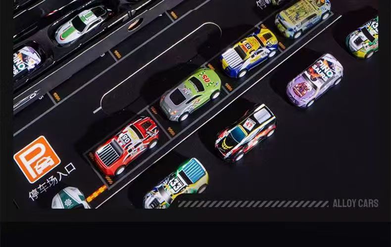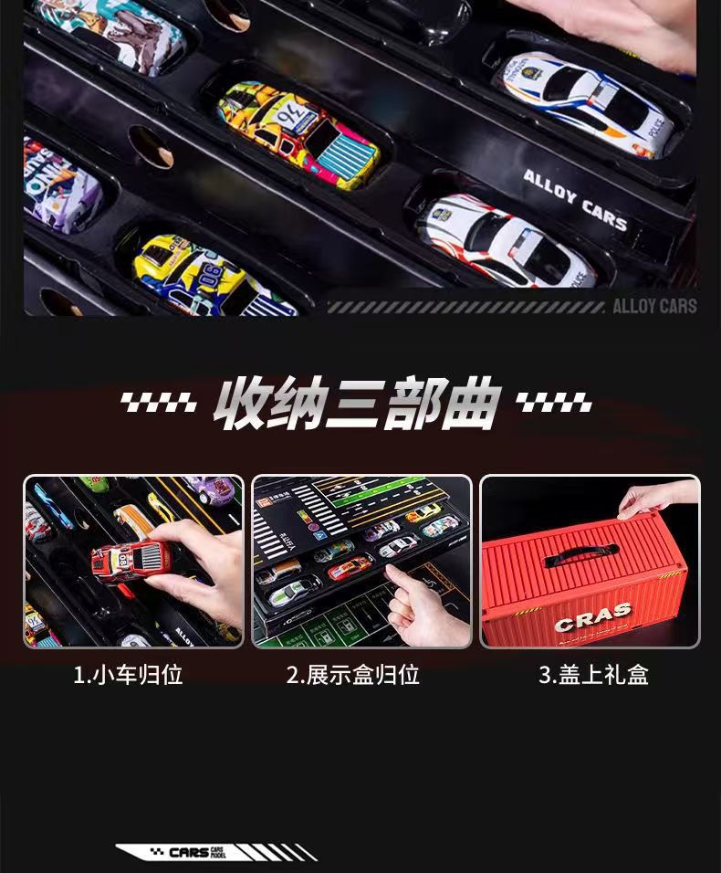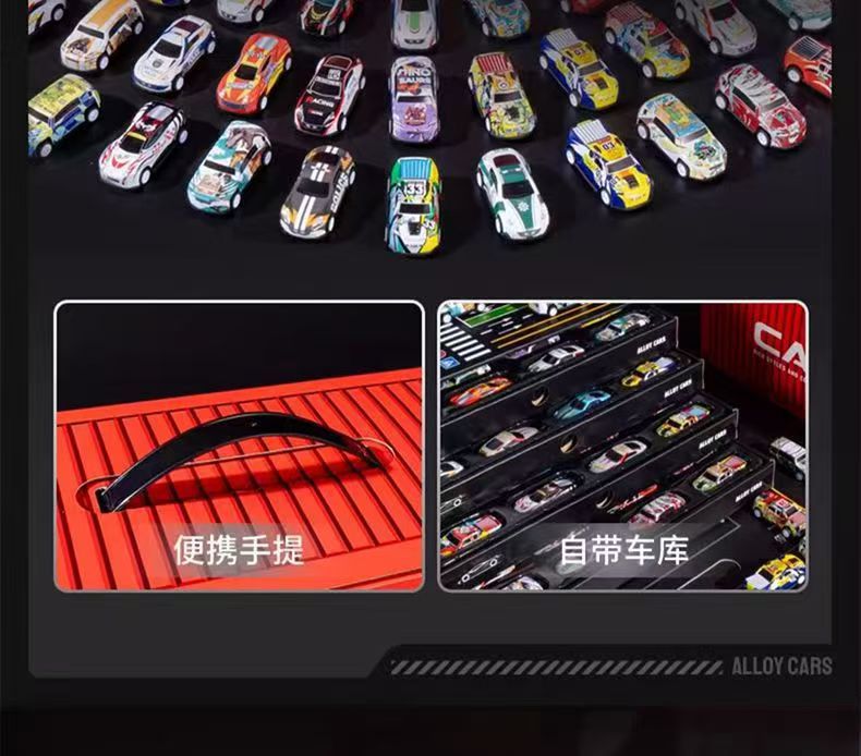 • [컨테이너 주차장 휴대용 선물 상자] + 합금 경주용 자동차 48대