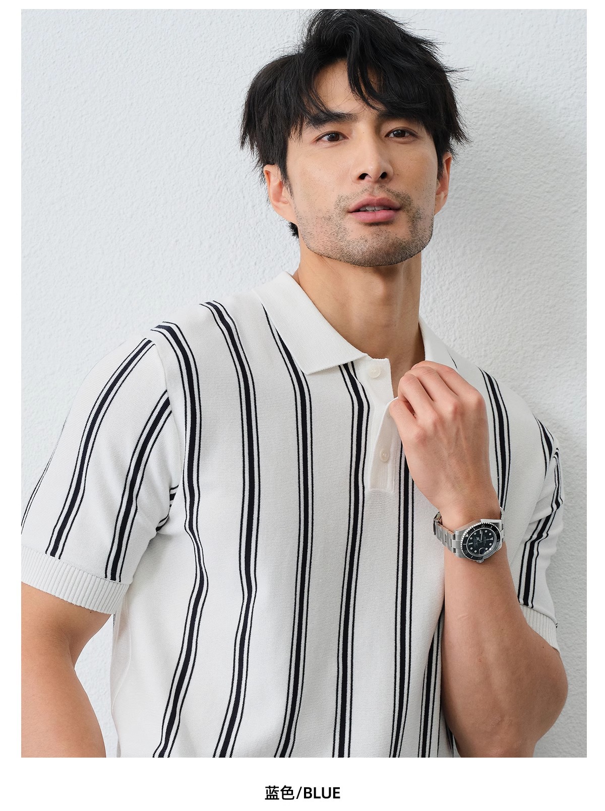 니트 폴로 셔츠 남성용 반팔 여름 아이스 실크 2025 남성용 새로운 고급 멋진 스트라이프 라펠 티셔츠