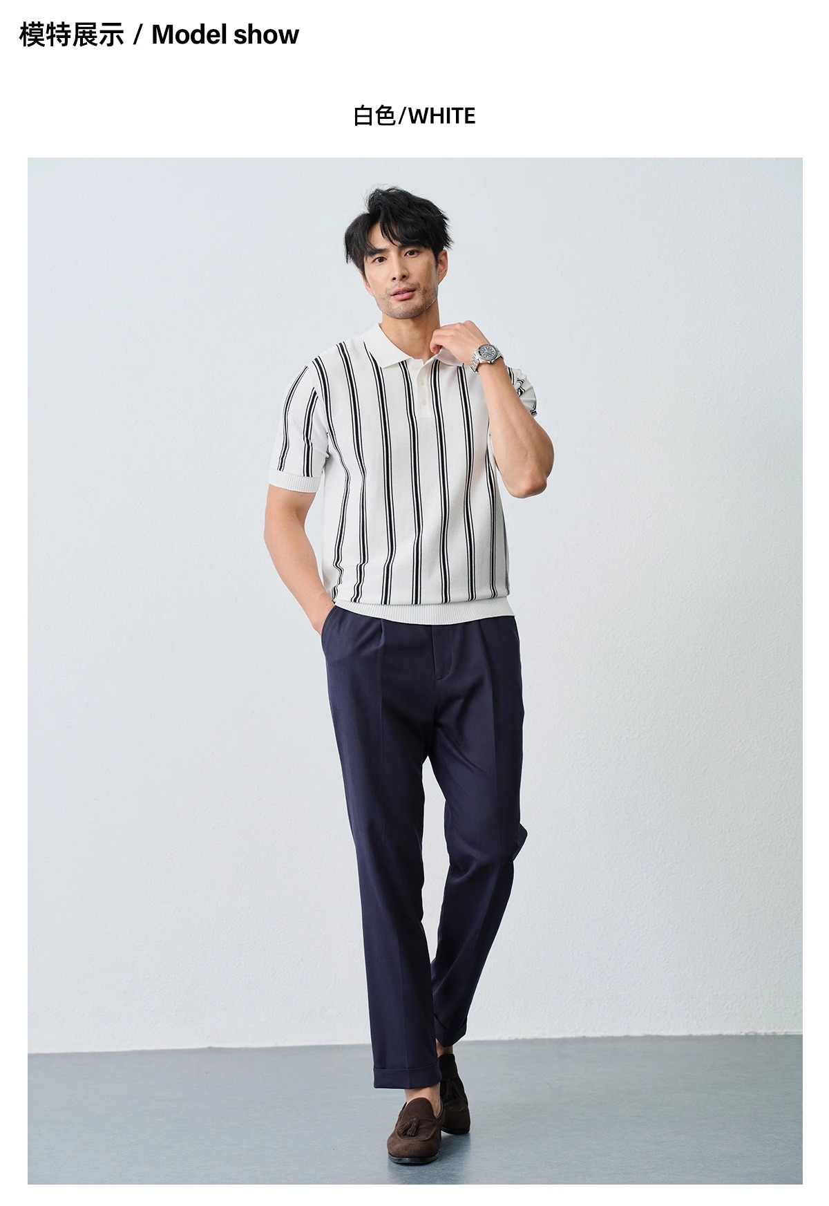니트 폴로 셔츠 남성용 반팔 여름 아이스 실크 2025 남성용 새로운 고급 멋진 스트라이프 라펠 티셔츠스토어 가기