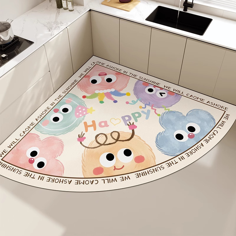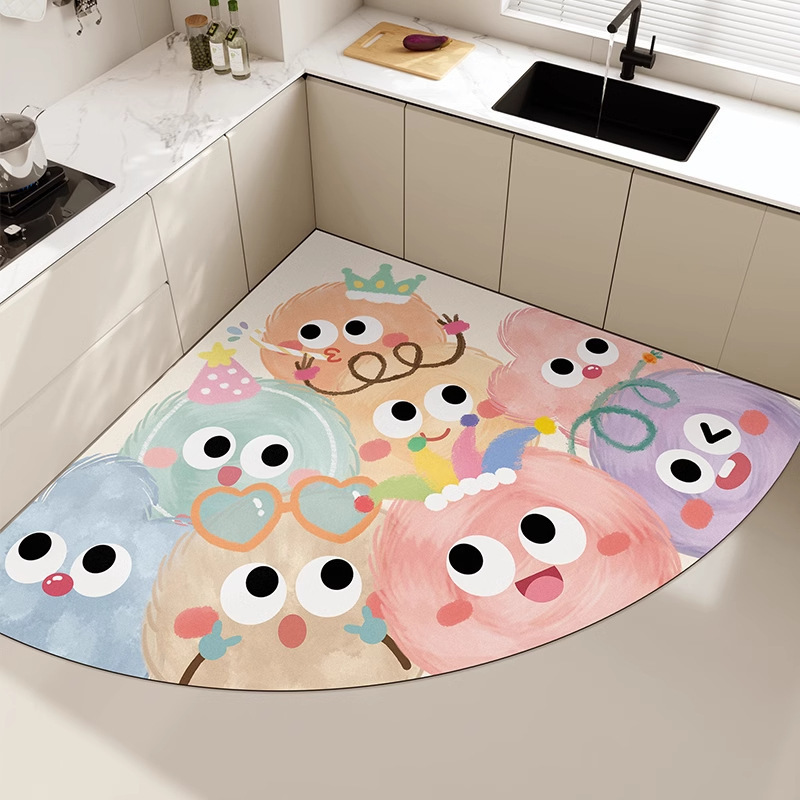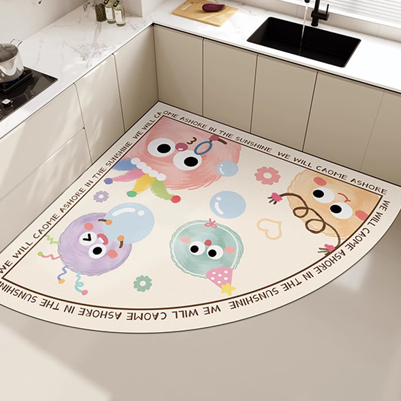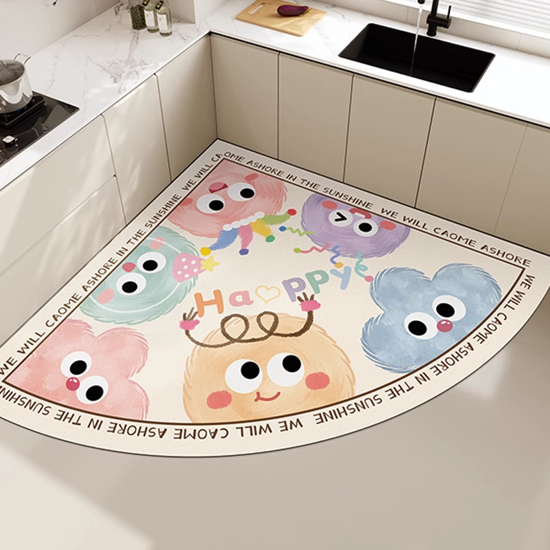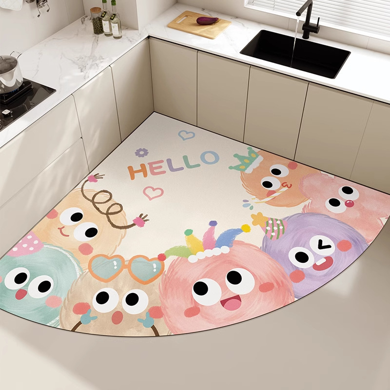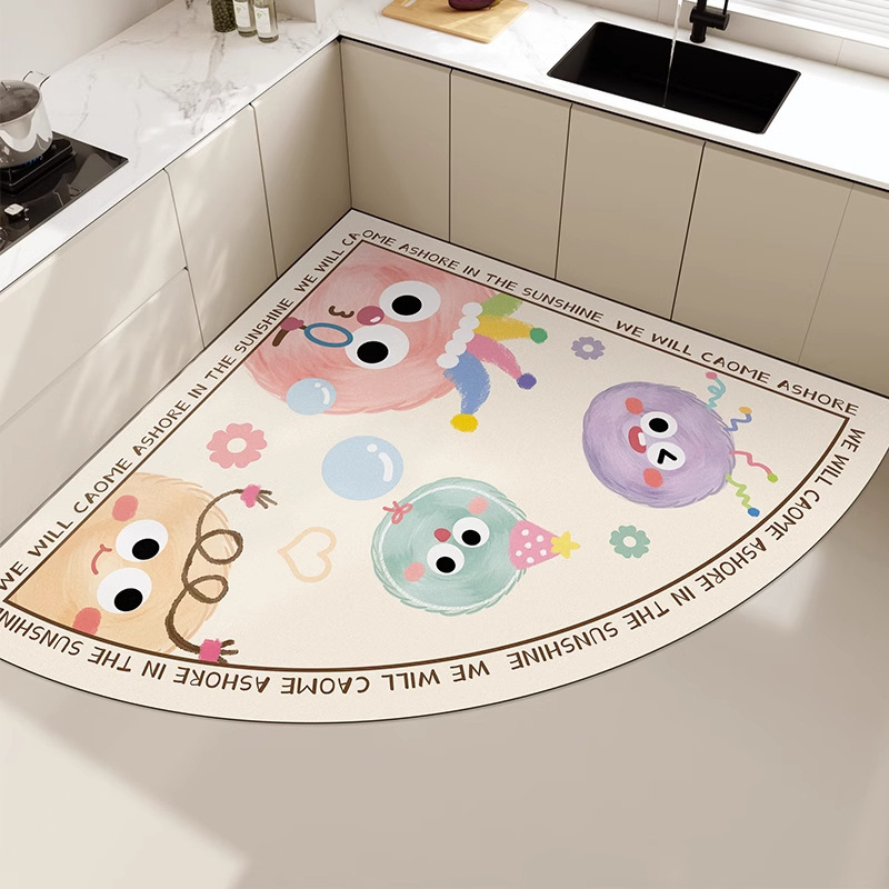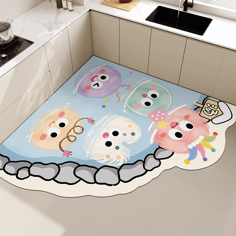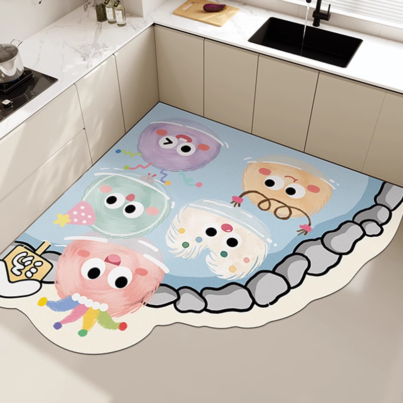 만화 부채꼴 규조토 진흙 주방 바닥 매트, 물과 기름 흡수, 미끄럼 방지 발 매트, 내마모성 및 먼지 방지 카펫, 직송스토어 가기