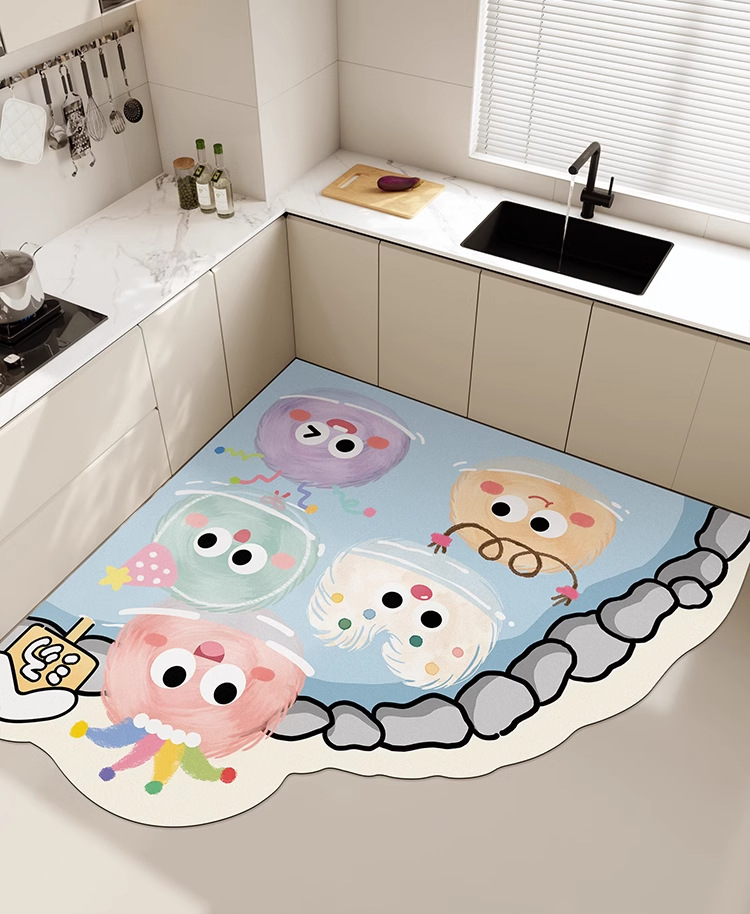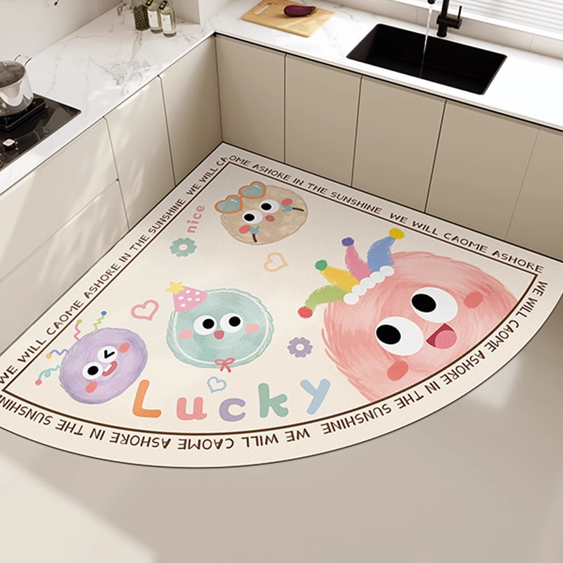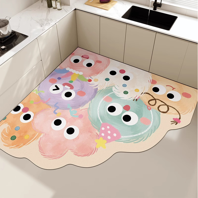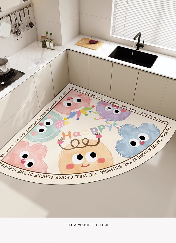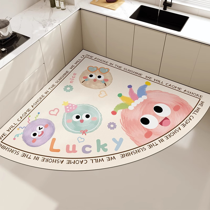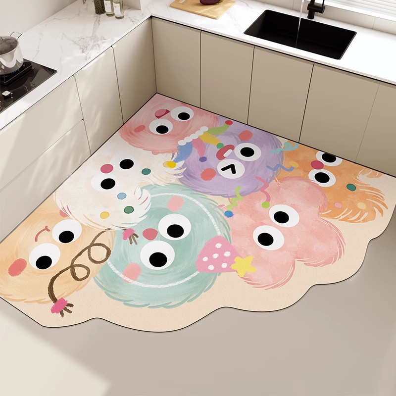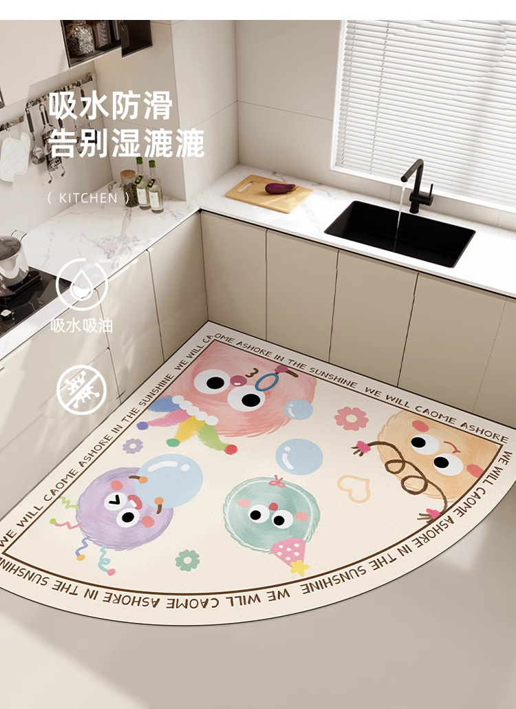 만화 부채꼴 규조토 진흙 주방 바닥 매트, 물과 기름 흡수, 미끄럼 방지 발 매트, 내마모성 및 먼지 방지 카펫, 직송스토어 가기