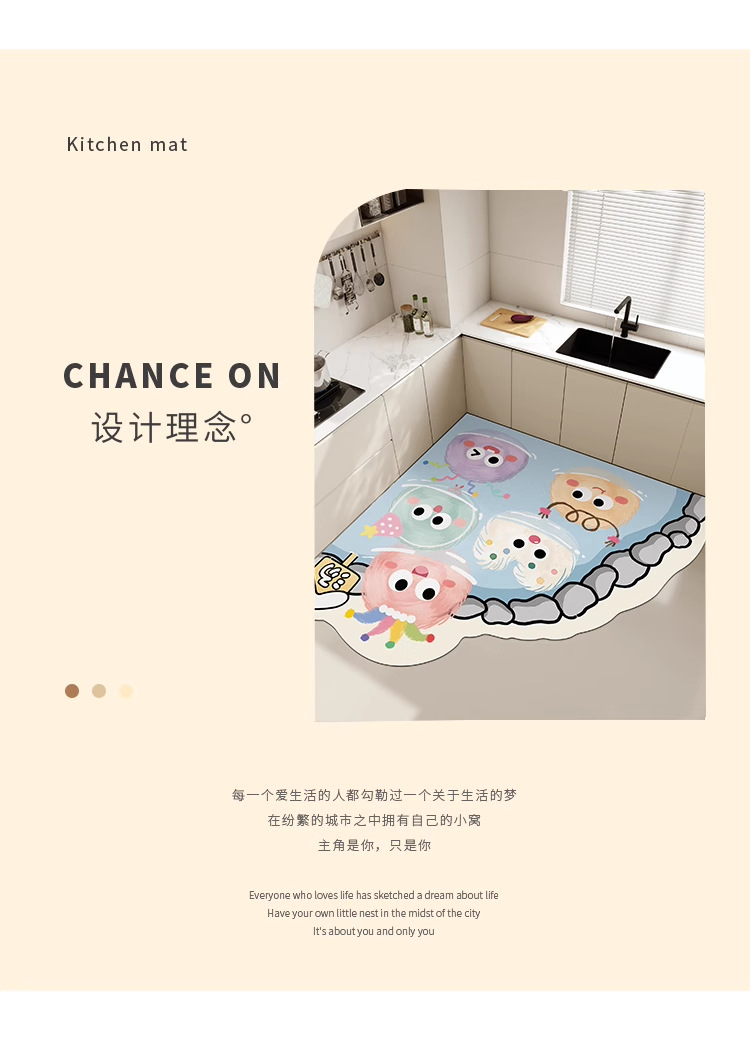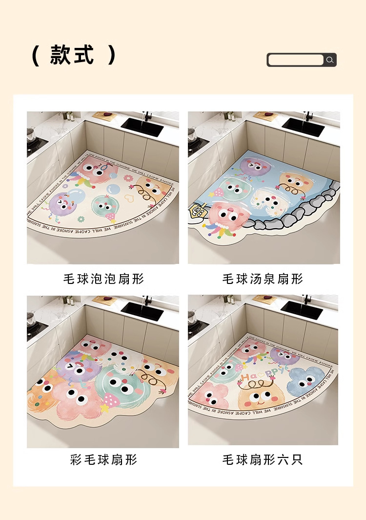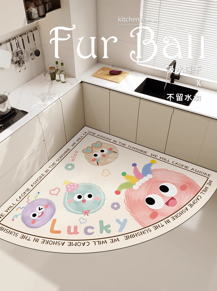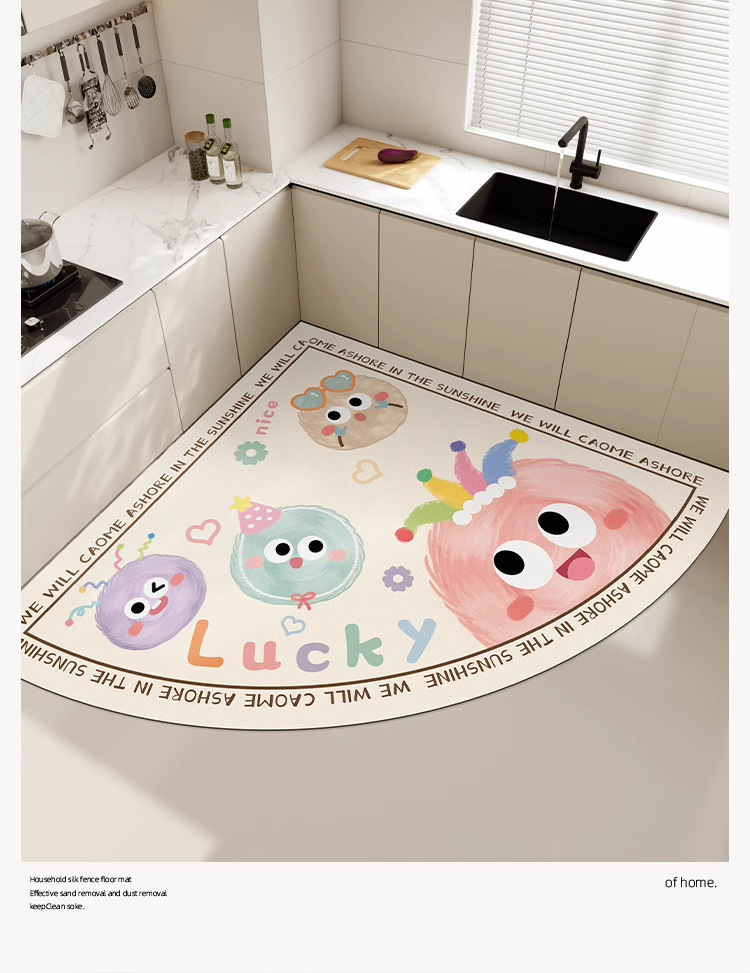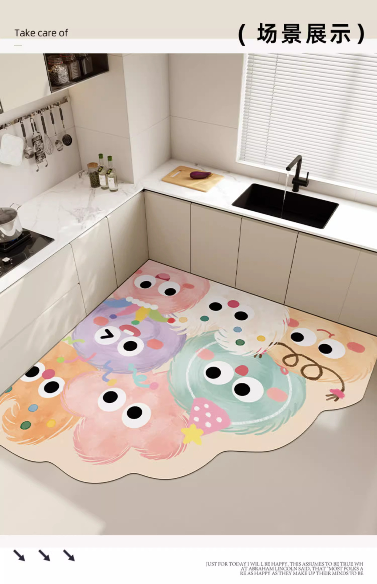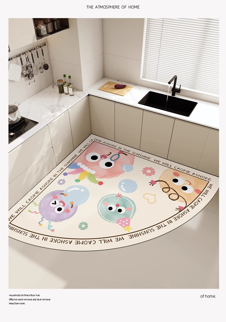 만화 부채꼴 규조토 진흙 주방 바닥 매트, 물과 기름 흡수, 미끄럼 방지 발 매트, 내마모성 및 먼지 방지 카펫, 직송스토어 가기