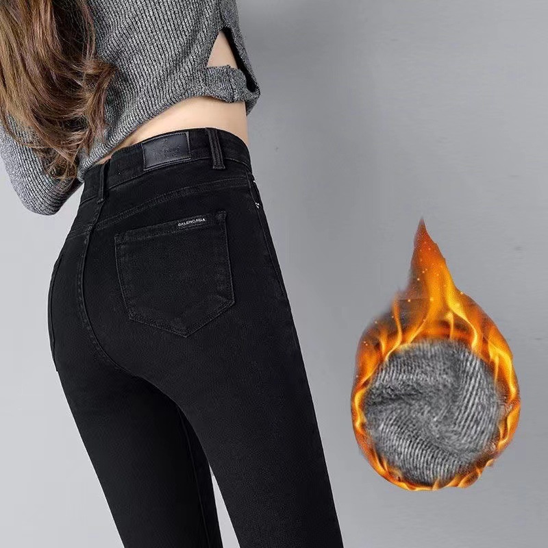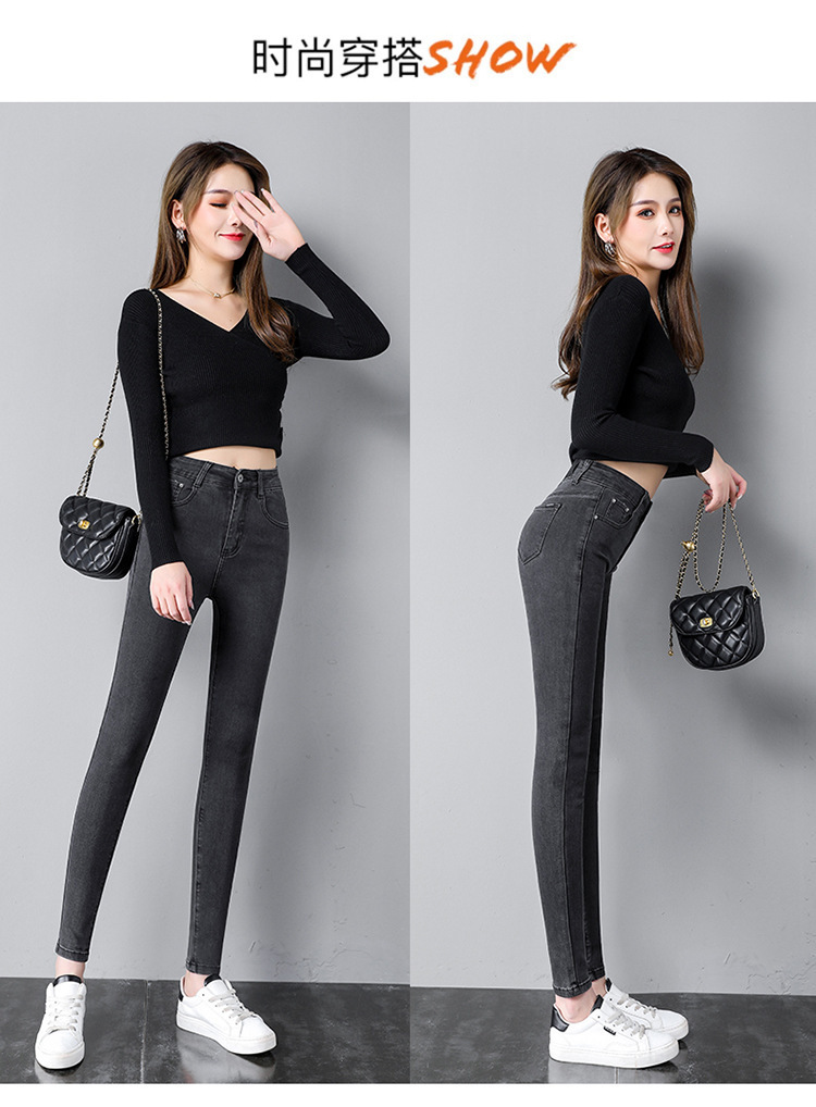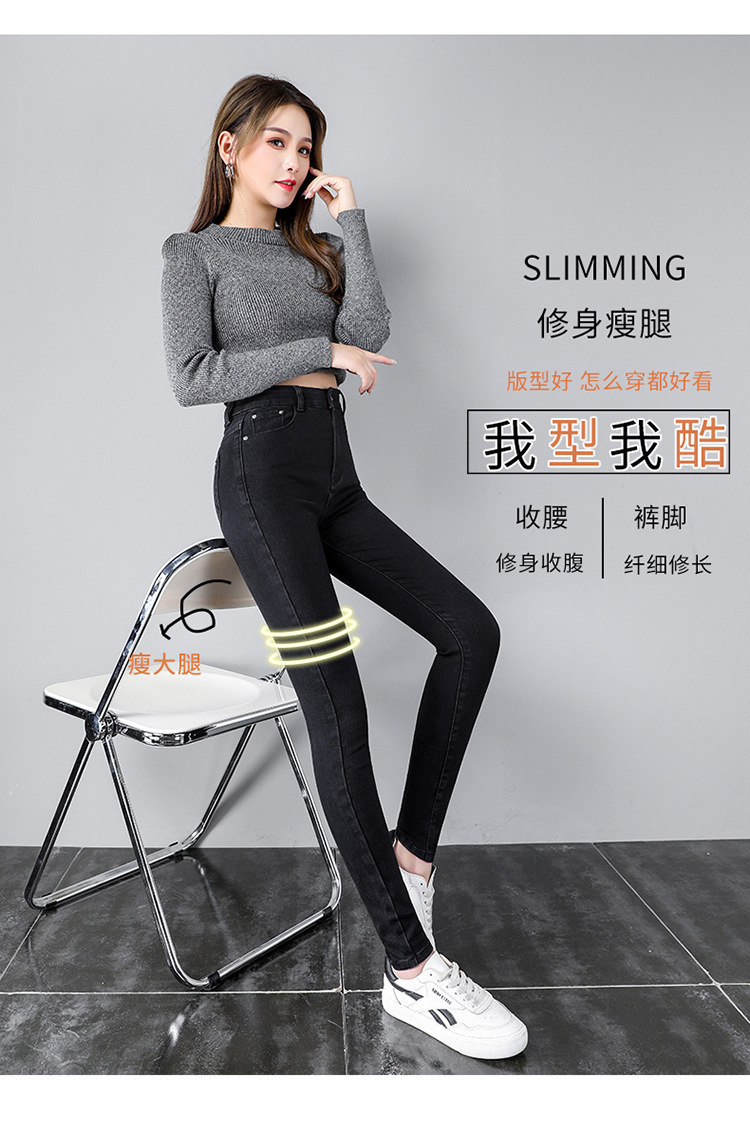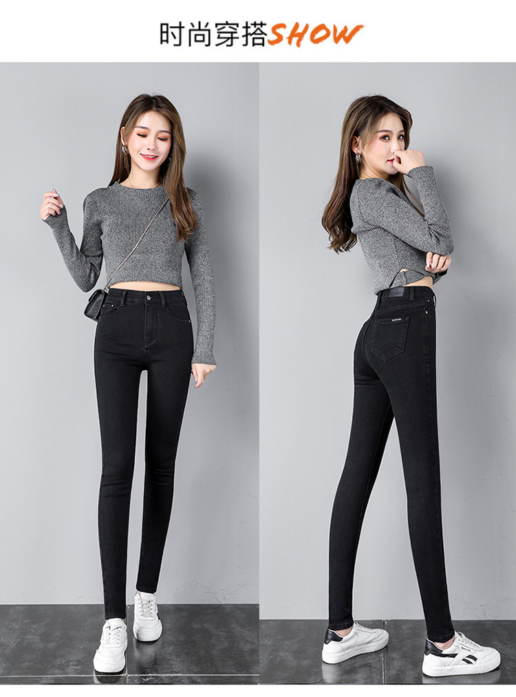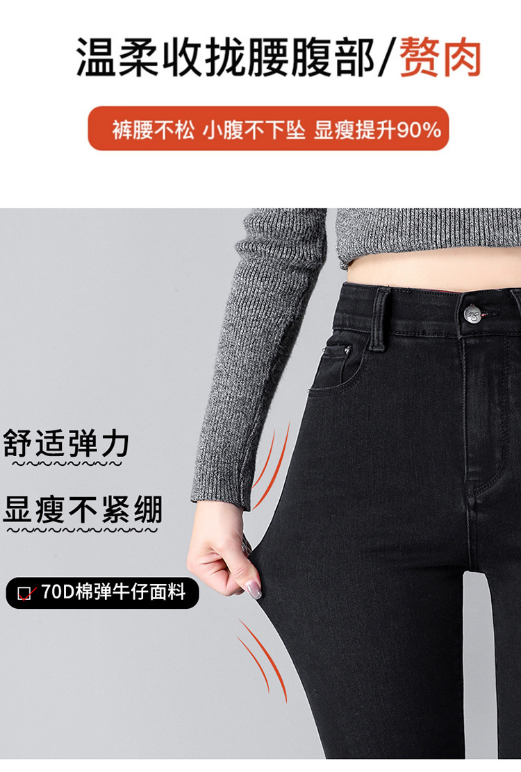 여성용 하이 웨이스트 스트레치 청바지 25 봄 여름 새로운 슬림핏 패셔너블 타이트 블랙 벨벳 두꺼운 바지스토어 가기