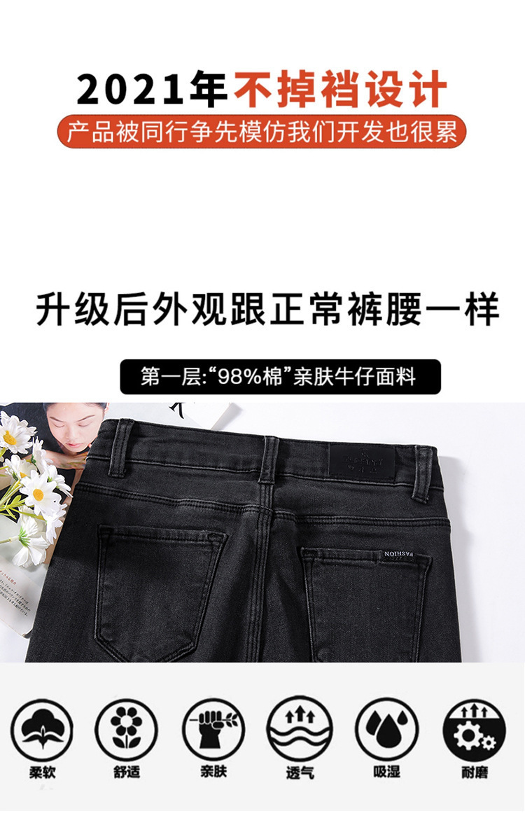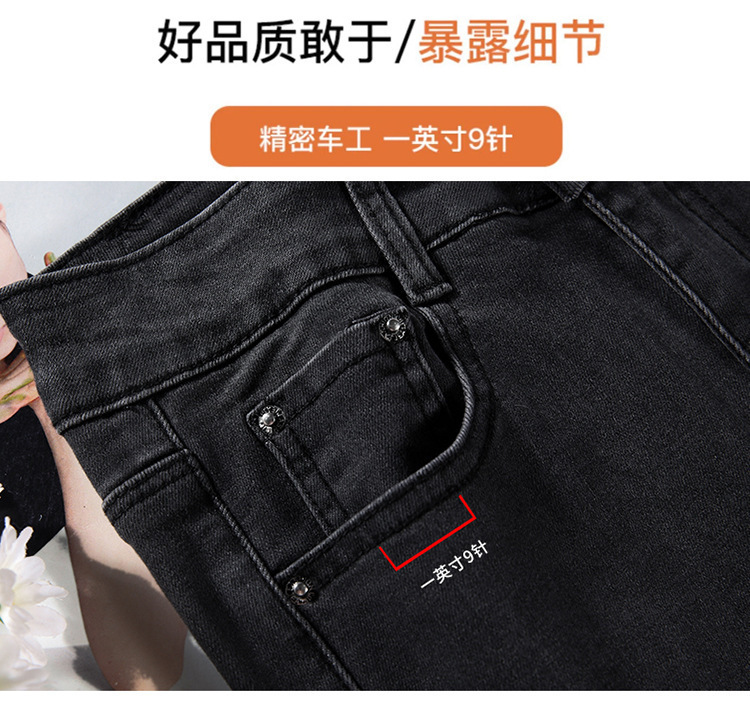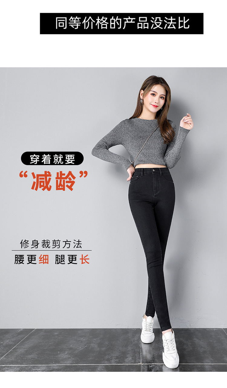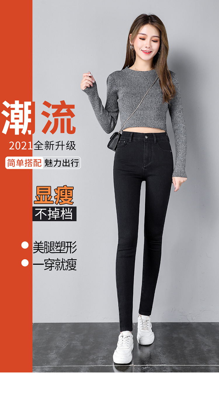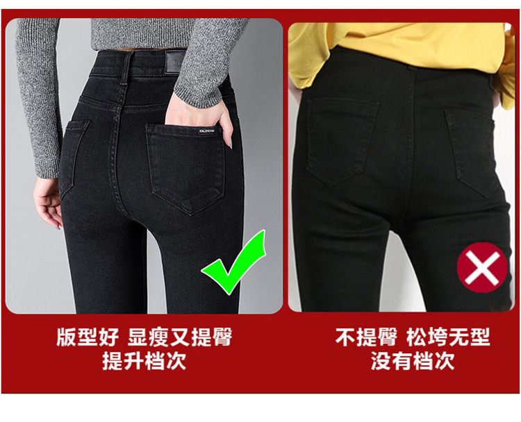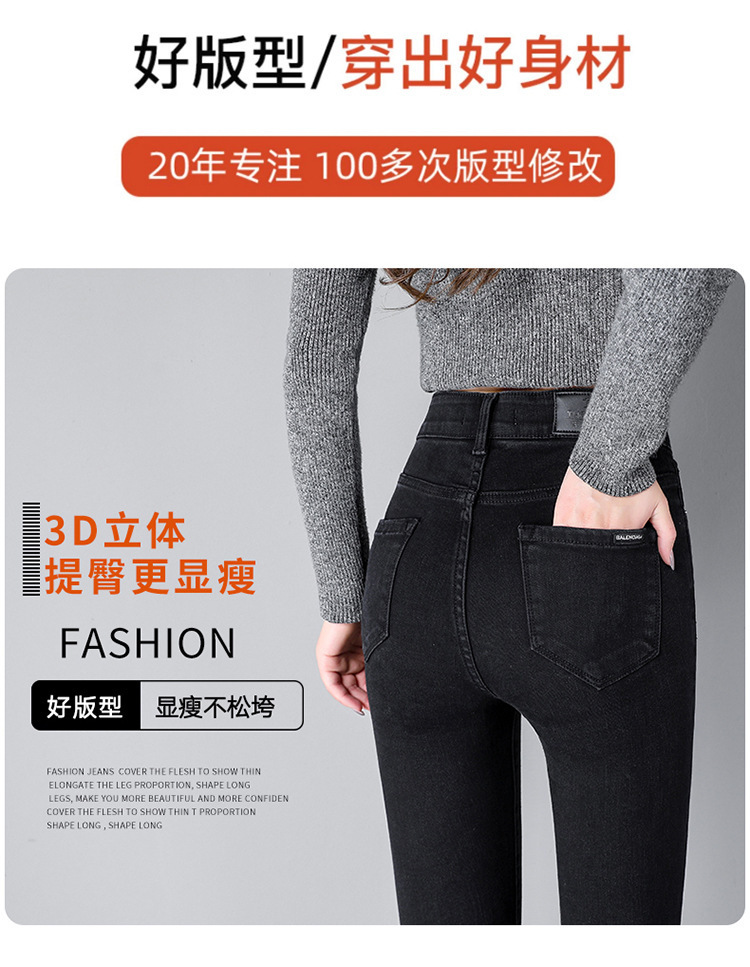 여성용 하이 웨이스트 스트레치 청바지 25 봄 여름 새로운 슬림핏 패셔너블 타이트 블랙 벨벳 두꺼운 바지스토어 가기