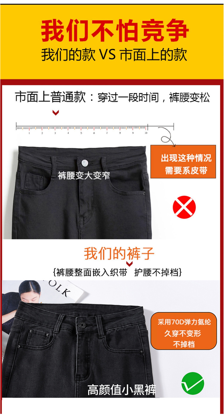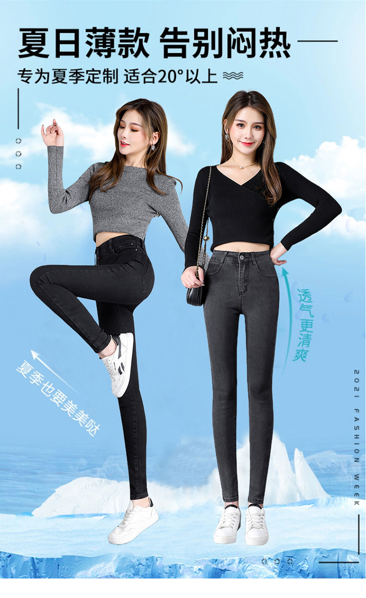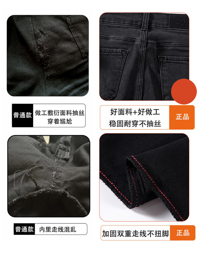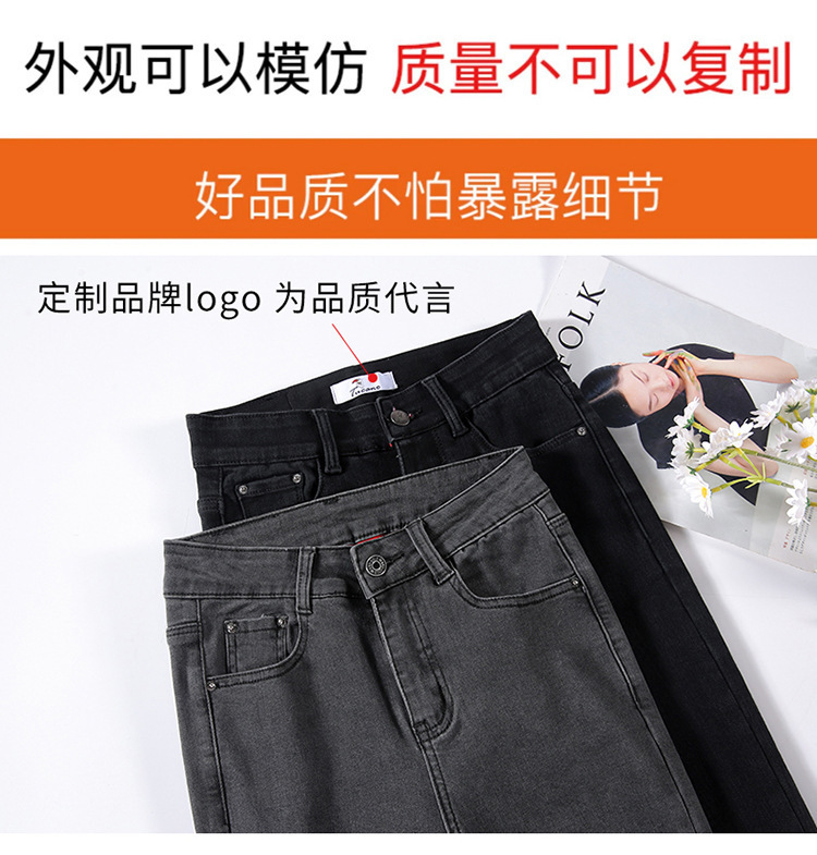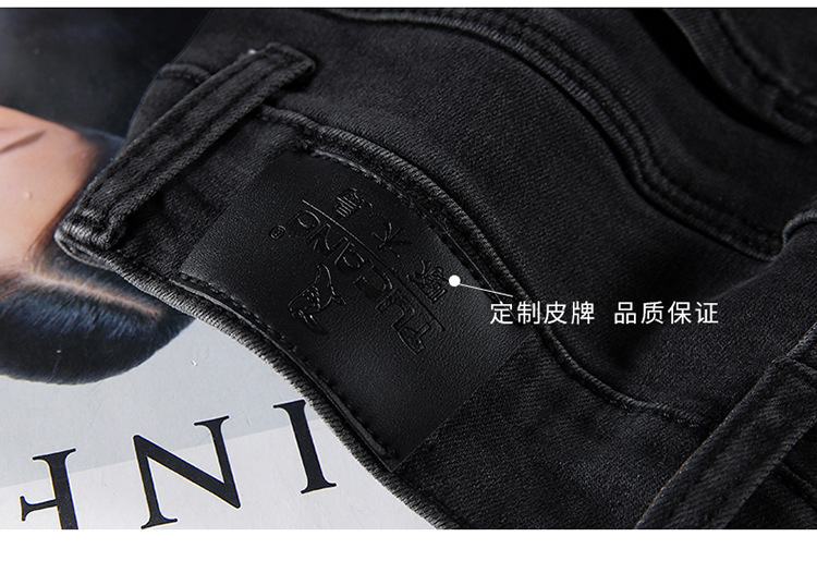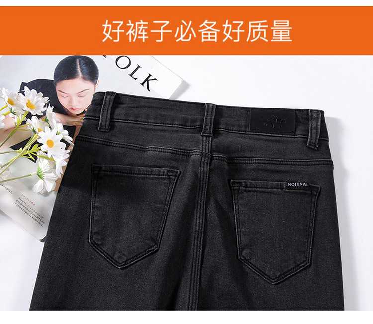 여성용 하이 웨이스트 스트레치 청바지 25 봄 여름 새로운 슬림핏 패셔너블 타이트 블랙 벨벳 두꺼운 바지스토어 가기