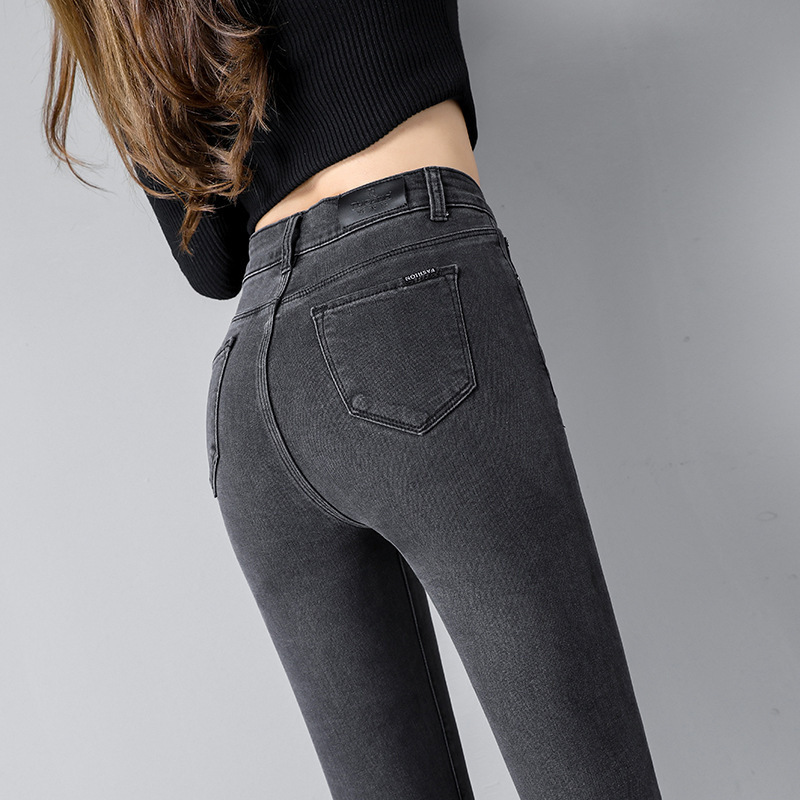 여성용 하이 웨이스트 스트레치 청바지 25 봄 여름 새로운 슬림핏 패셔너블 타이트 블랙 벨벳 두꺼운 바지