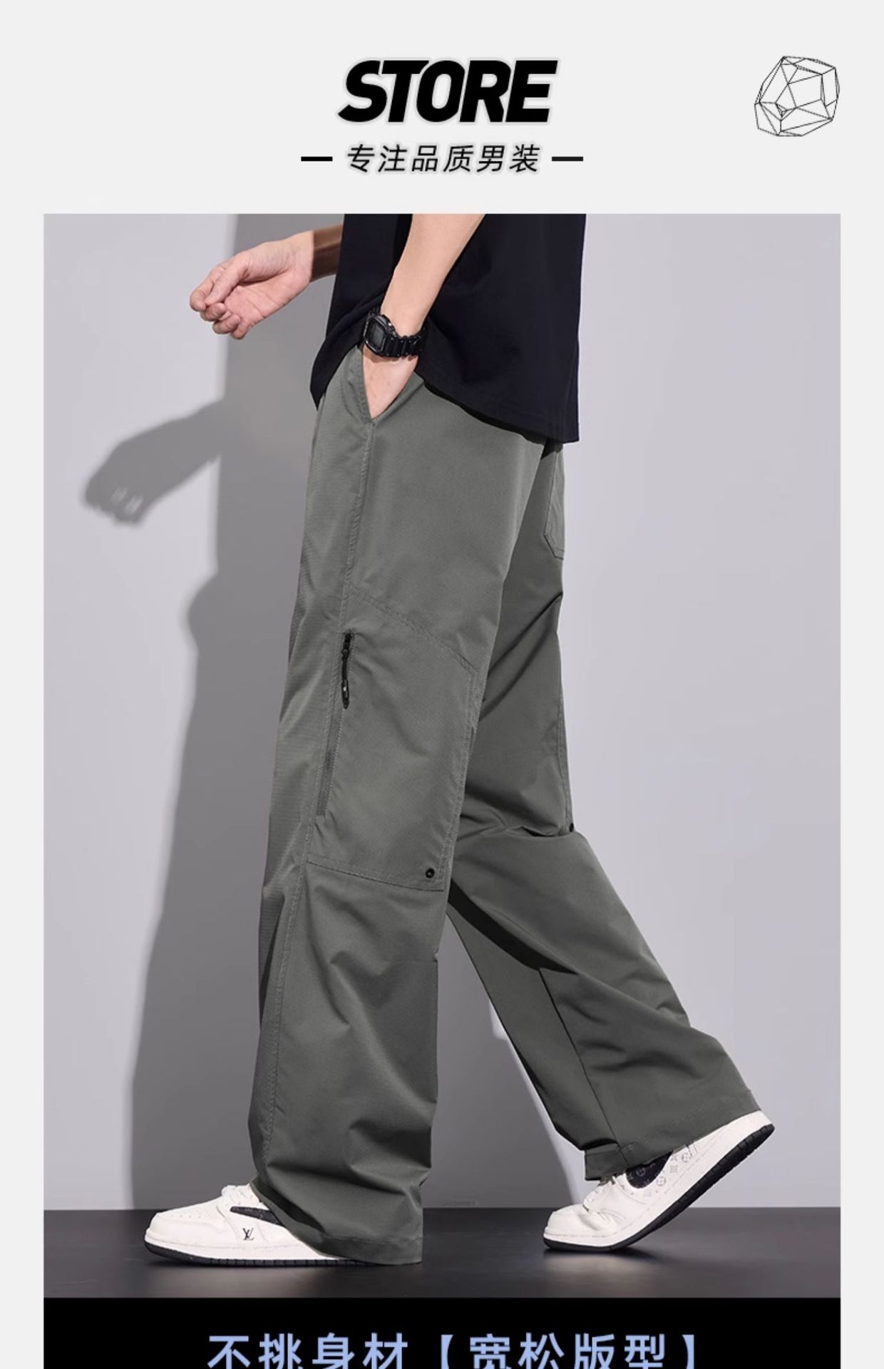 넓은 다리 바위 바지 소년 여름 얇은 느슨한 스트레이트 바지 2025 남성용 새로운 아이스 실크 캐주얼 바지스토어 가기