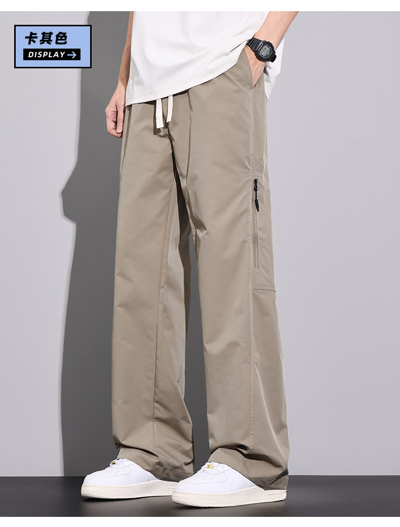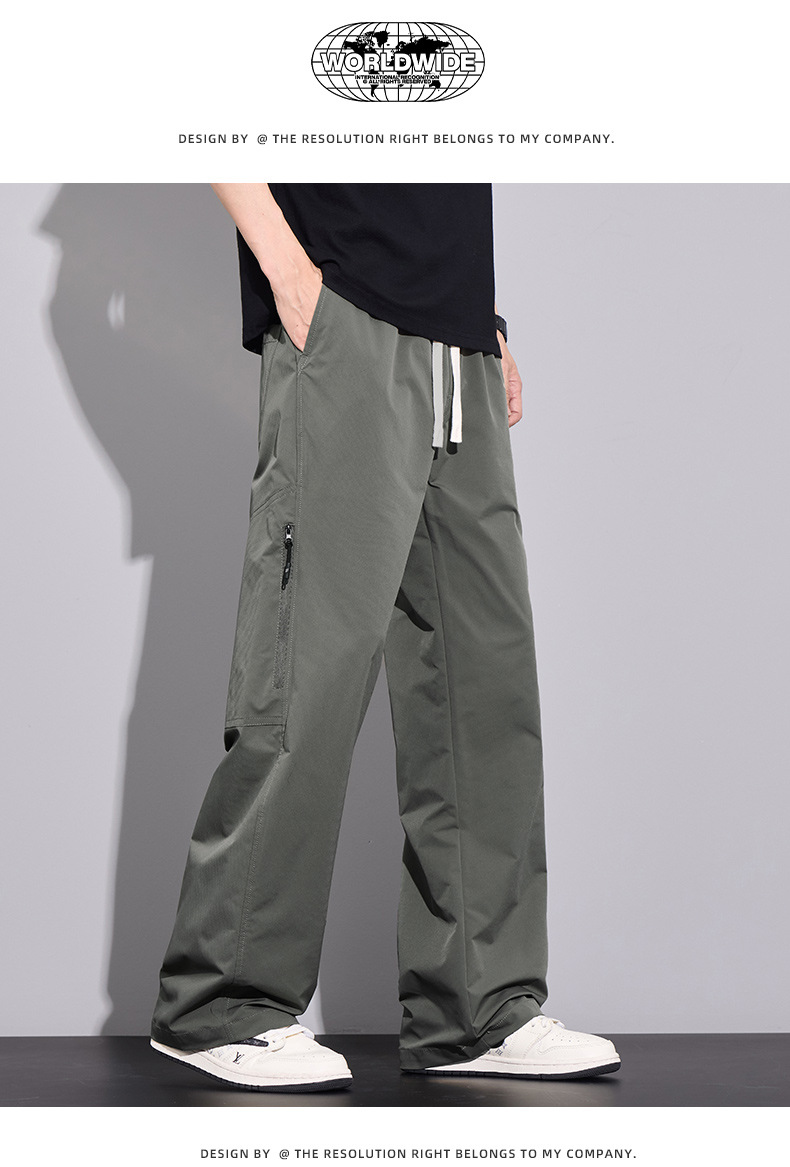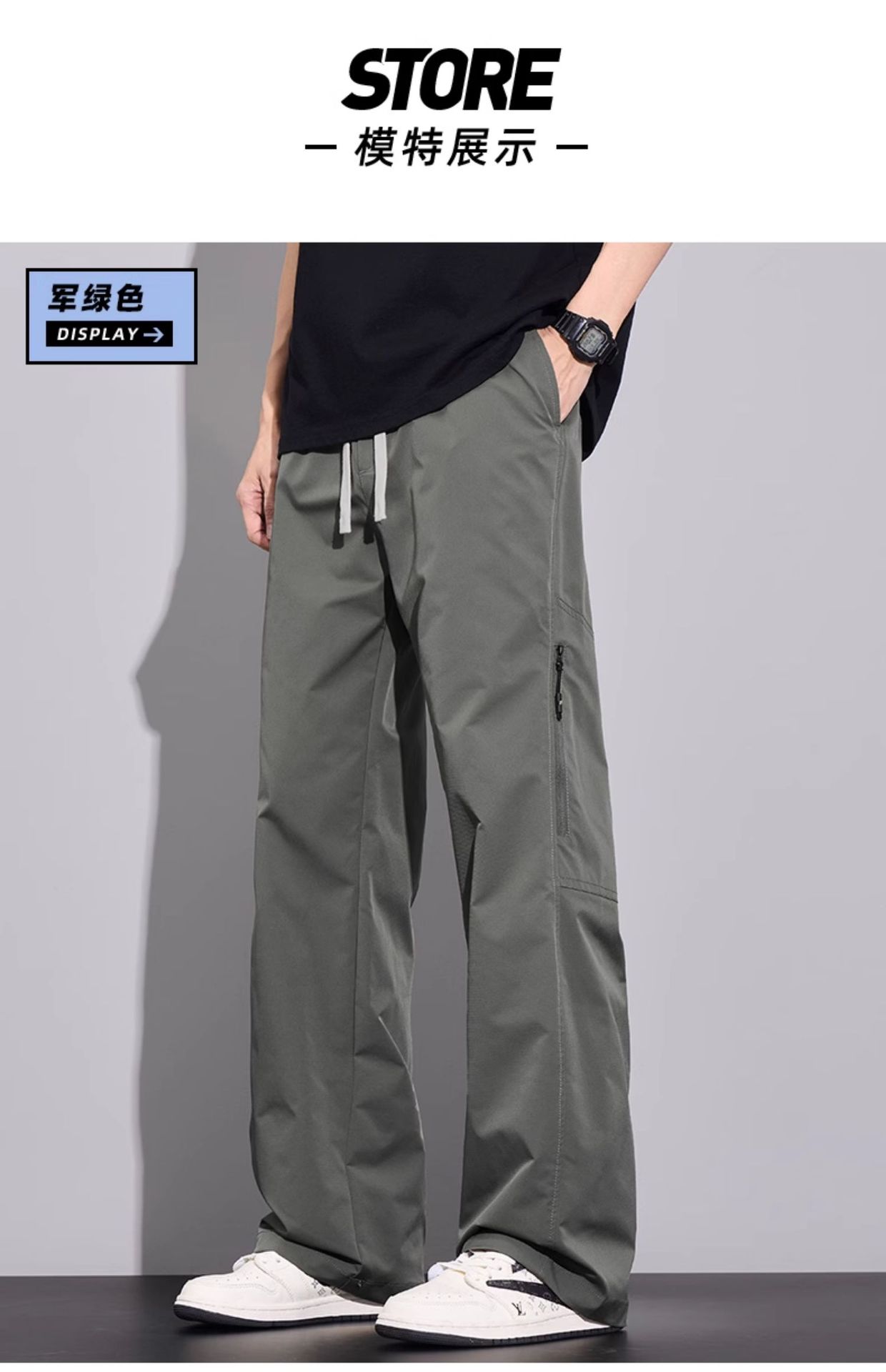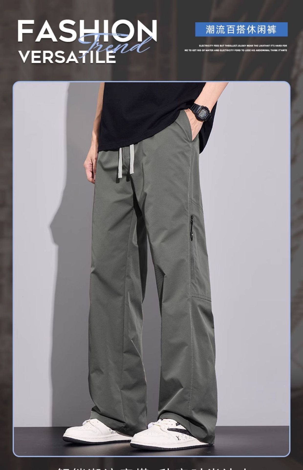 넓은 다리 바위 바지 소년 여름 얇은 느슨한 스트레이트 바지 2025 남성용 새로운 아이스 실크 캐주얼 바지