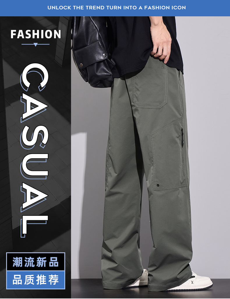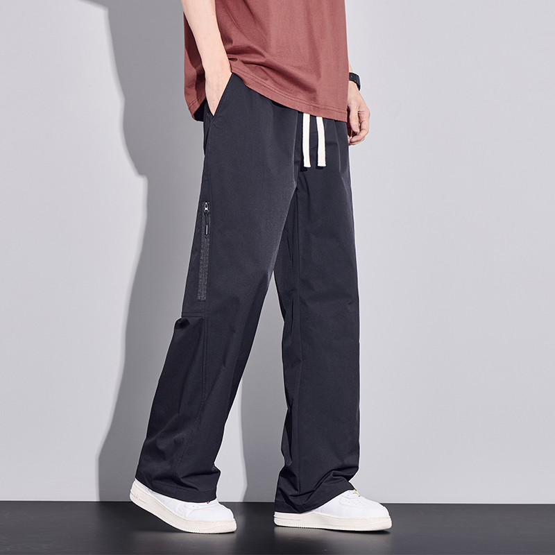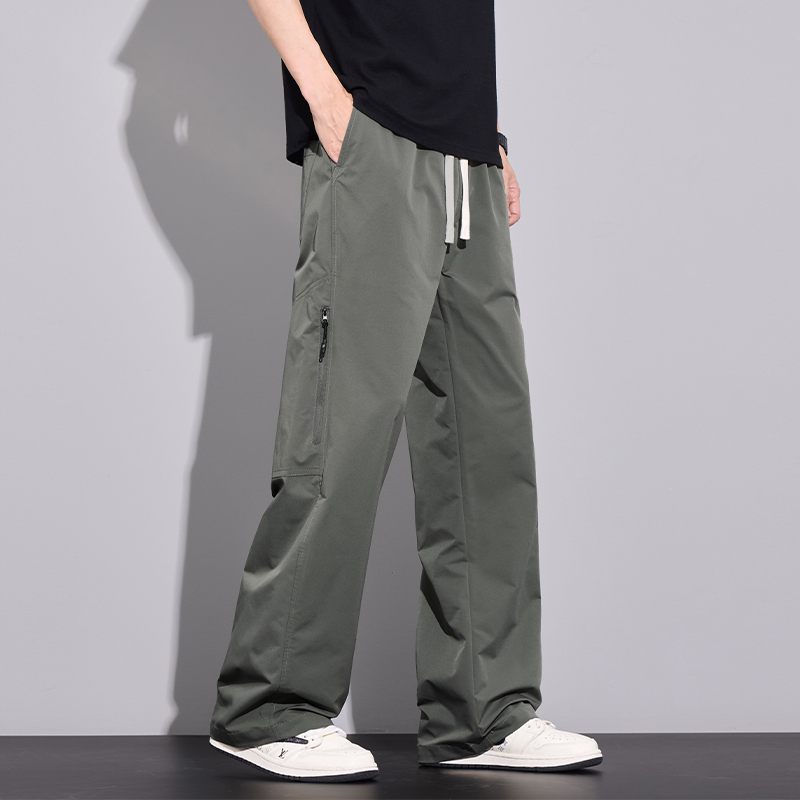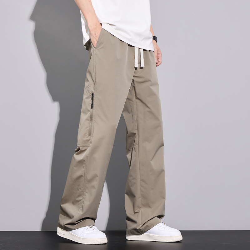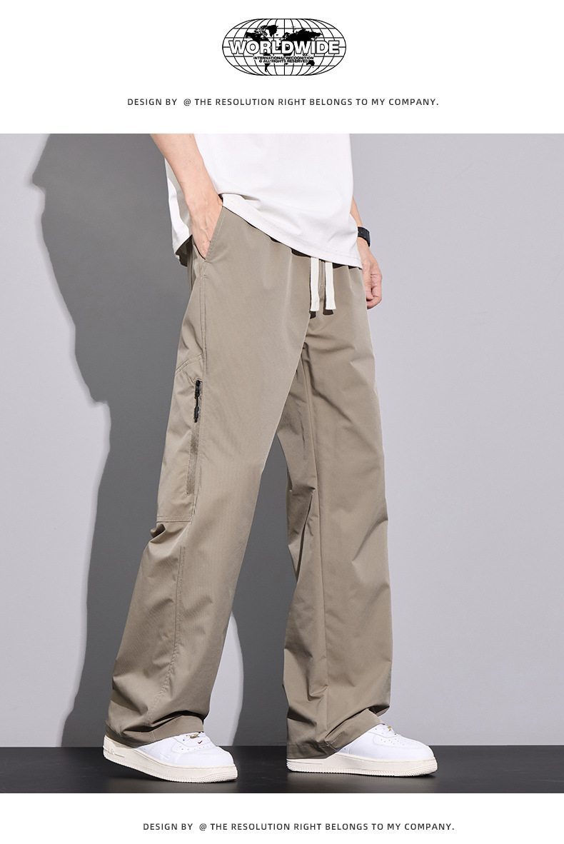 넓은 다리 바위 바지 소년 여름 얇은 느슨한 스트레이트 바지 2025 남성용 새로운 아이스 실크 캐주얼 바지