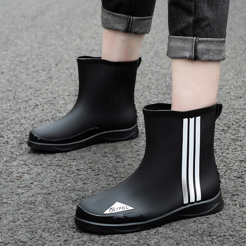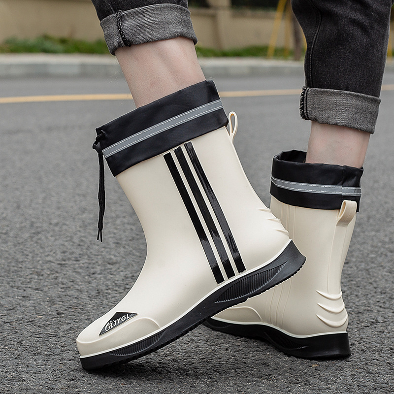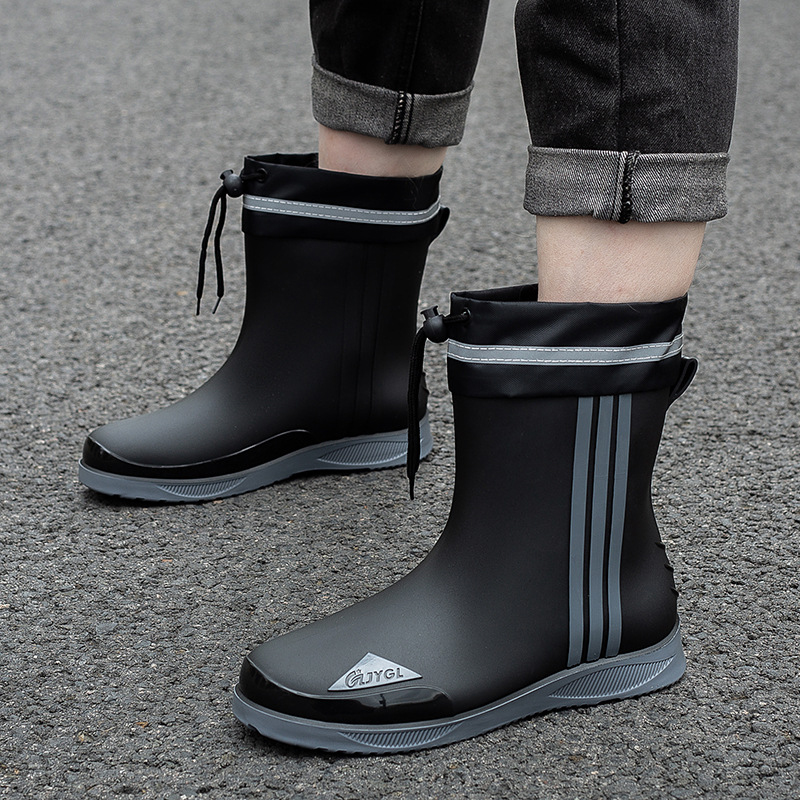 남성용 세련된 종아리 중간 장화, 성인용 미끄럼 방지 및 내마모성 장화, 벨벳 따뜻한 고무 신발, 낚시 방수 작업용 워터 슈즈