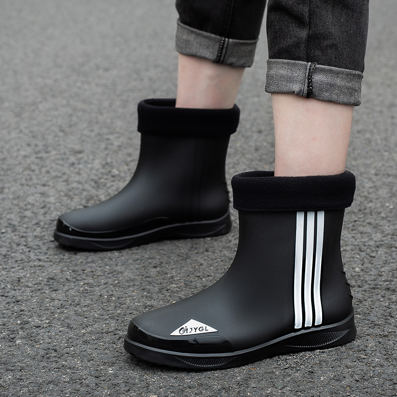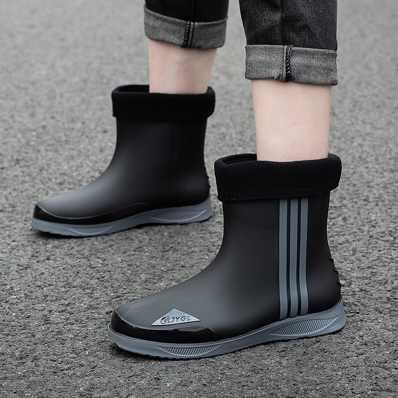 남성용 세련된 종아리 중간 장화, 성인용 미끄럼 방지 및 내마모성 장화, 벨벳 따뜻한 고무 신발, 낚시 방수 작업용 워터 슈즈스토어 가기