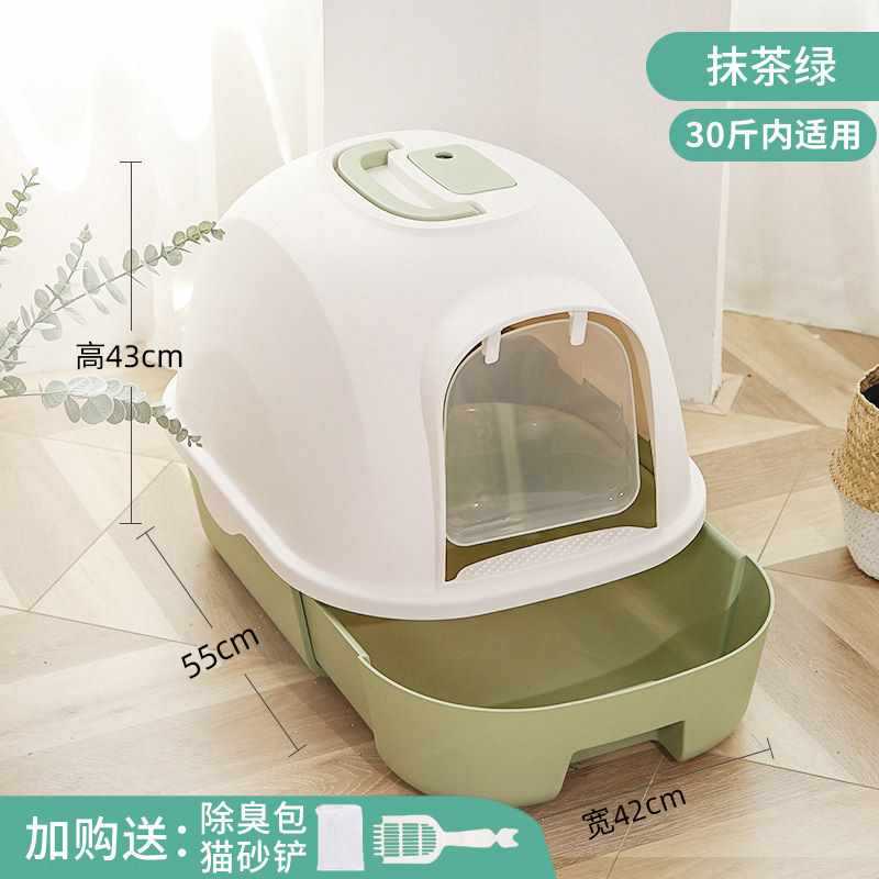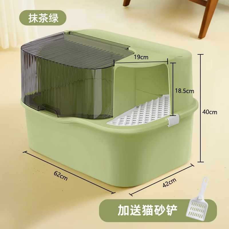 • [전면 들어올릴 수 있는 복도형] 아이리스 그린 (탈취봉투 + 대형 고양이 배변 국자 포함)