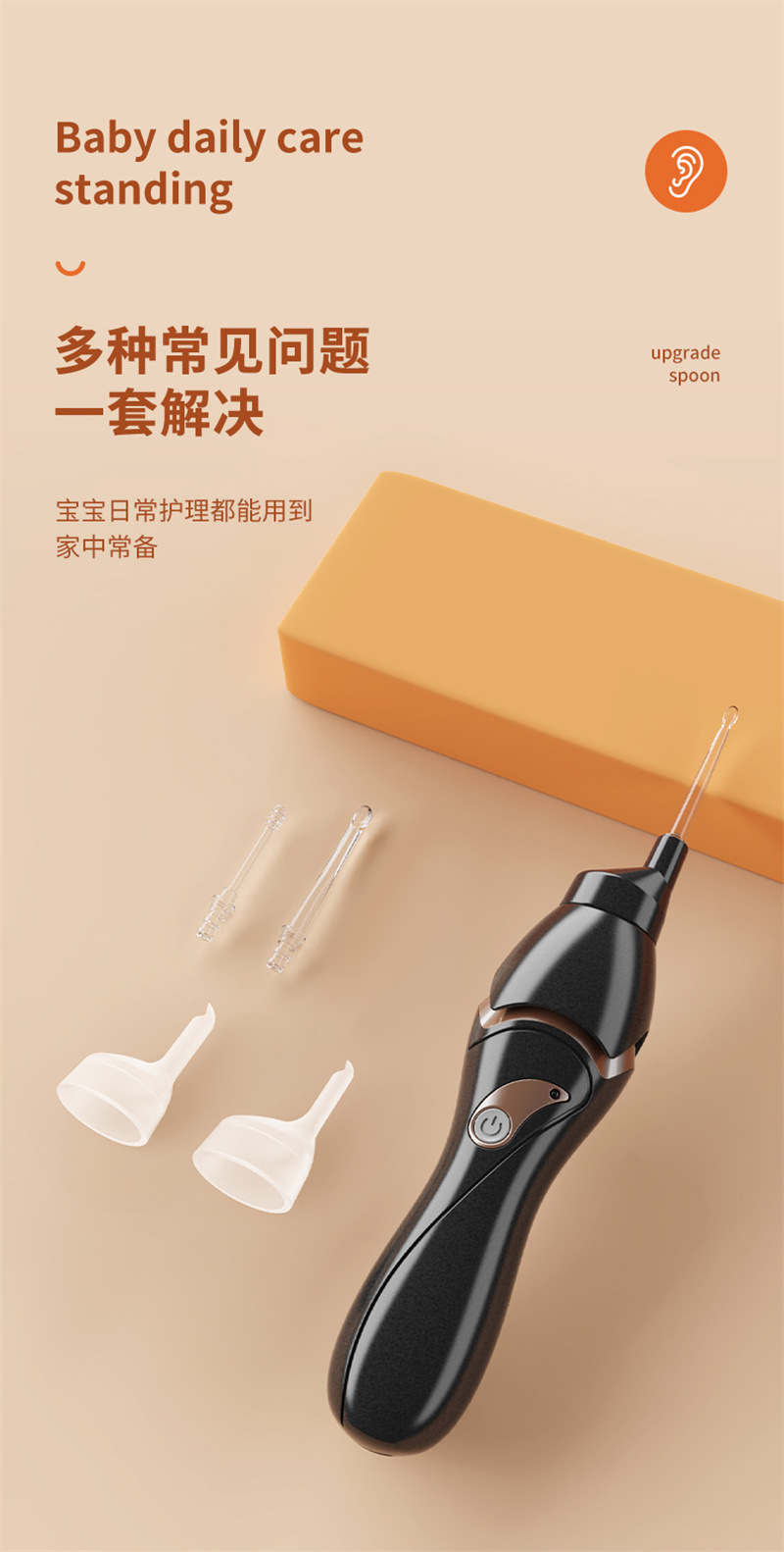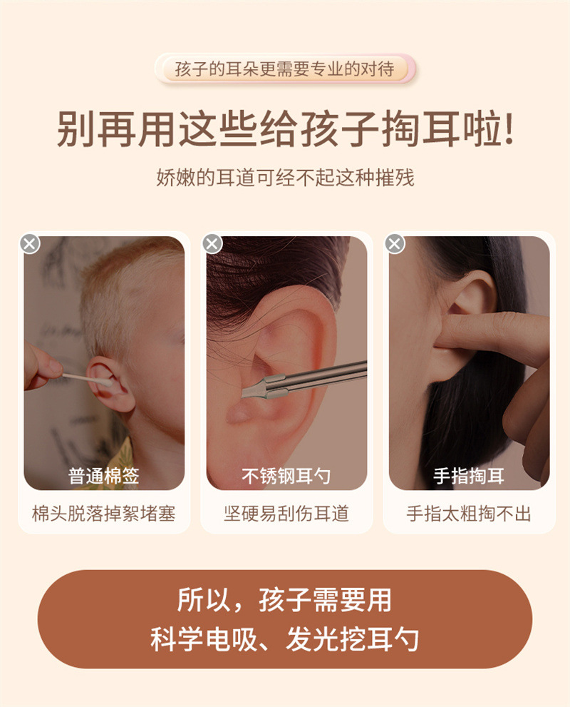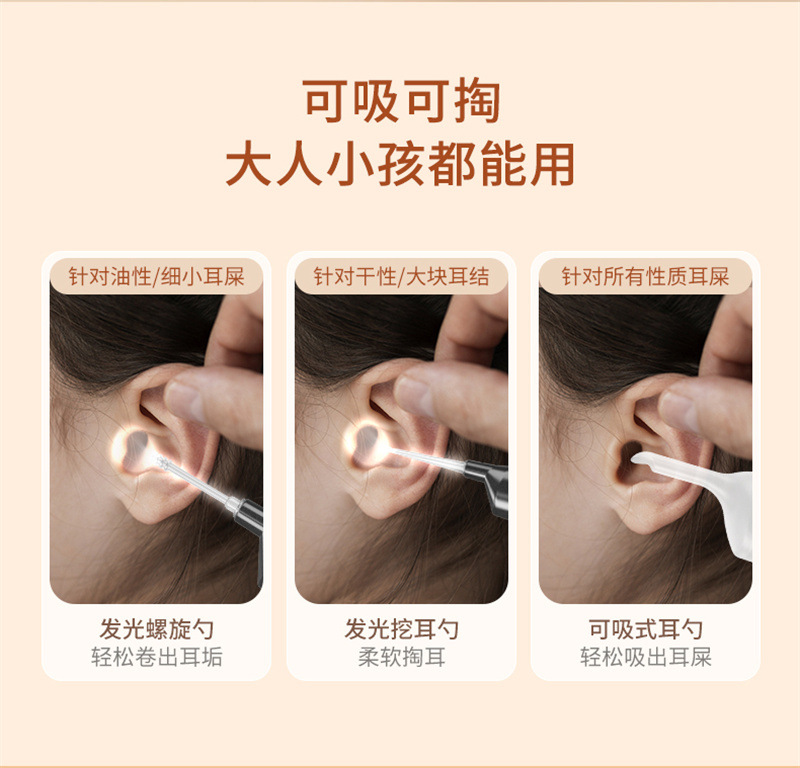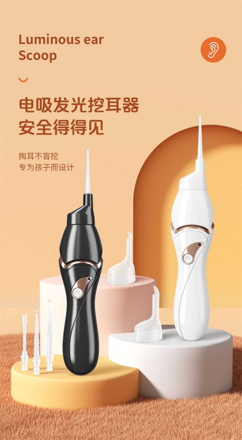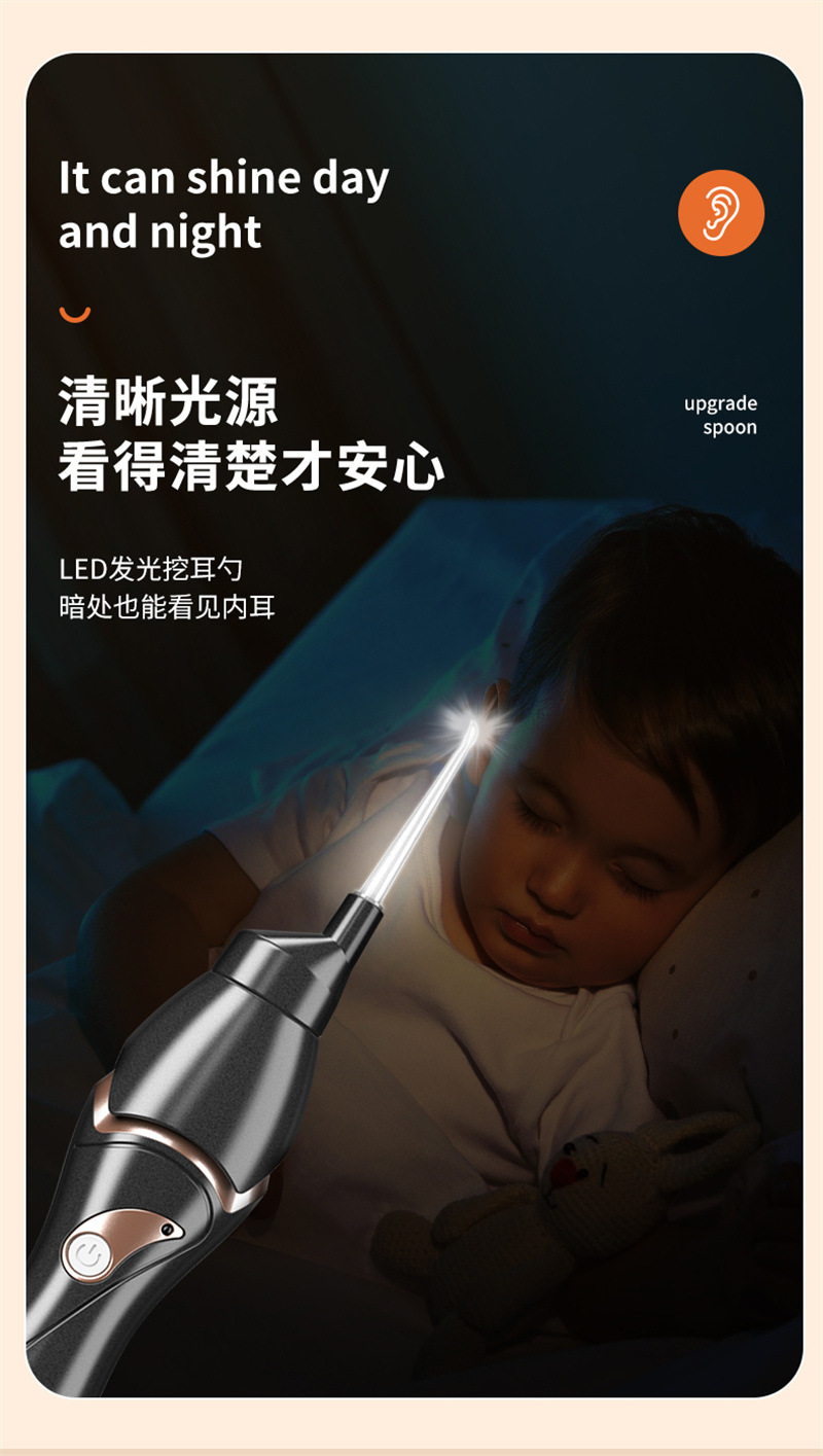 어린이와 성인을 위한 시각적 전기 발광 귀이개, 귀지 흡입 및 귀이개, 조명이 있는 휴대용 가정용 귀이개, 소프트 헤드 귀이개