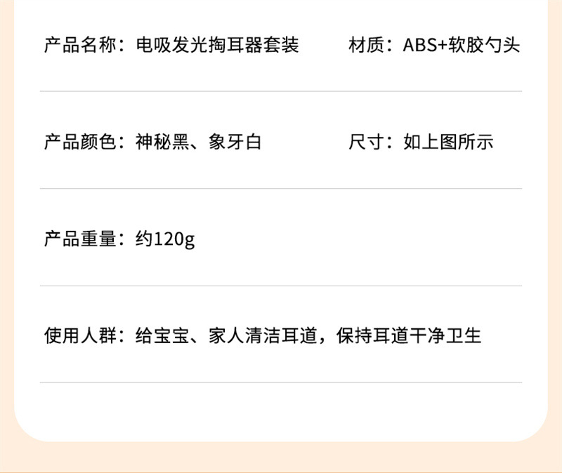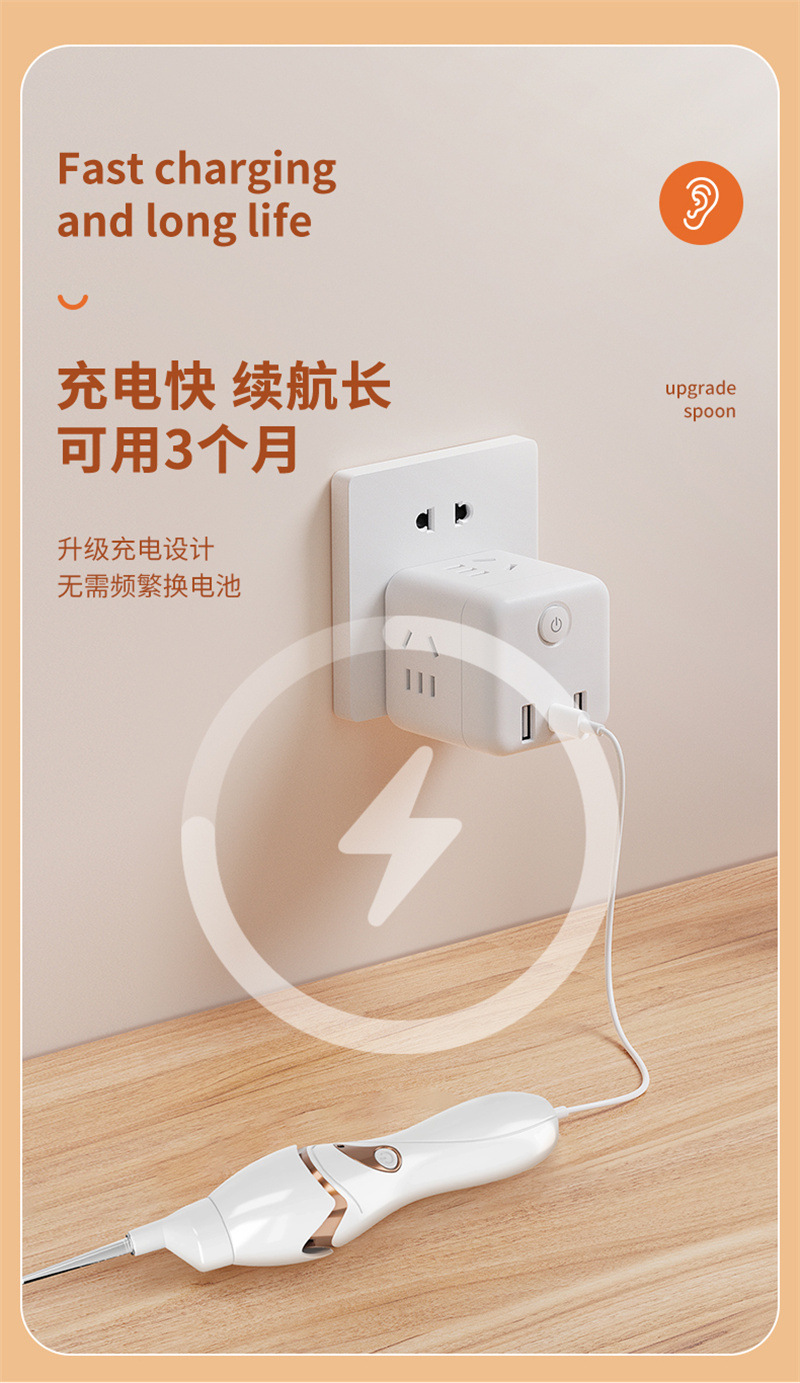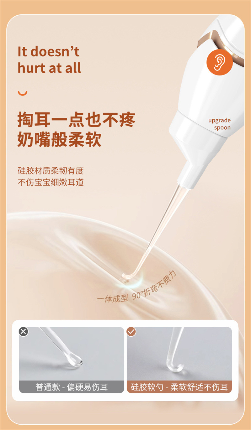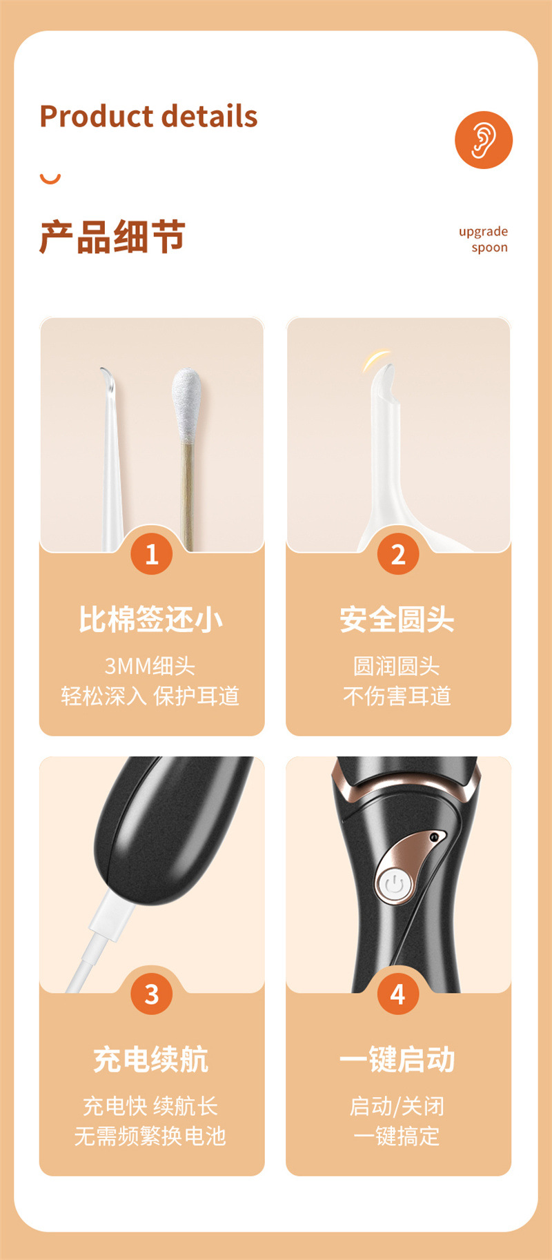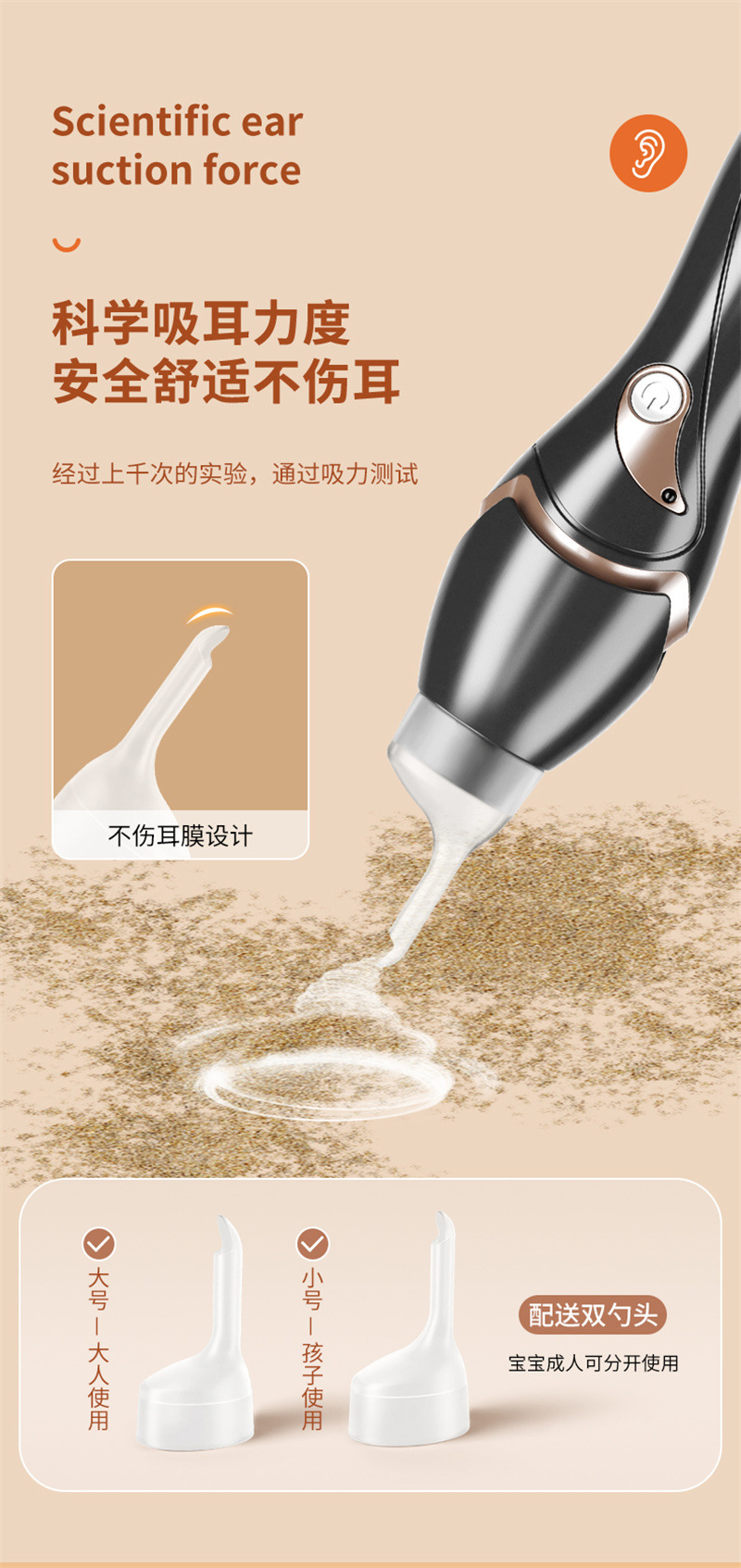 어린이와 성인을 위한 시각적 전기 발광 귀이개, 귀지 흡입 및 귀이개, 조명이 있는 휴대용 가정용 귀이개, 소프트 헤드 귀이개