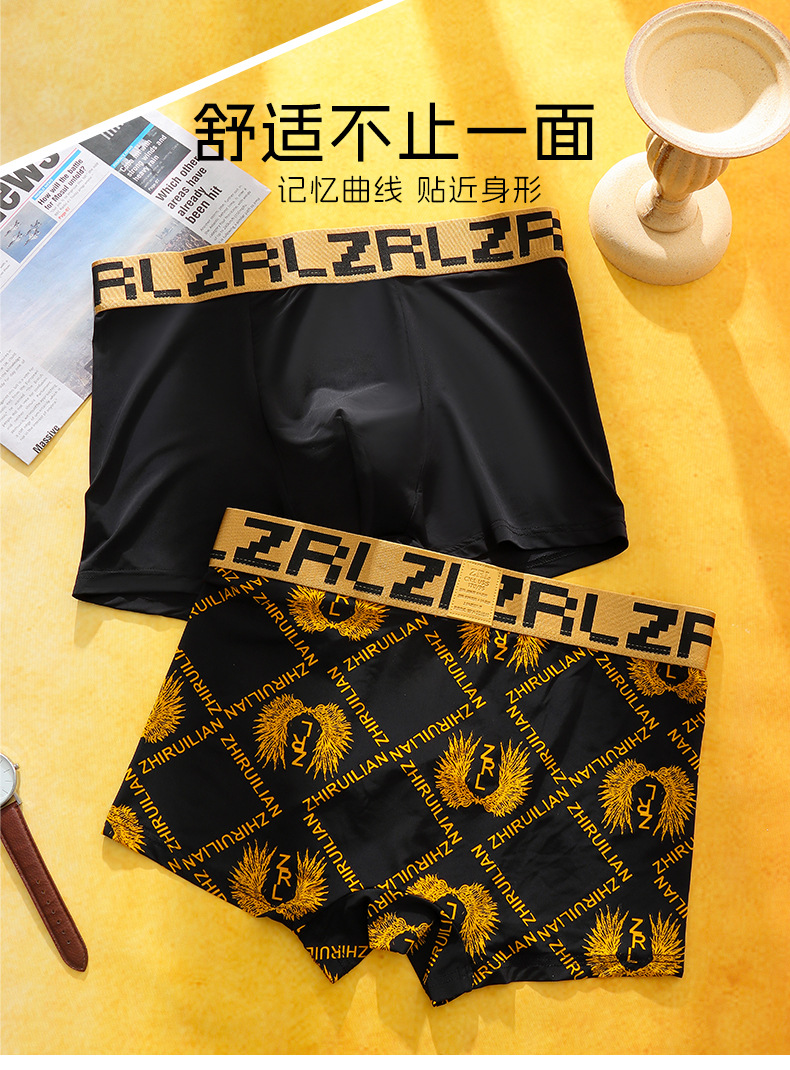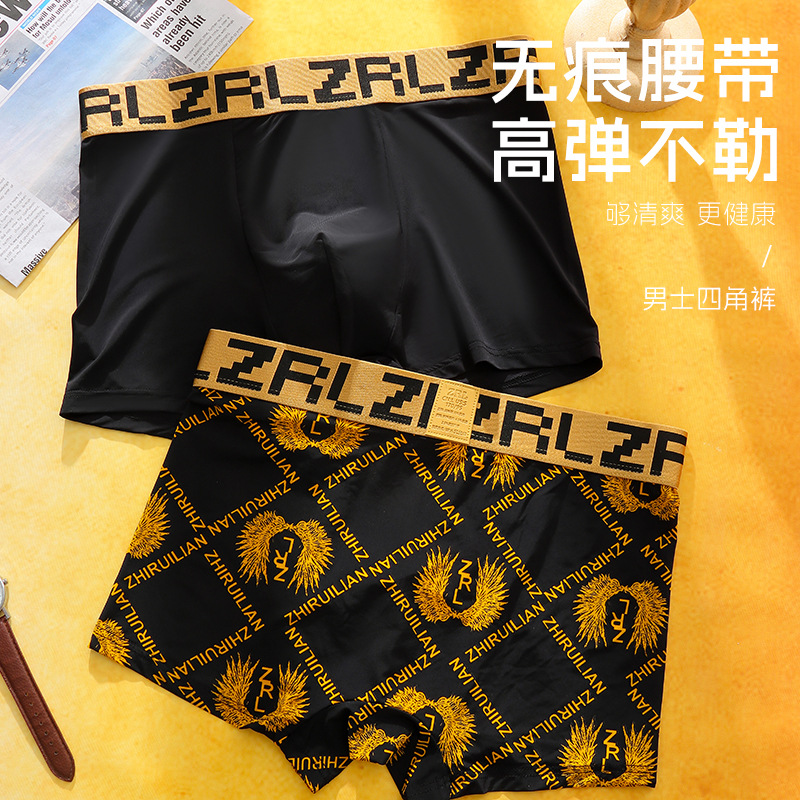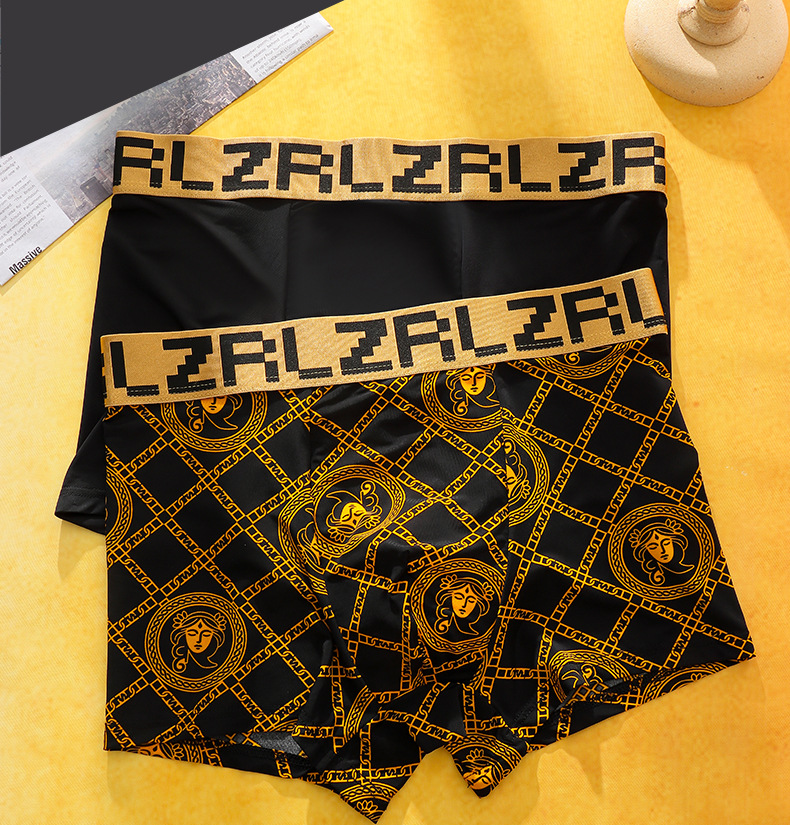 여름 남성용 블랙 골드 럭셔리 스타일 하이 엔드 시원하고 편안하며 통기성이 뛰어난 와이드 벨트 남성용 복서 팬티
