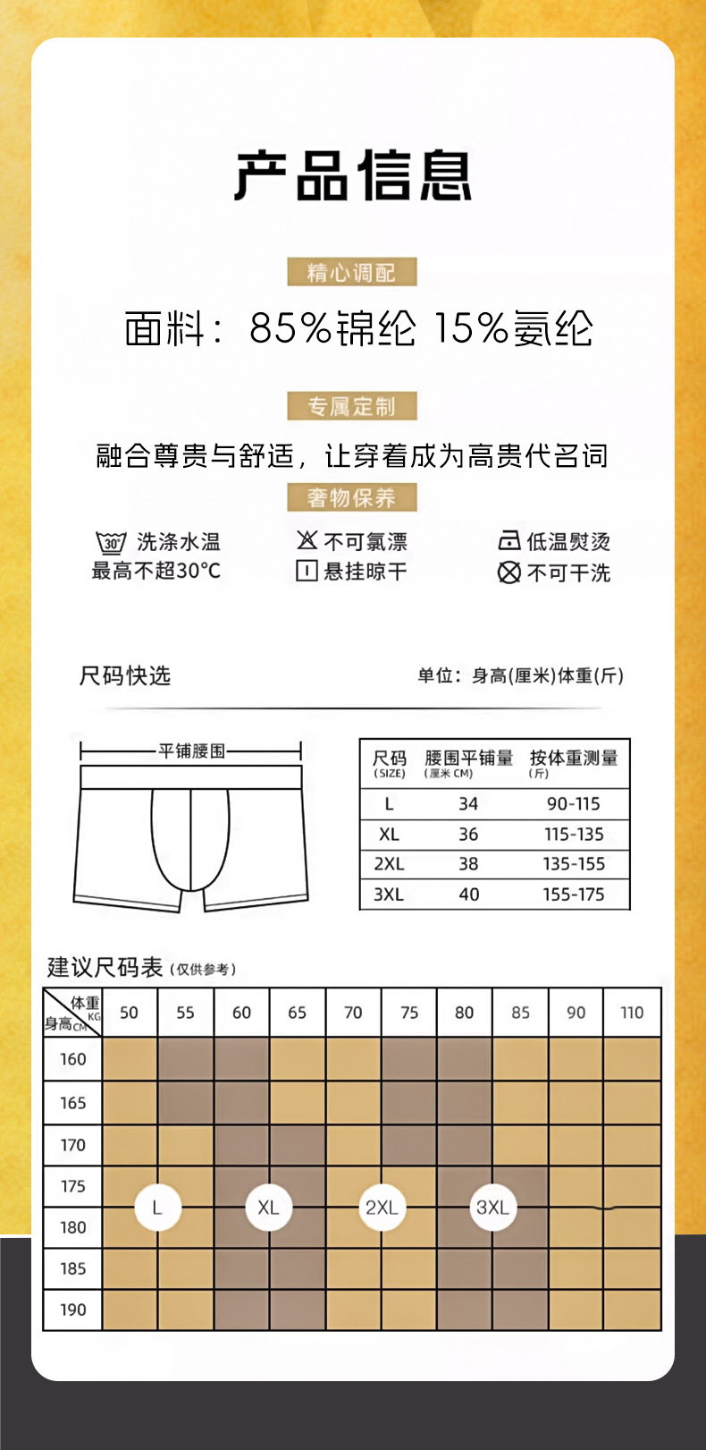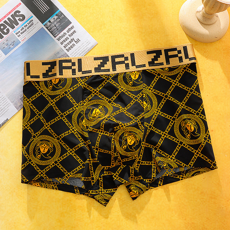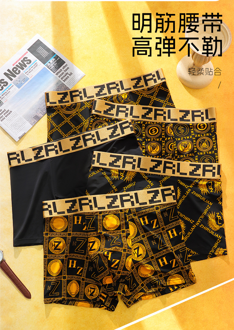 여름 남성용 블랙 골드 럭셔리 스타일 하이 엔드 시원하고 편안하며 통기성이 뛰어난 와이드 벨트 남성용 복서 팬티스토어 가기