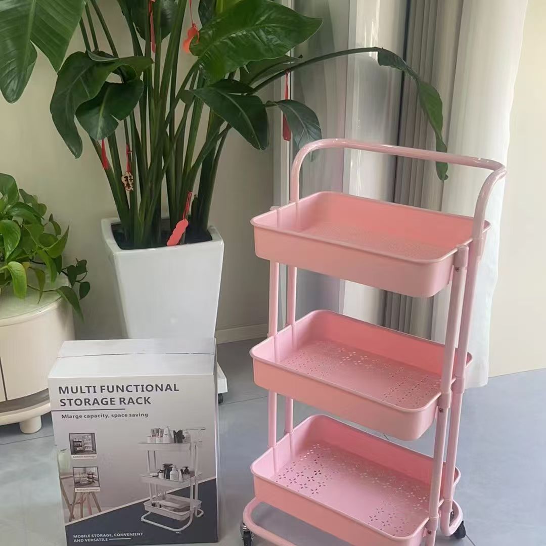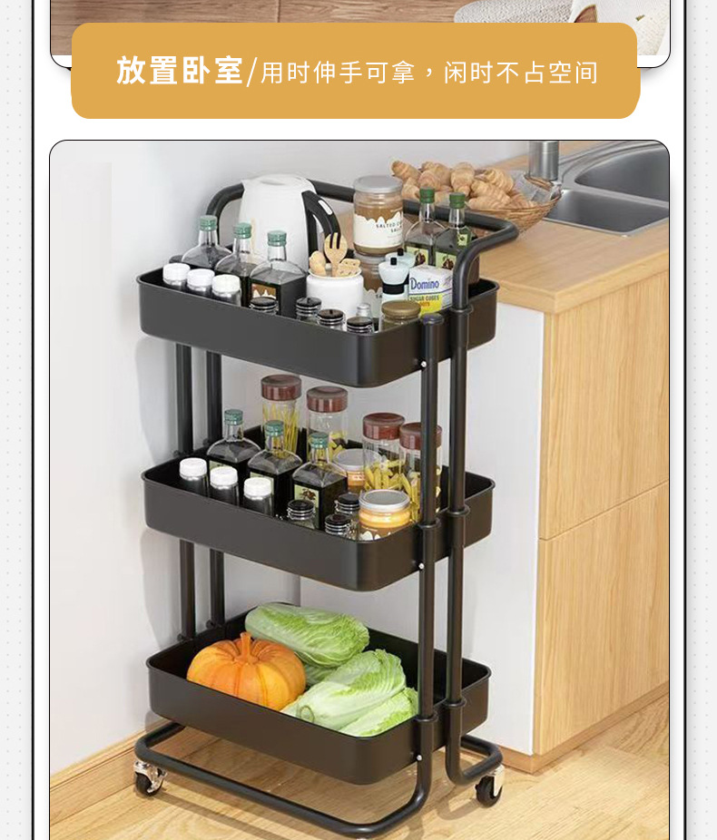 16管碳钢置物架厂家批发多层厨房收纳零食架卫生间可移动储物架