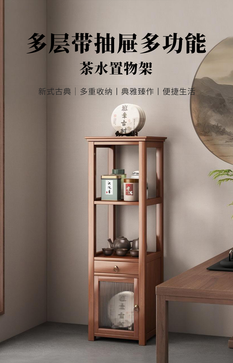 차 선반 보관 랙 다층 보관 차 세트 디스플레이 캐비닛 새로운 중국 스타일의 차 룸 작은 장식품 보관 랙 방진스토어 가기