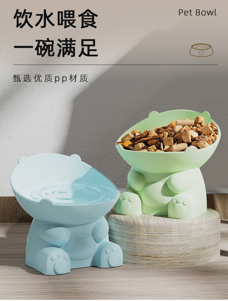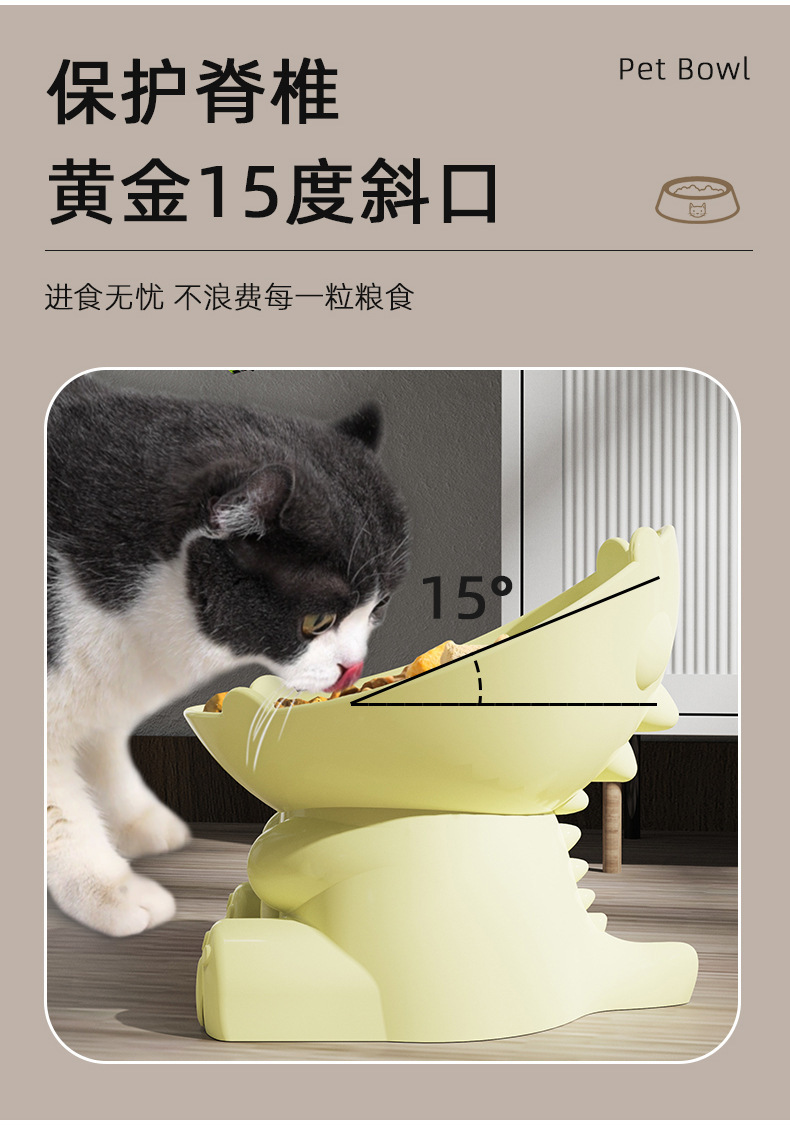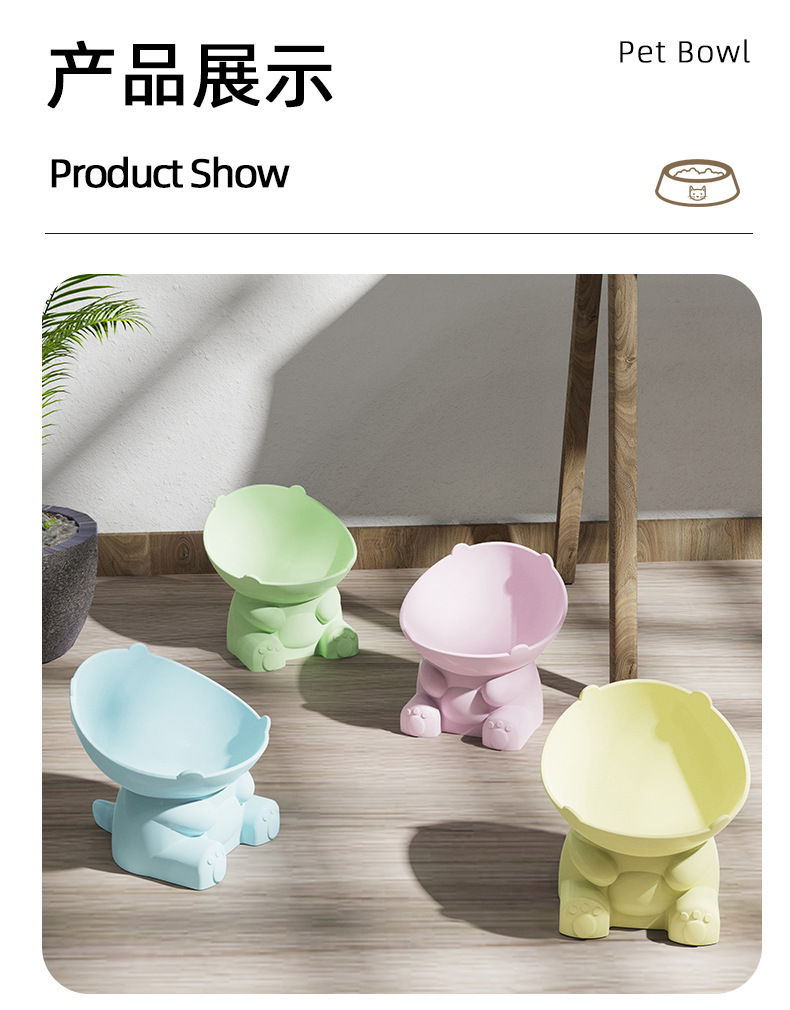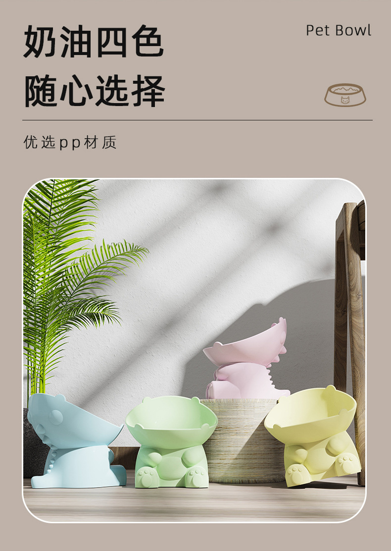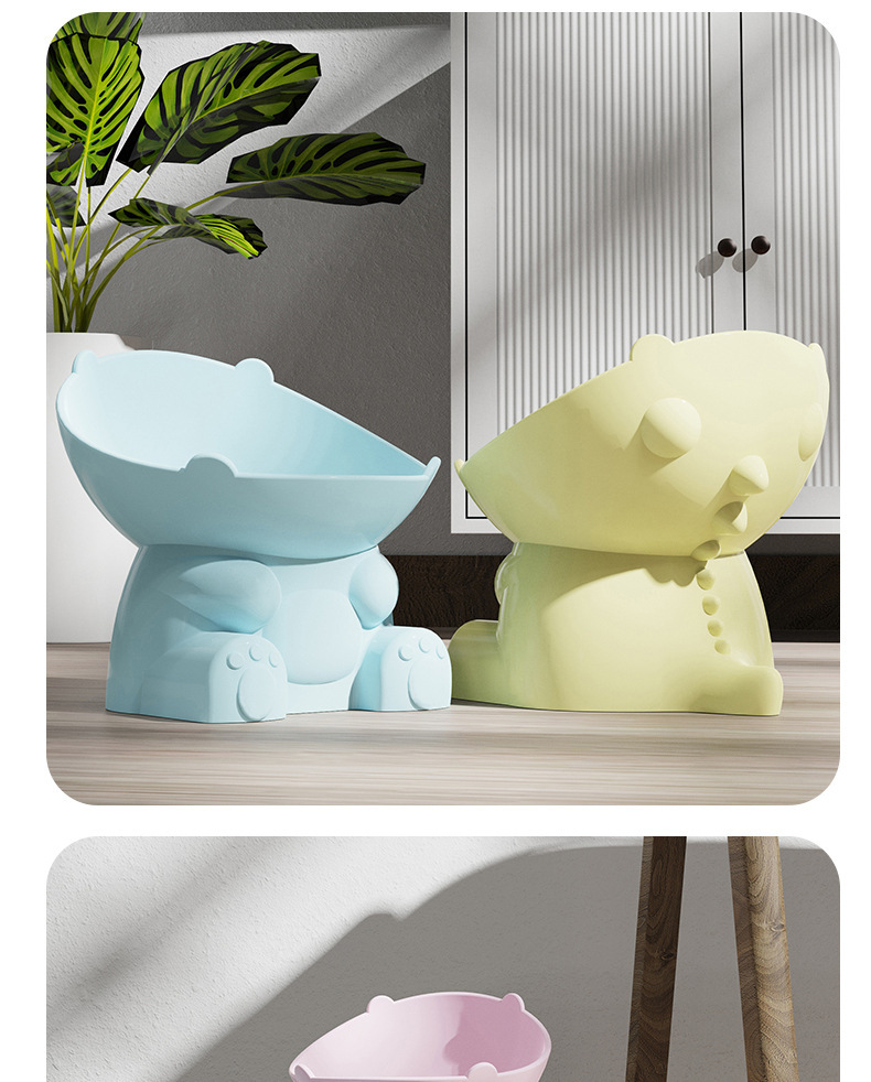 애완 동물 용품 고양이 그릇 안티 노크 공룡 고양이 먹이 그릇 청소하기 쉬운 목 그릇 높은 다리 애완 동물 그릇 고양이 분지 개 분지