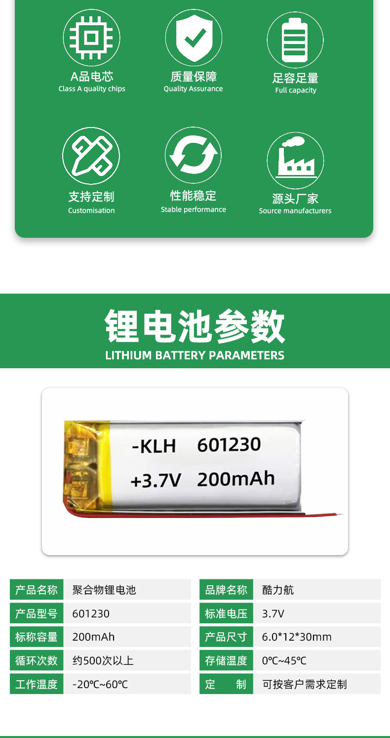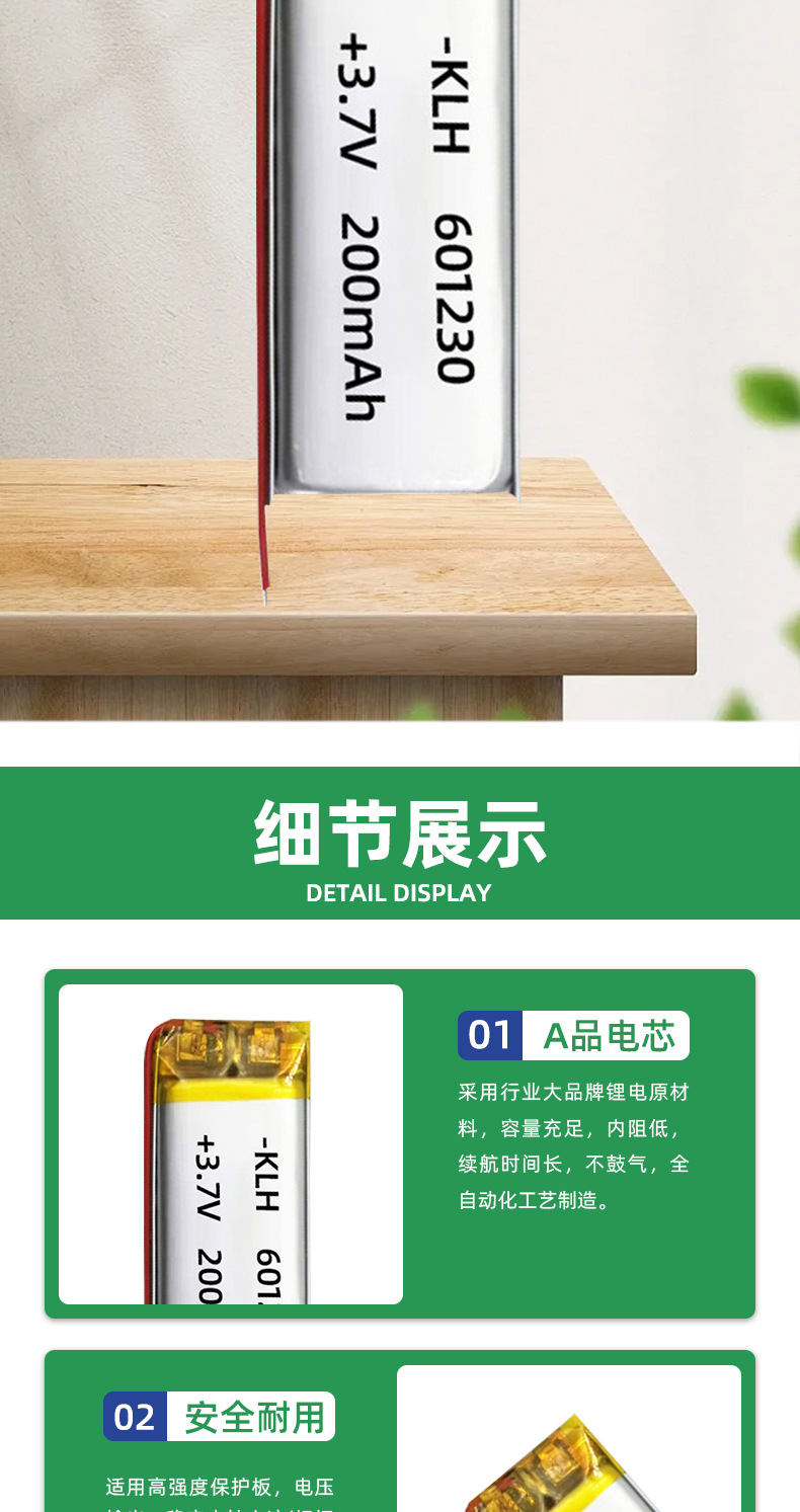 601230 폴리머 리튬 배터리 200mAh3.7V 스위핑 로봇 지능형 사운드 지능형 녹음 펜 배터리