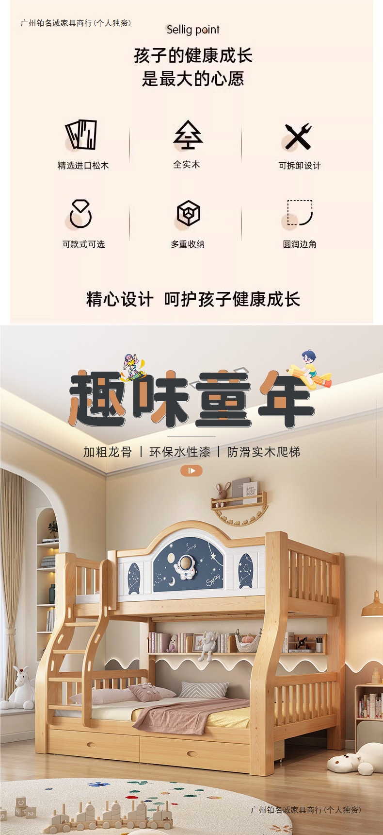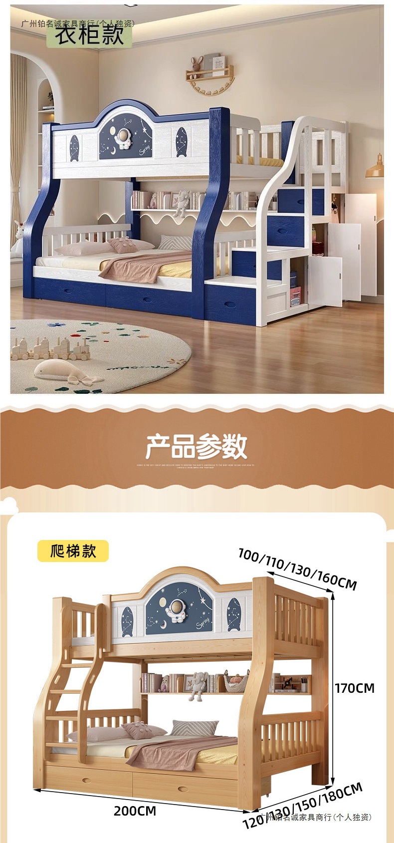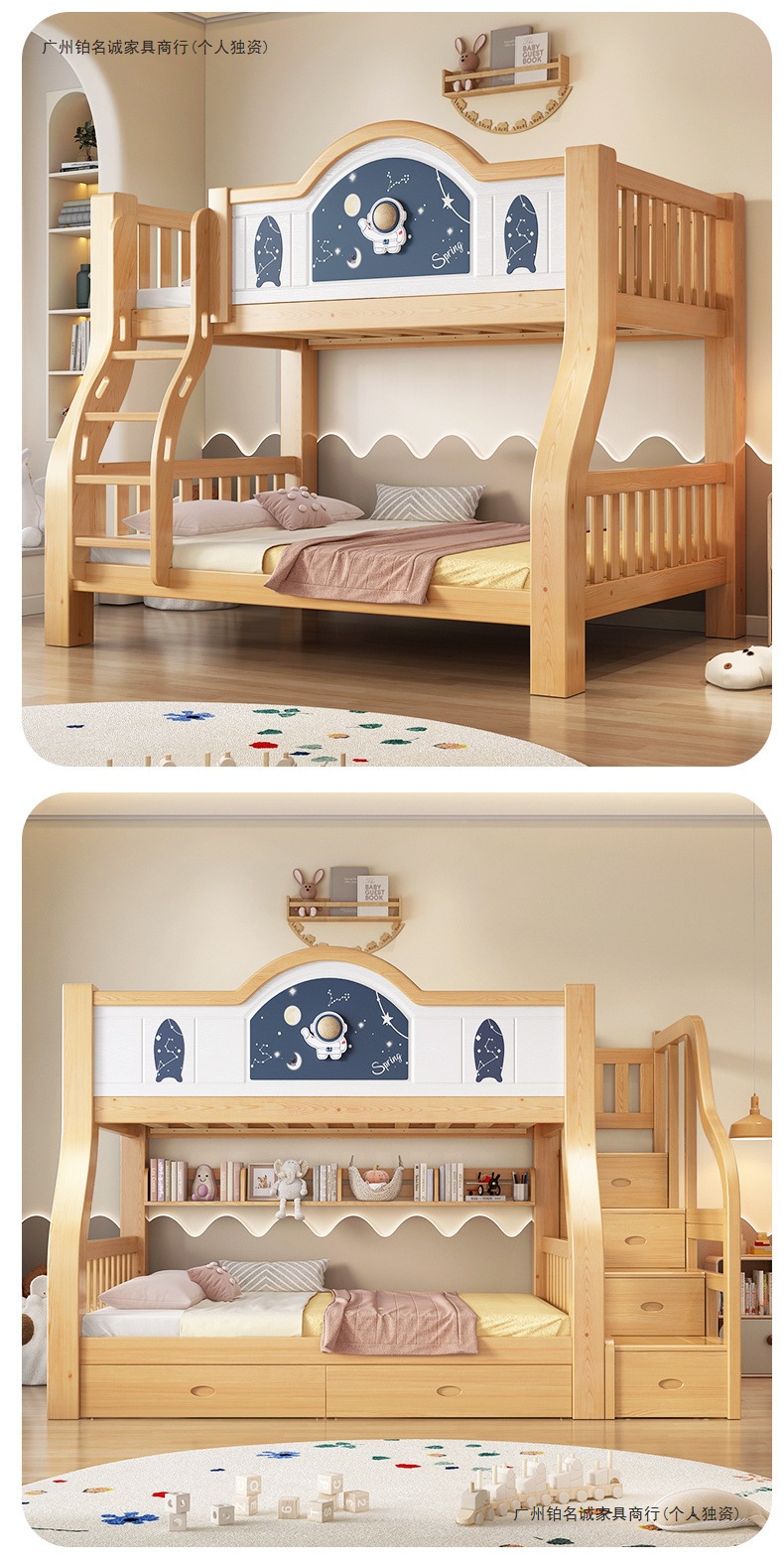 원목 어린이 이층침대, 2층 이층침대, 소형 가정용 두꺼운 이층침대