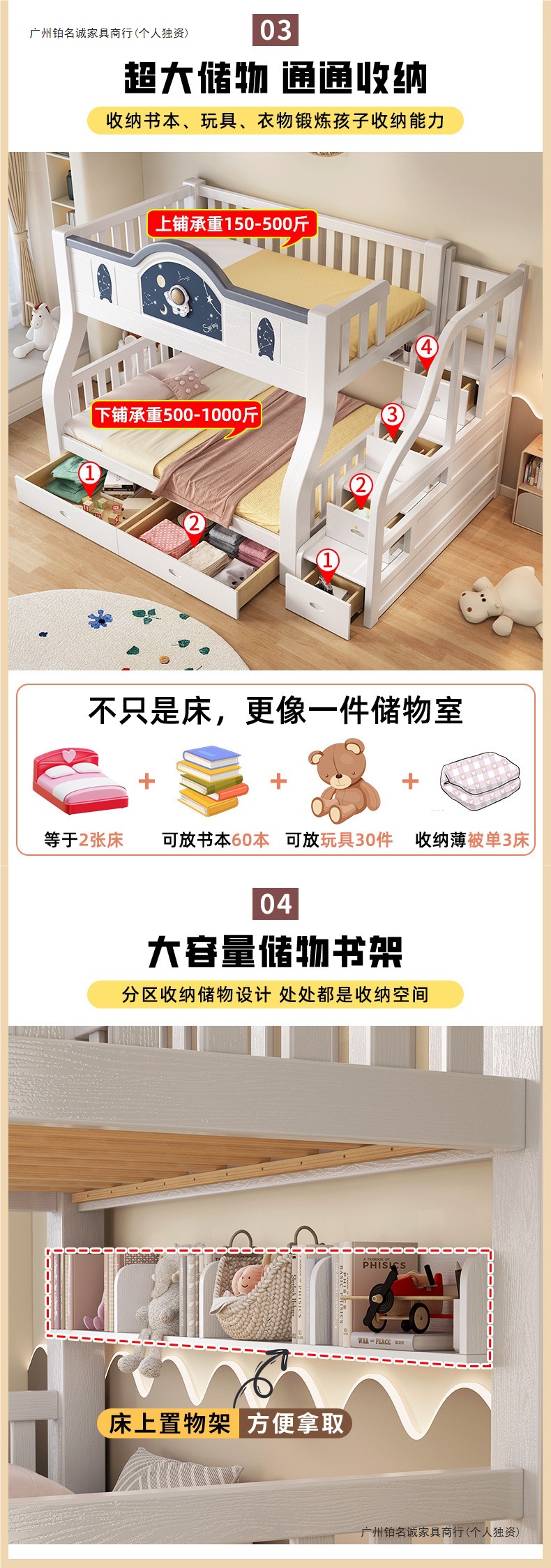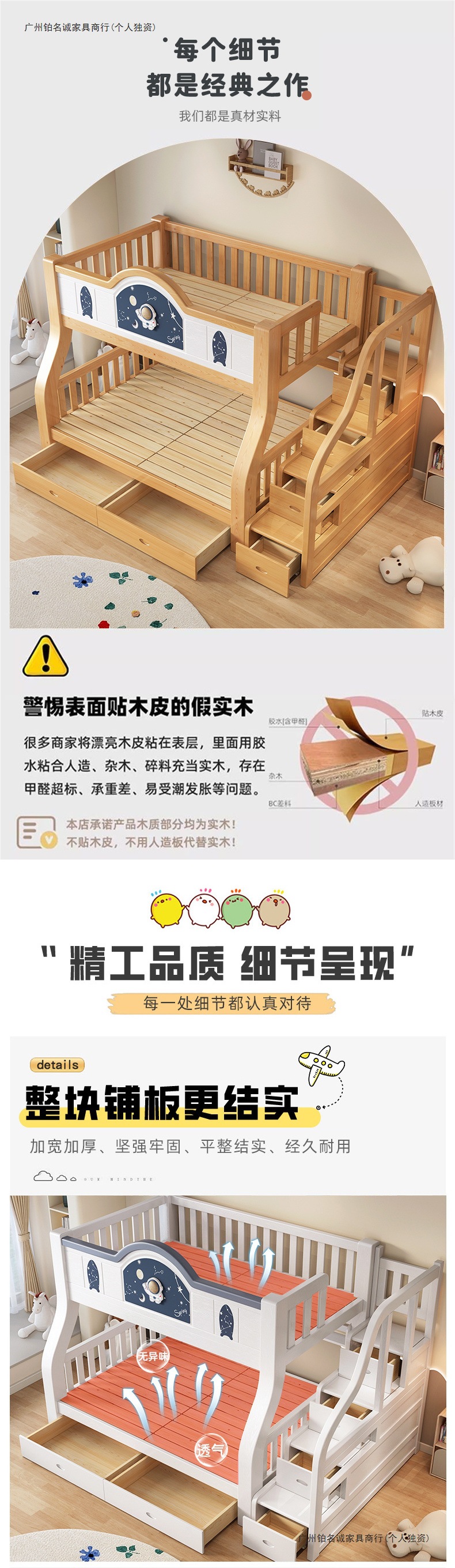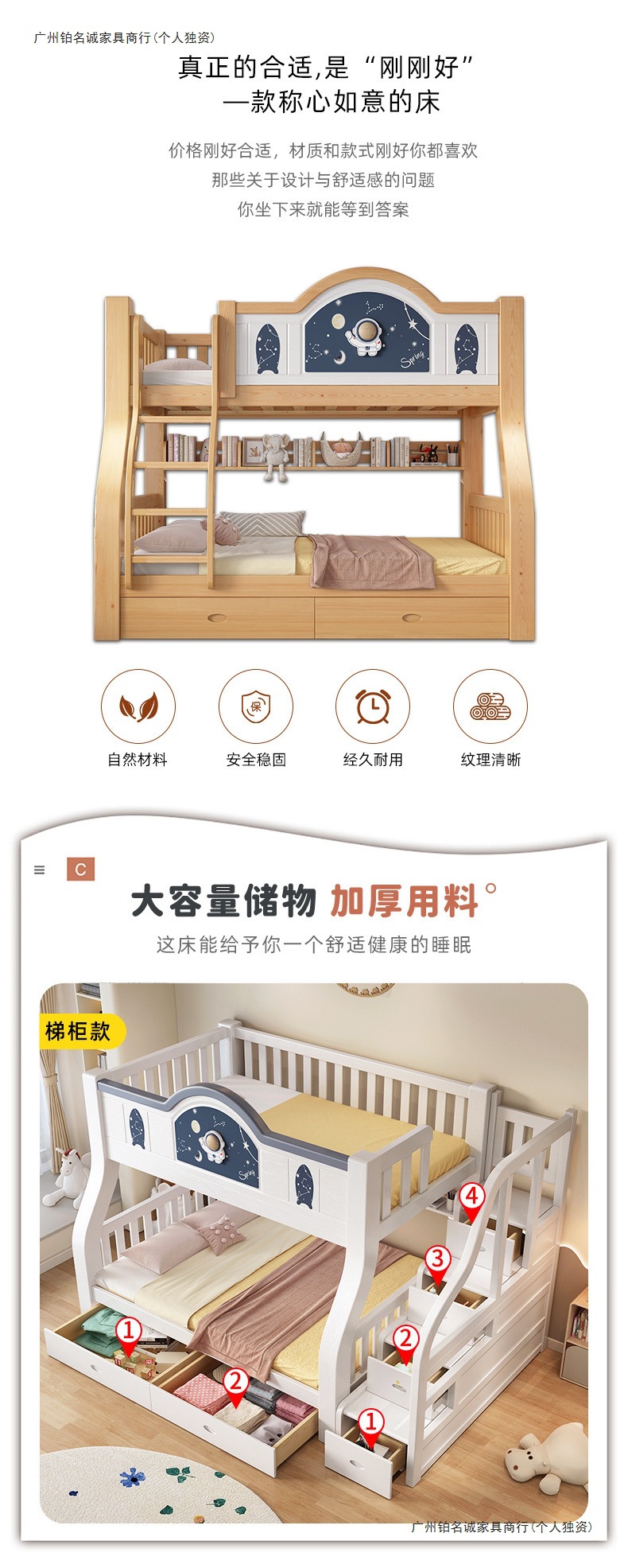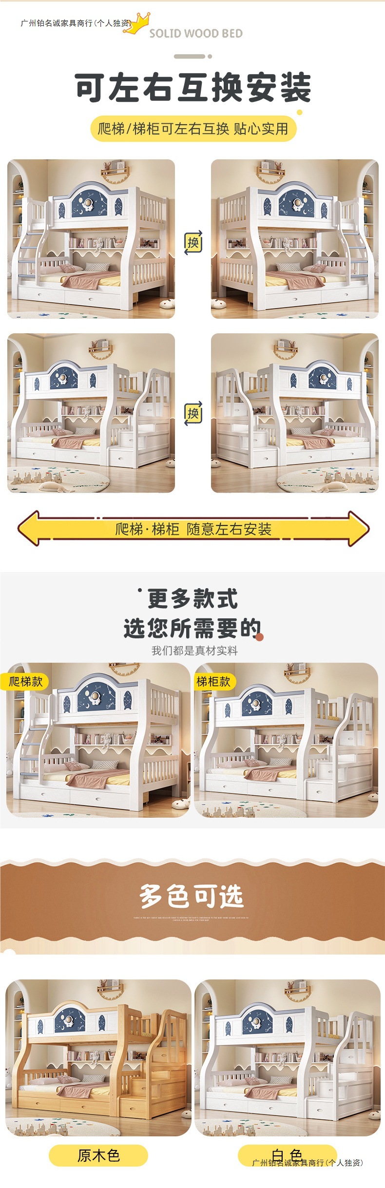 원목 어린이 이층침대, 2층 이층침대, 소형 가정용 두꺼운 이층침대