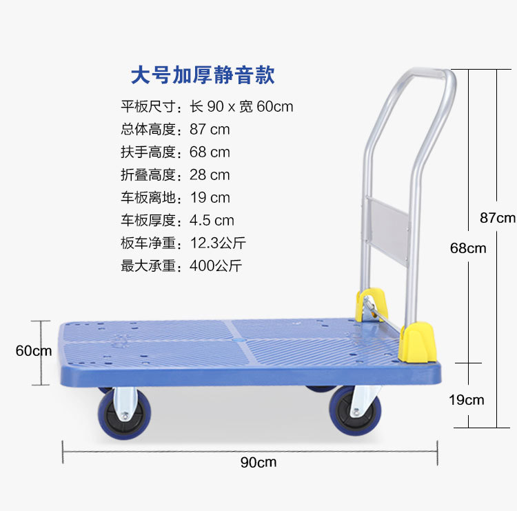 무소음 접이식 수동 플랫 카트, 경량 운반, 휴대용 카트, 4륜 트레일러, 가정용 카트