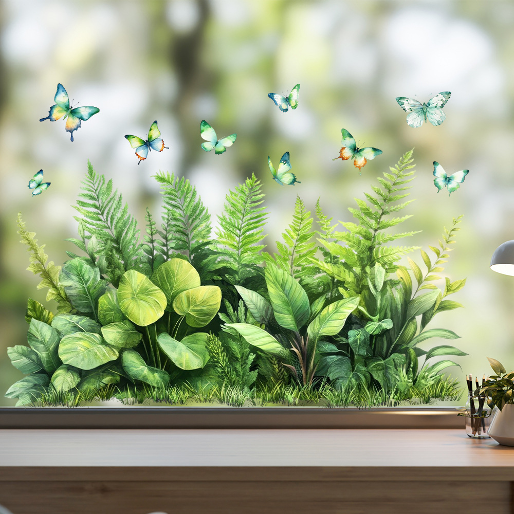 Yiyao JD3626 동남아시아 3D 열대 녹색 식물 펀 창 스티커 레스토랑 유리 창 정전기 스티커스토어 가기
