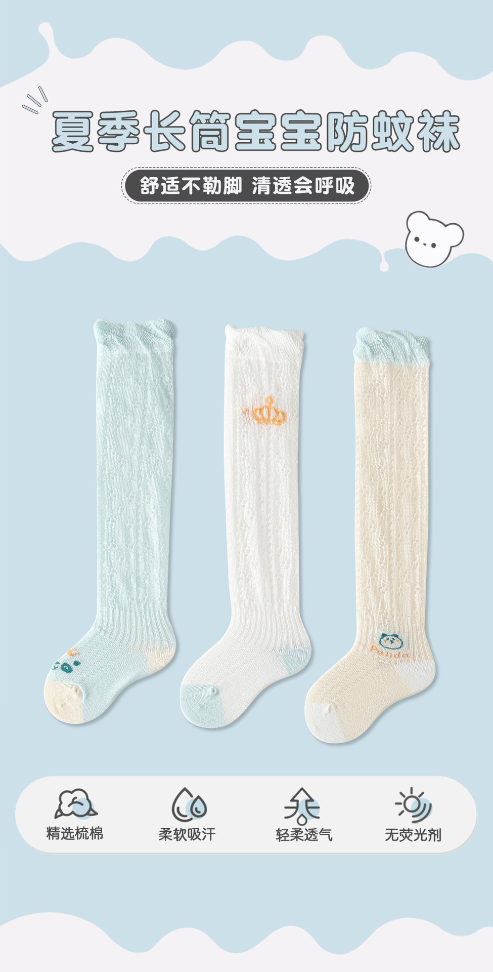 무료 배송, 모기 방지 양말, 면 베이비 스타킹, 순면 뼈없는 베이비 스타킹, 무릎 위 봄 여름