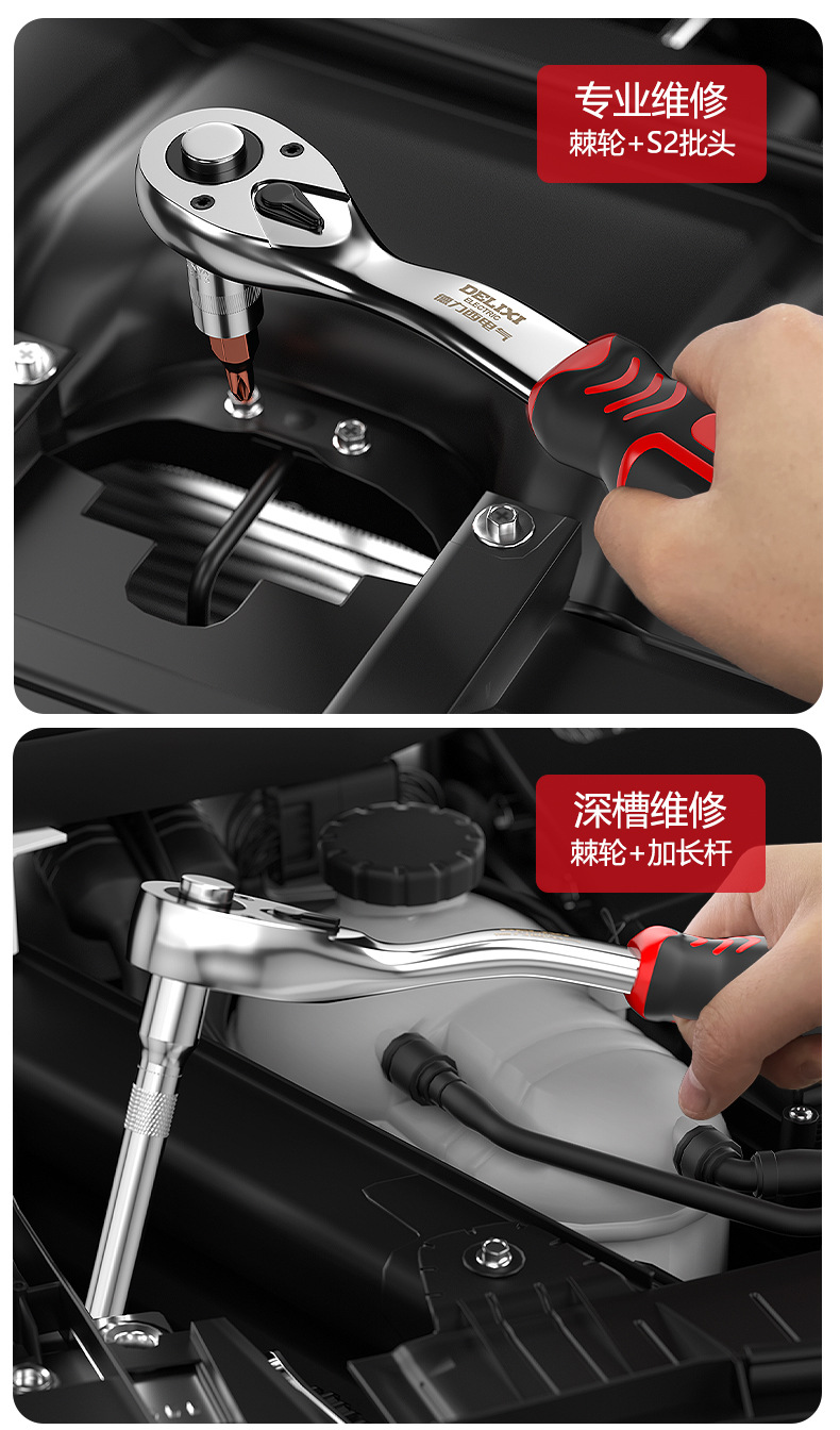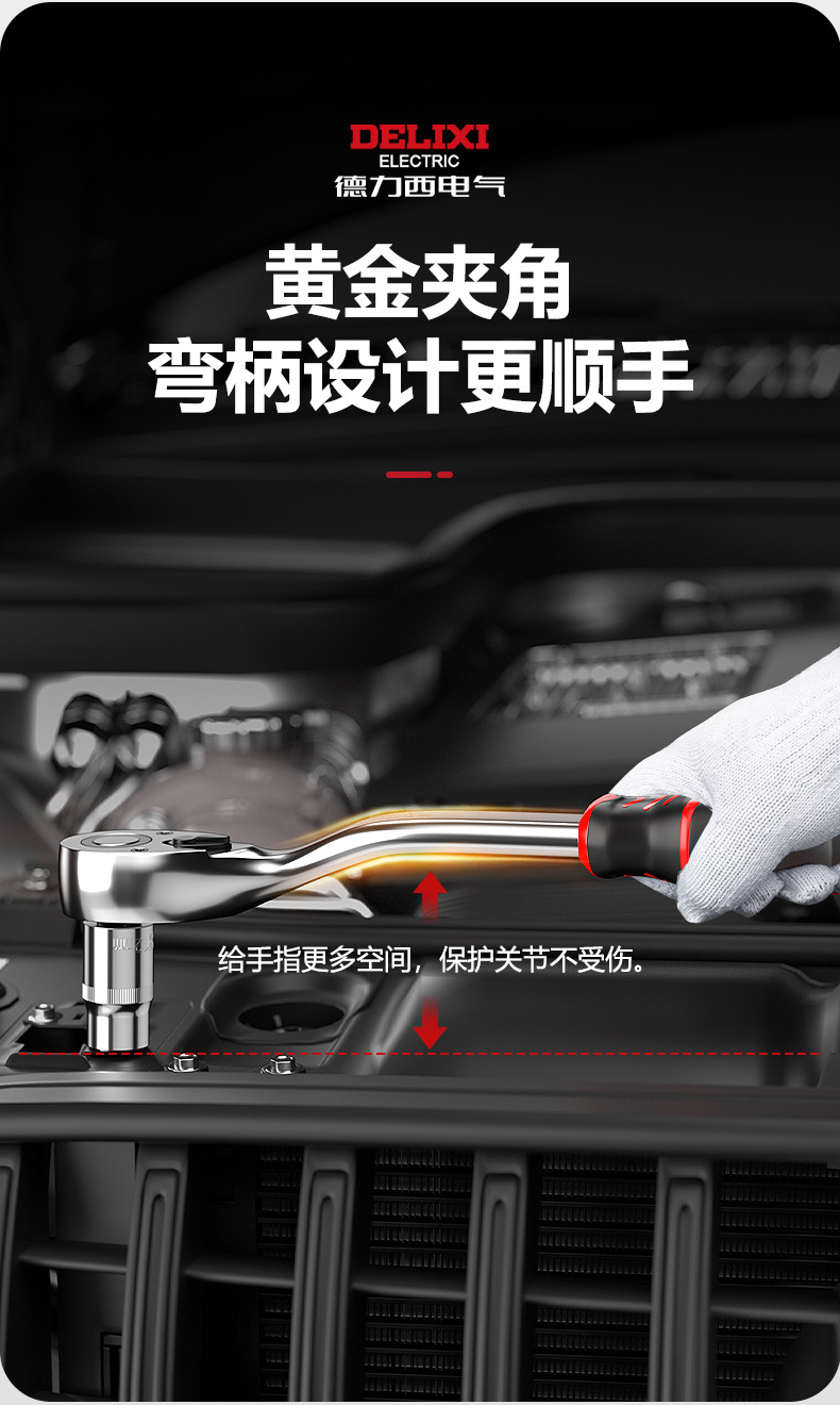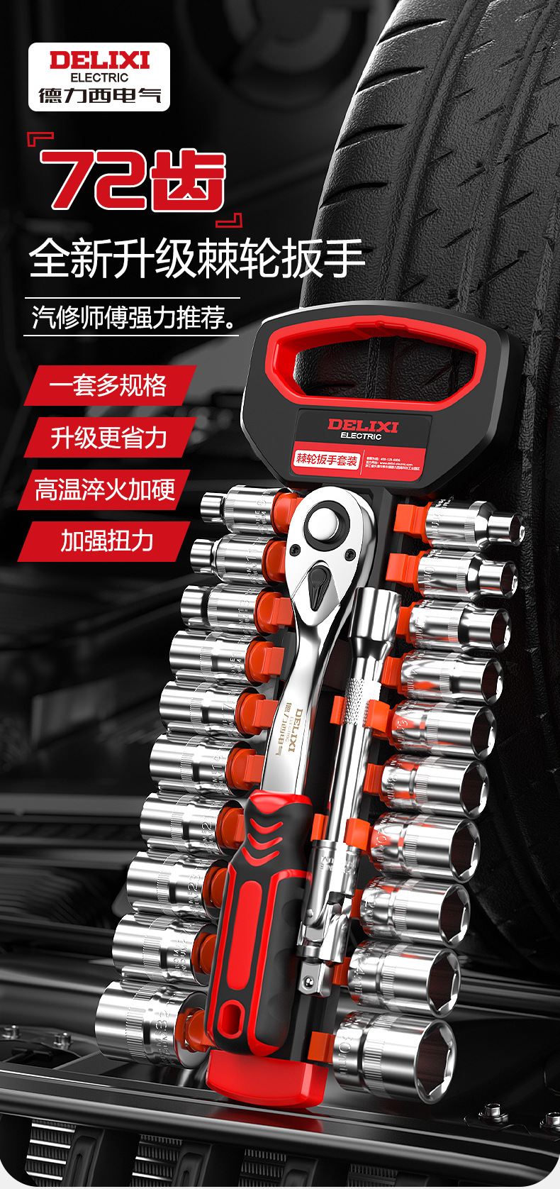 Delixi Electric 72 치아 래칫 렌치 세트 대형, 중형 및 소형 플라이 내부 및 외부 래칫 자동 수리 도구 소켓 렌치스토어 가기