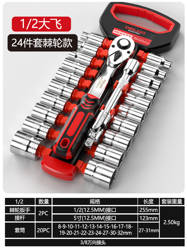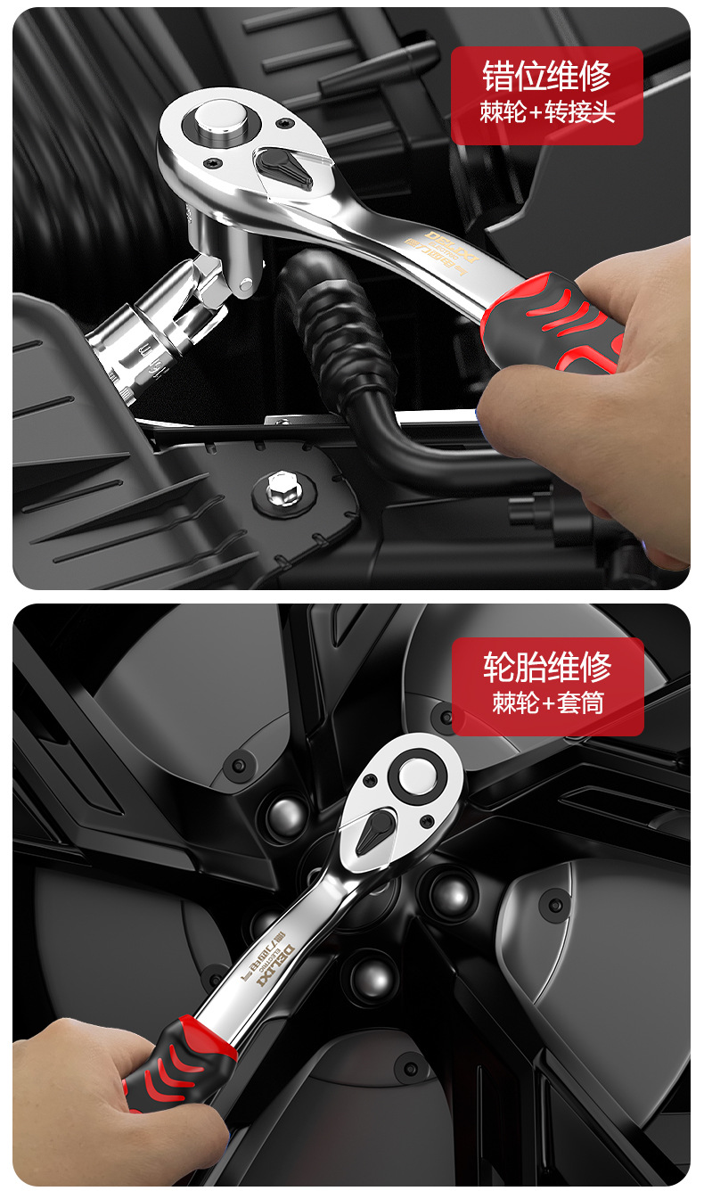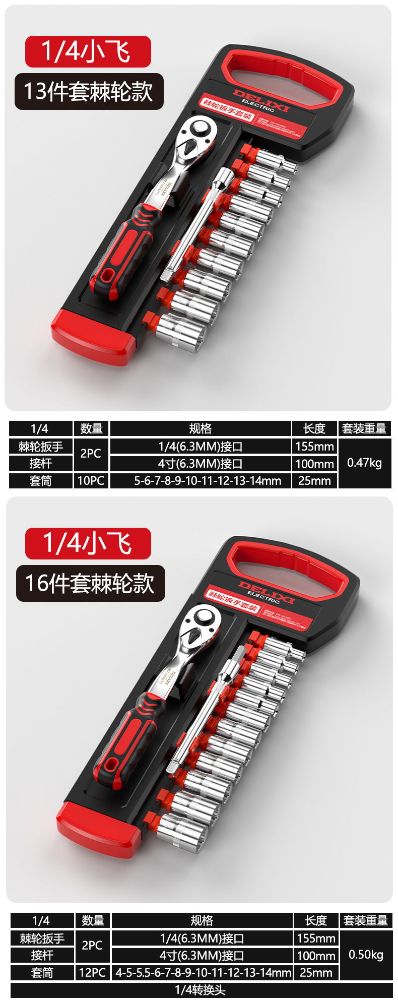 Delixi Electric 72 치아 래칫 렌치 세트 대형, 중형 및 소형 플라이 내부 및 외부 래칫 자동 수리 도구 소켓 렌치스토어 가기