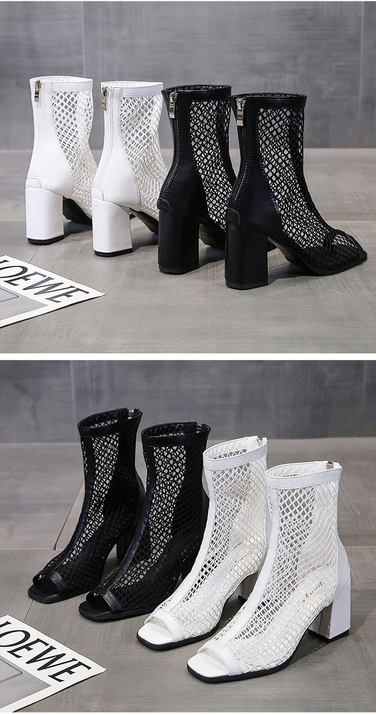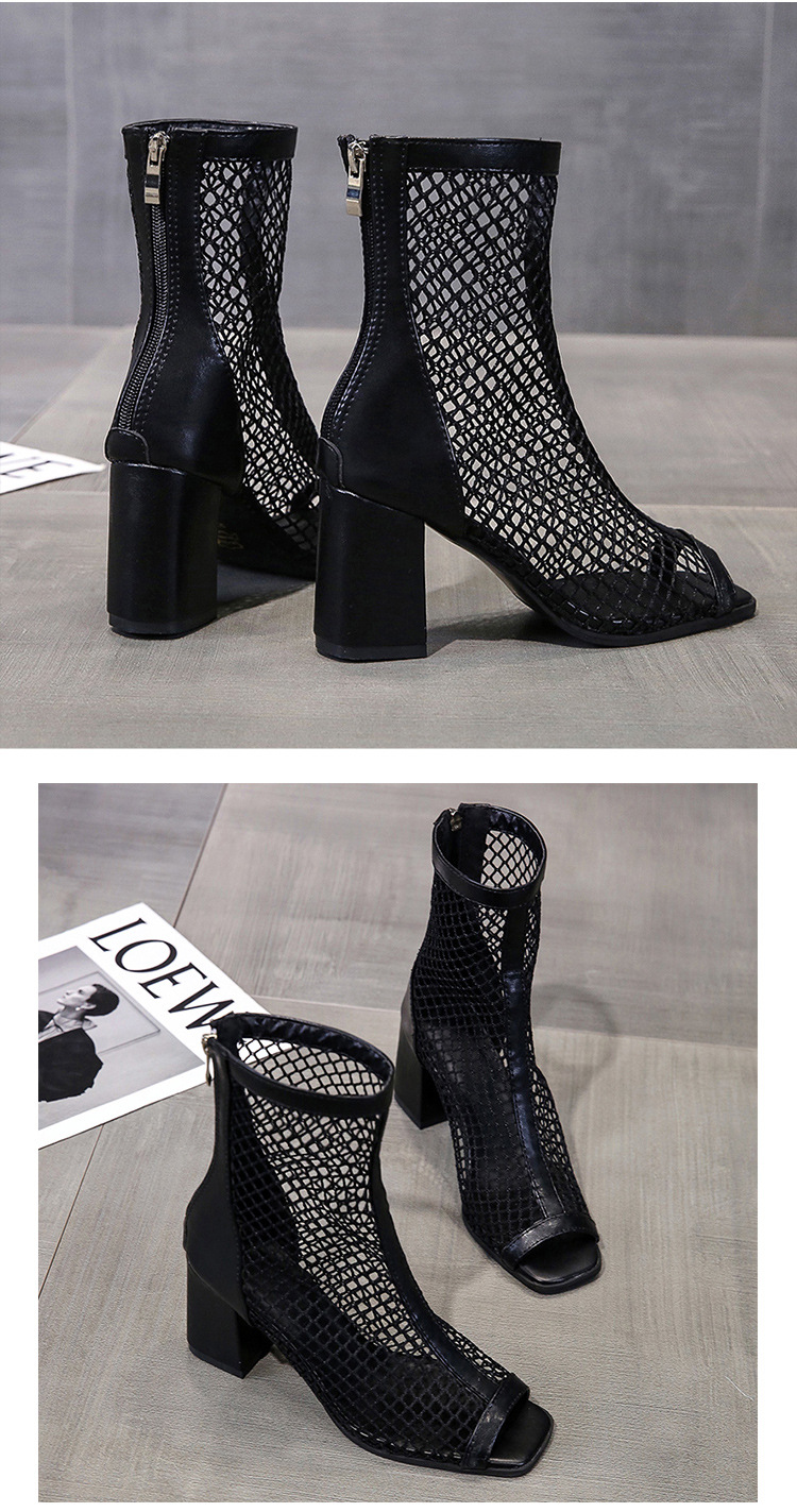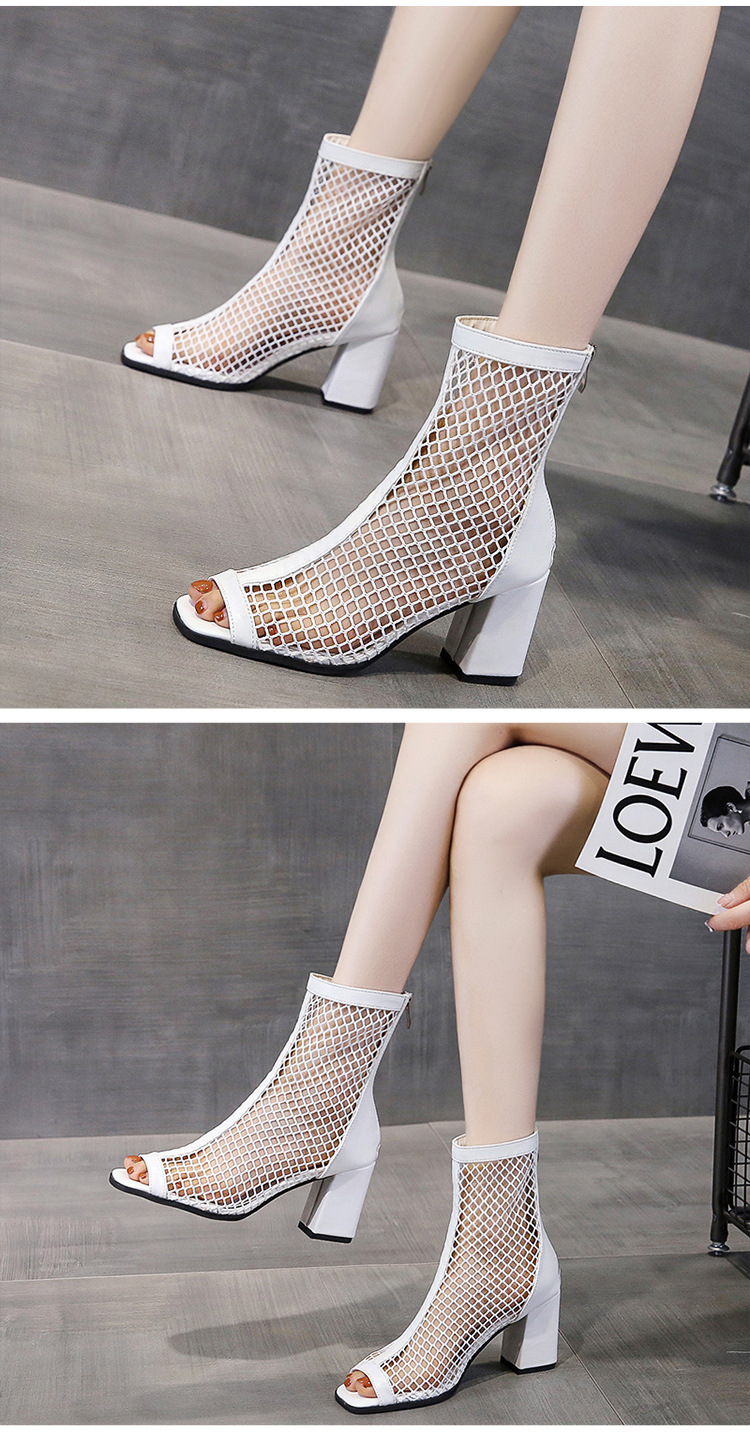 여성을위한 두꺼운 굽 샌들 메쉬 샌들 2025 여름 새로운 메쉬 짧은 부츠 하이힐 여성 하이힐을위한 중공 메쉬 부츠