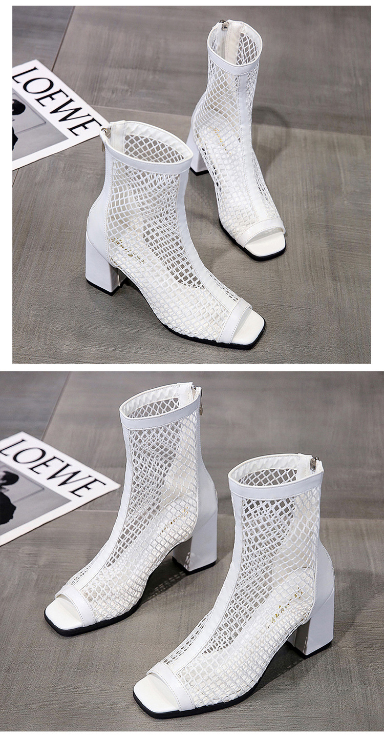 여성을위한 두꺼운 굽 샌들 메쉬 샌들 2025 여름 새로운 메쉬 짧은 부츠 하이힐 여성 하이힐을위한 중공 메쉬 부츠스토어 가기