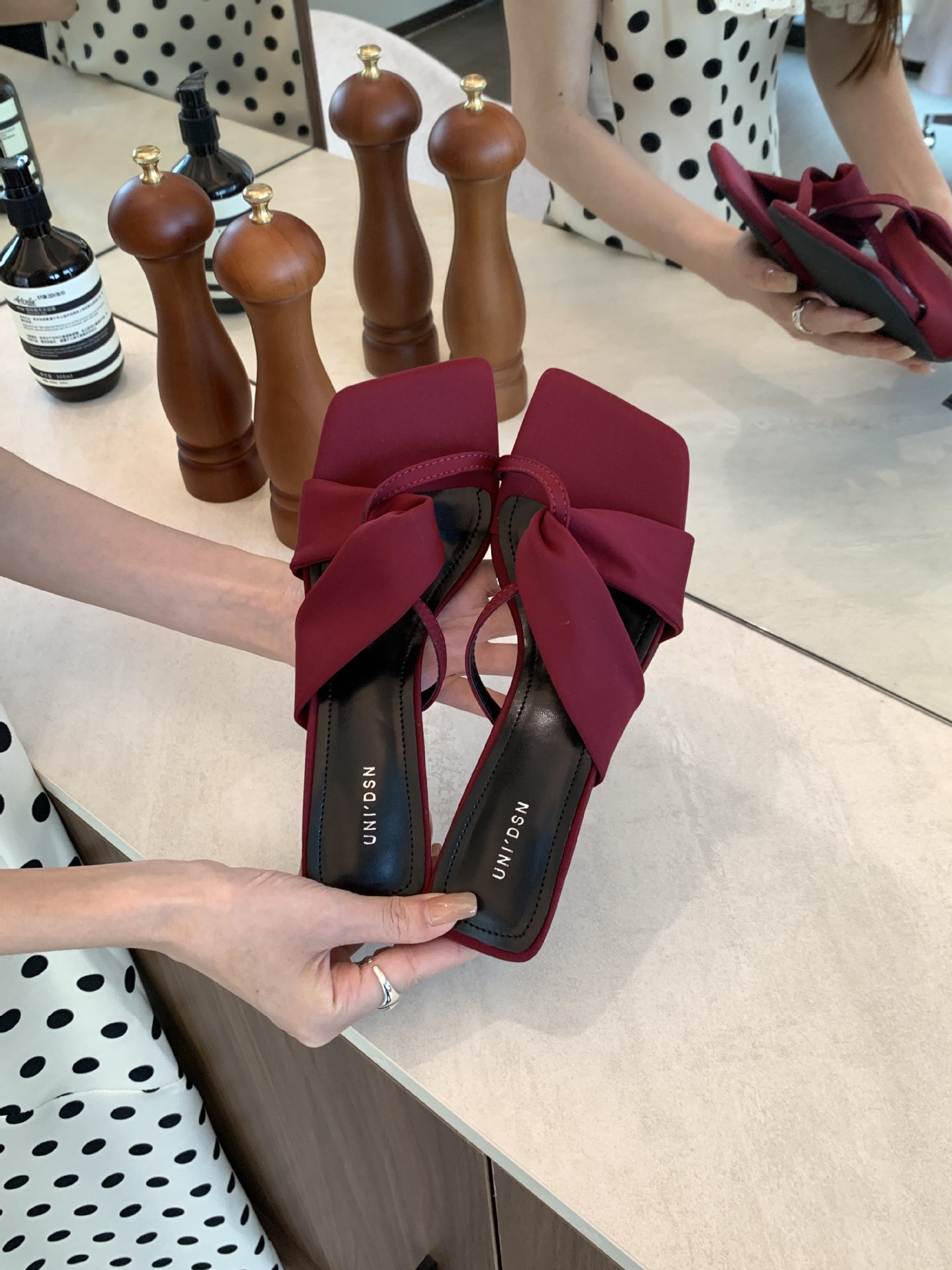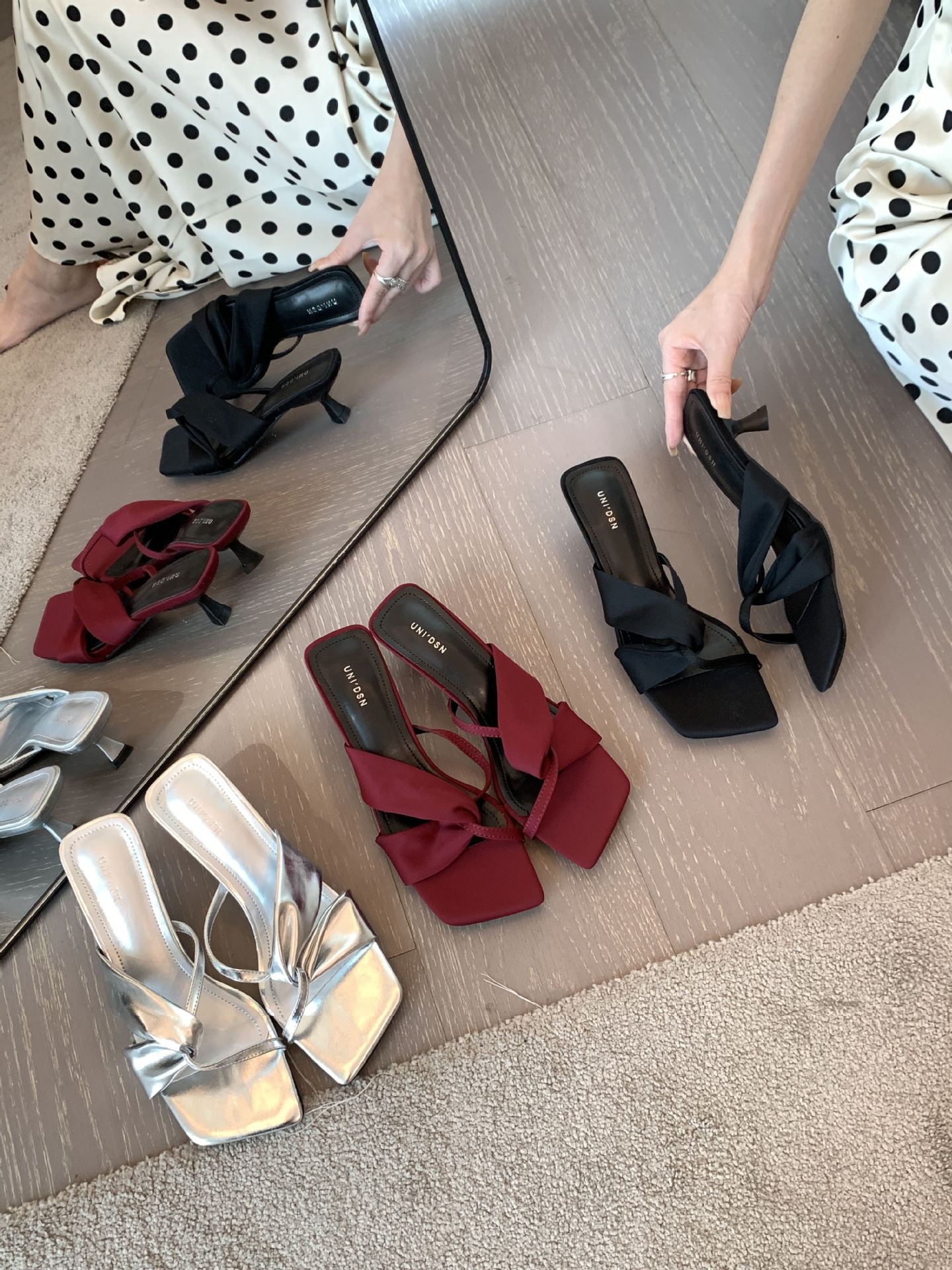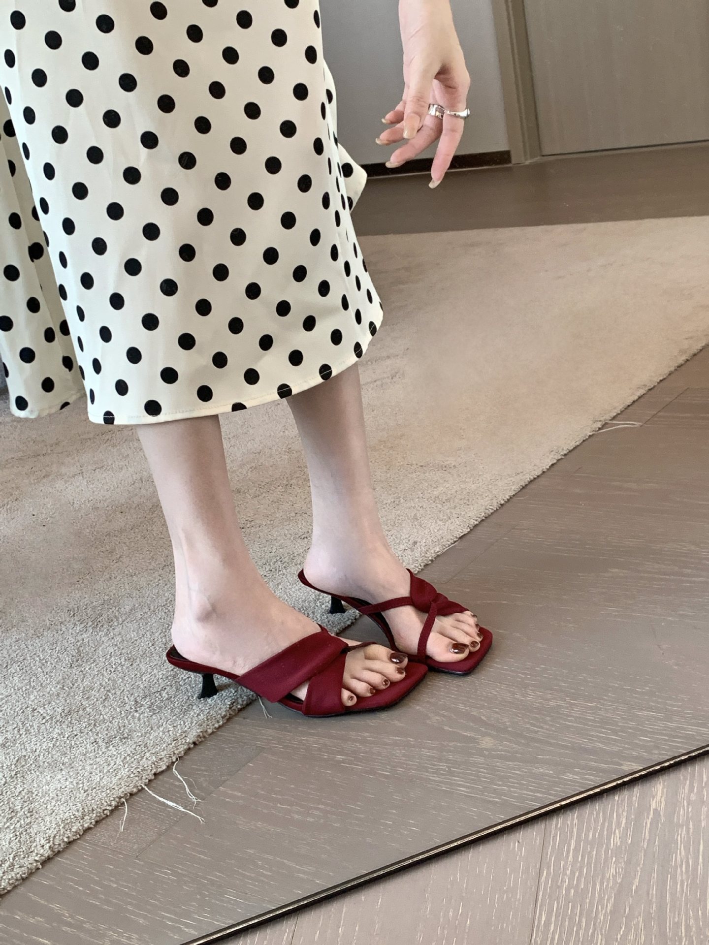 하이힐, 원라인 샌들, 요정신발, 2024 신상 여름 레드 기질 샌들스토어 가기