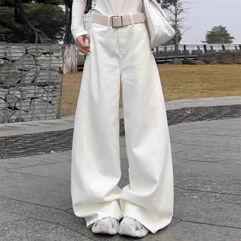 옐로우 핫템 데님 와이드 팬츠 여성용 가을 2025 신상 루즈핏 캐주얼 릴렉스 데님 팬츠스토어 가기