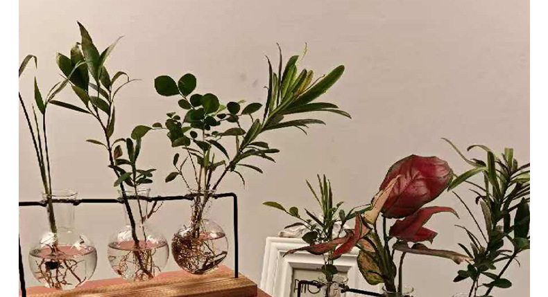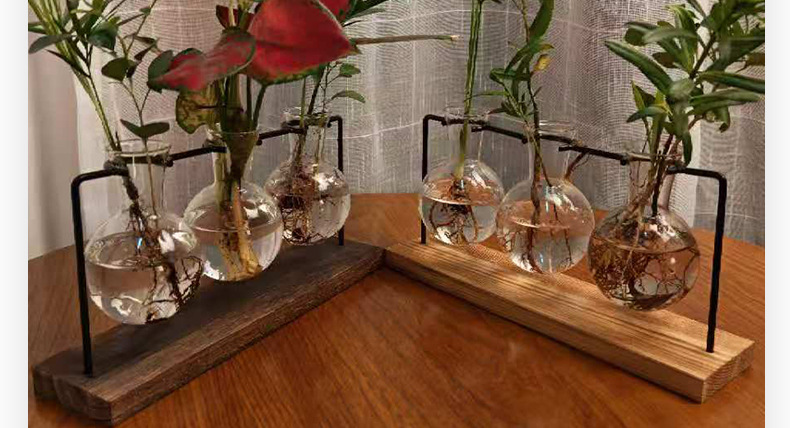 크리 에이 티브 나무 프레임 수경 유리 꽃병 ins 스타일 복고풍 pothos 식물 수경 용기 작은 꽃병 데스크탑 장식품