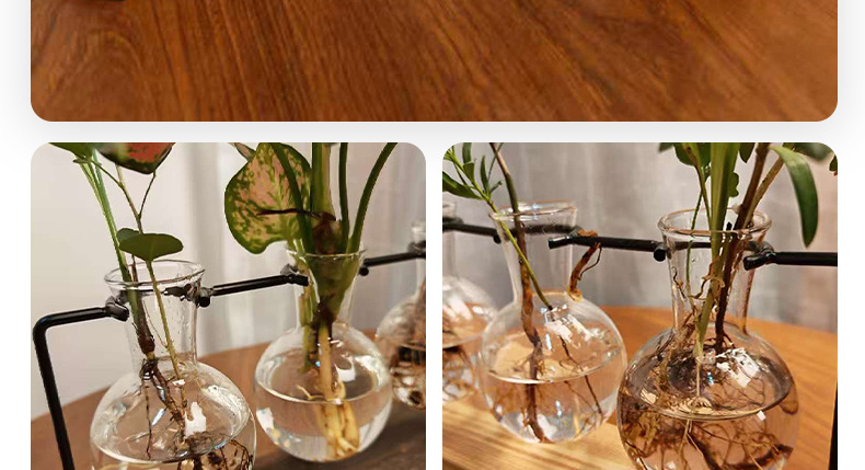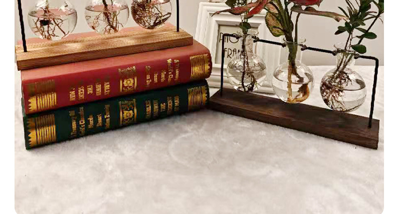 크리 에이 티브 나무 프레임 수경 유리 꽃병 ins 스타일 복고풍 pothos 식물 수경 용기 작은 꽃병 데스크탑 장식품스토어 가기