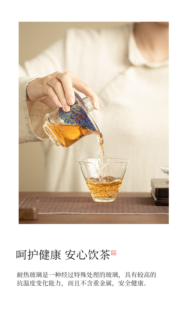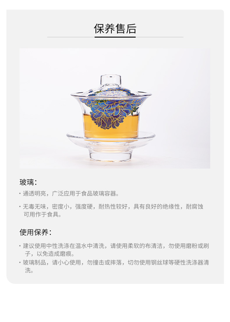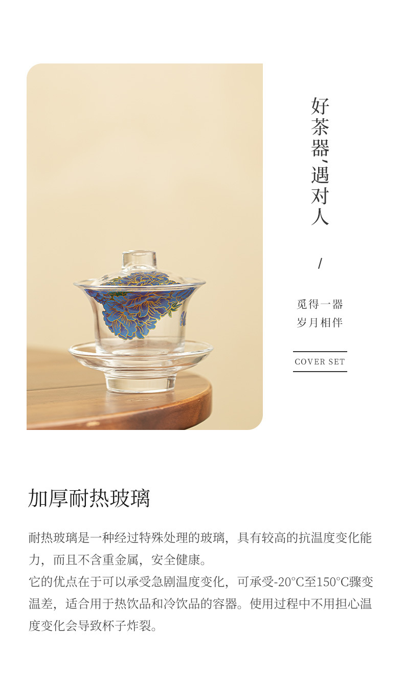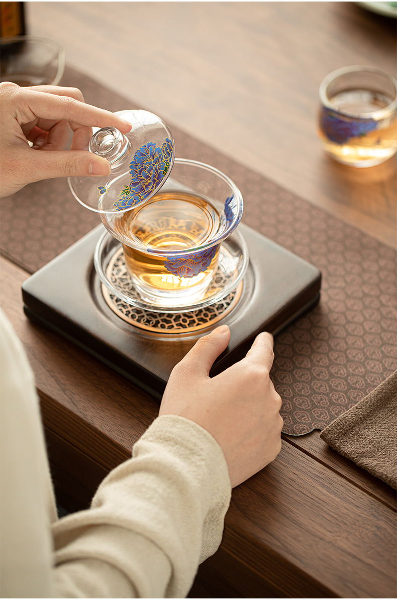 두꺼운 유리 크리스탈 질감의 삼중 뚜껑 그릇, 녹차 찻잔, 여름 찻잔, 쿵푸 차 세트스토어 가기