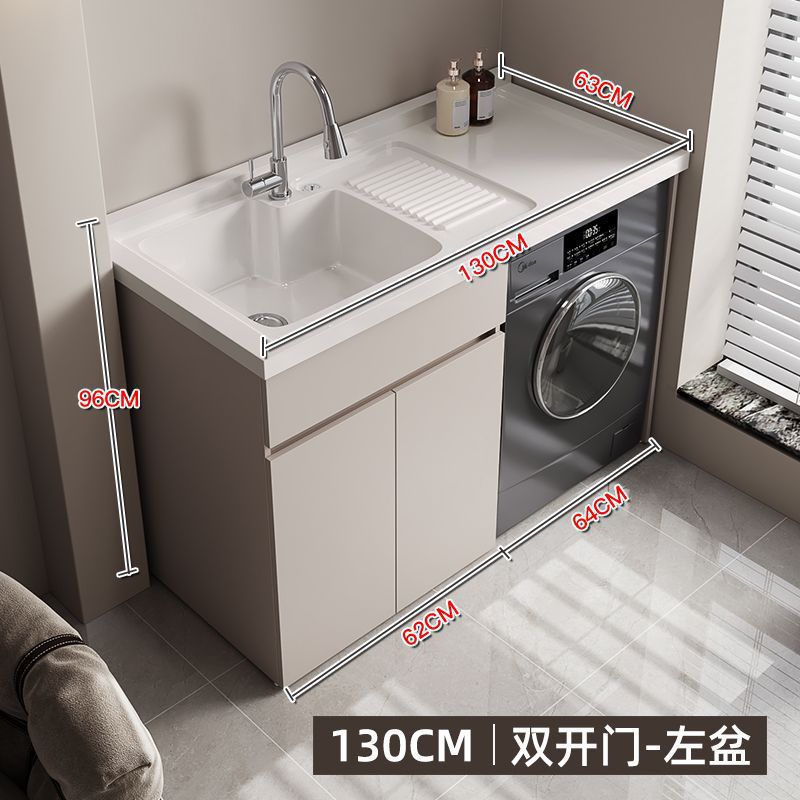 • 밀크티 컬러 스타일 - 오프라인 동일 스타일 - 130CM 왼쪽 세면대 SPC 전체 알루미늄 캐비닛