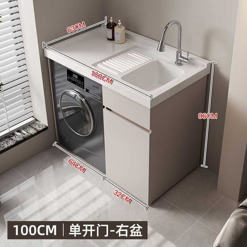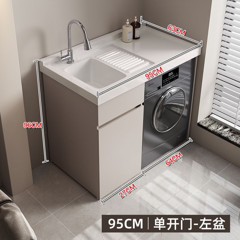 • 밀크티 컬러 스타일 - 오프라인 동일 스타일 - 95CM 오른쪽 세면대 SPC 전체 알루미늄 캐비닛