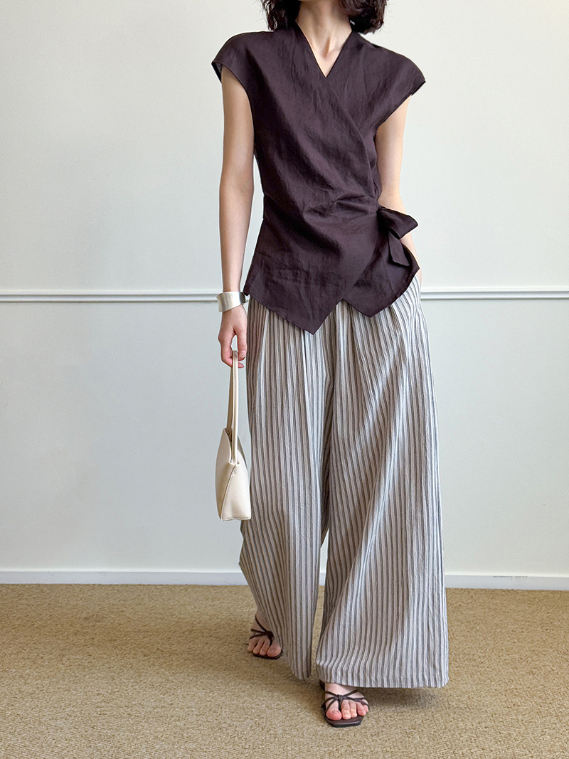 Juzhi 여름 새로운 패션 캐주얼 라미 셔츠 여성의 불규칙한 조끼 조커 탑 8011-1