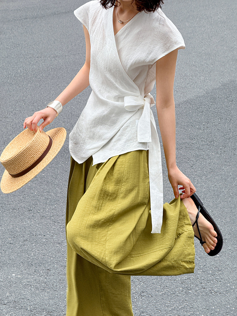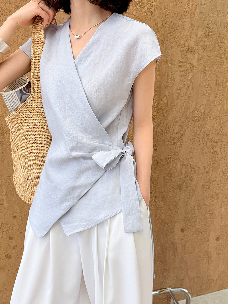 Juzhi 여름 새로운 패션 캐주얼 라미 셔츠 여성의 불규칙한 조끼 조커 탑 8011-1스토어 가기