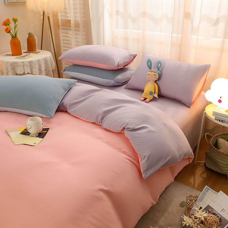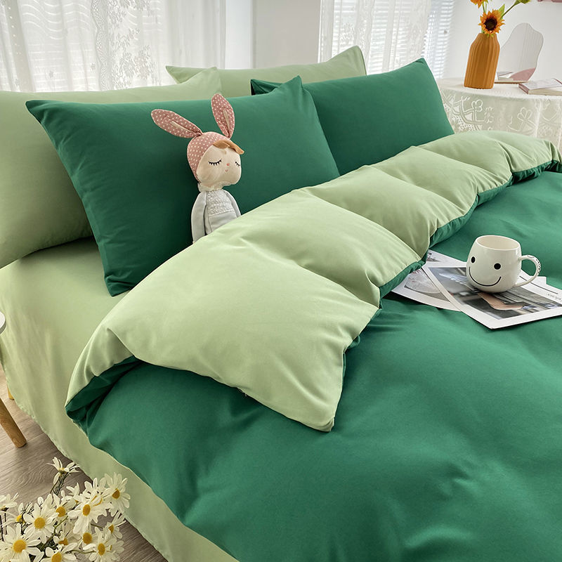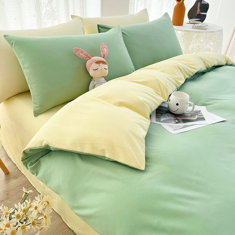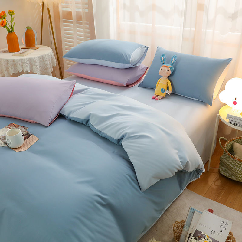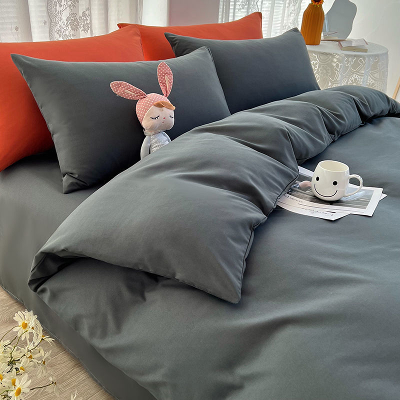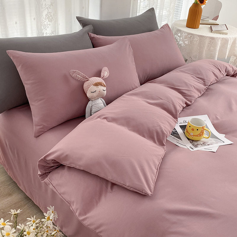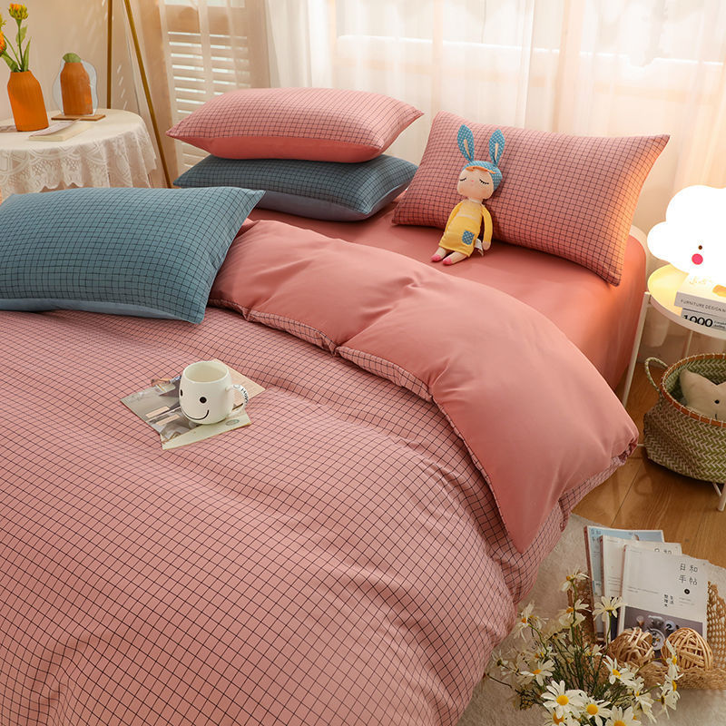 침구 4종 세트, 단색 워싱면 침대 시트, 학생용 3종 세트, 기숙사 단색, 작고 산뜻함