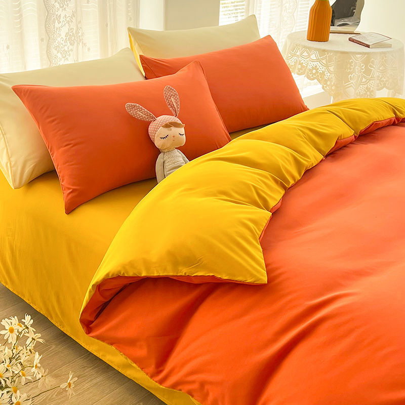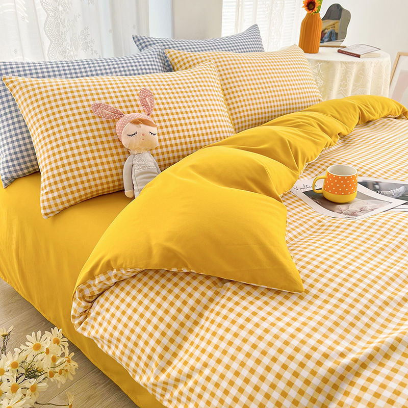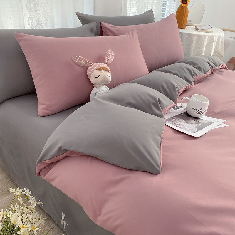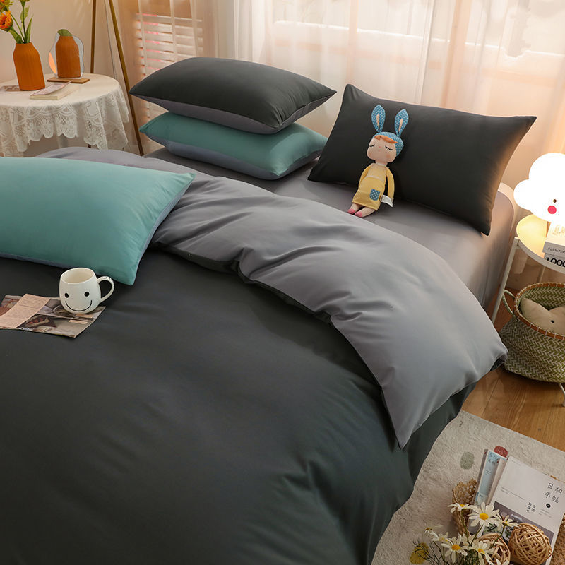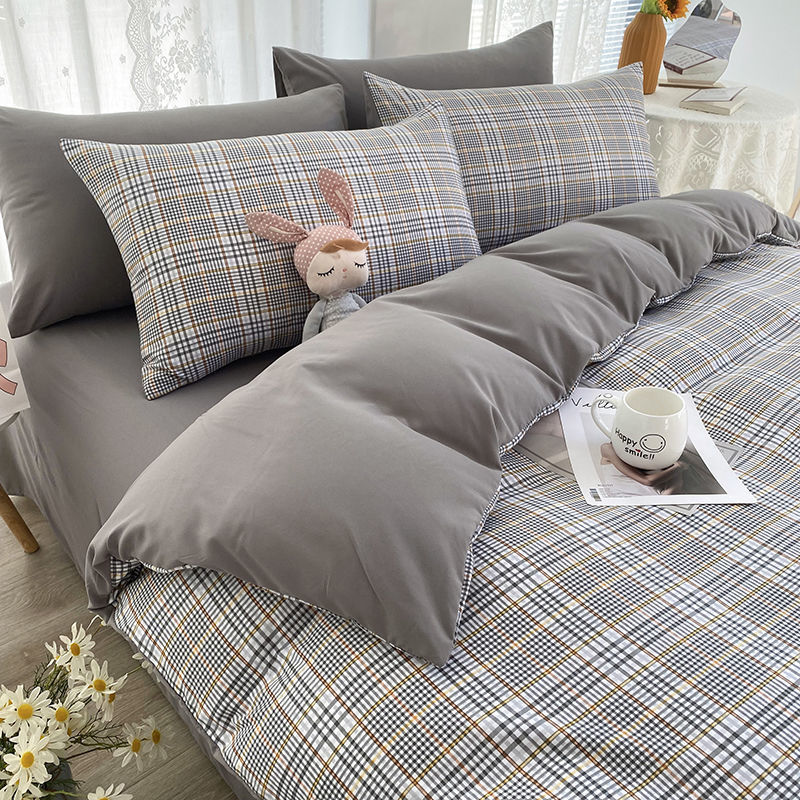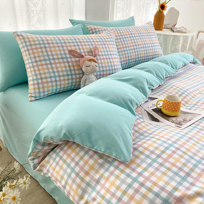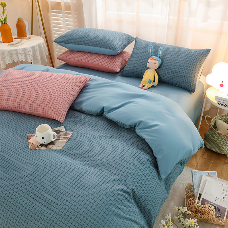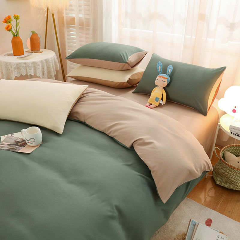 침구 4종 세트, 단색 워싱면 침대 시트, 학생용 3종 세트, 기숙사 단색, 작고 산뜻함