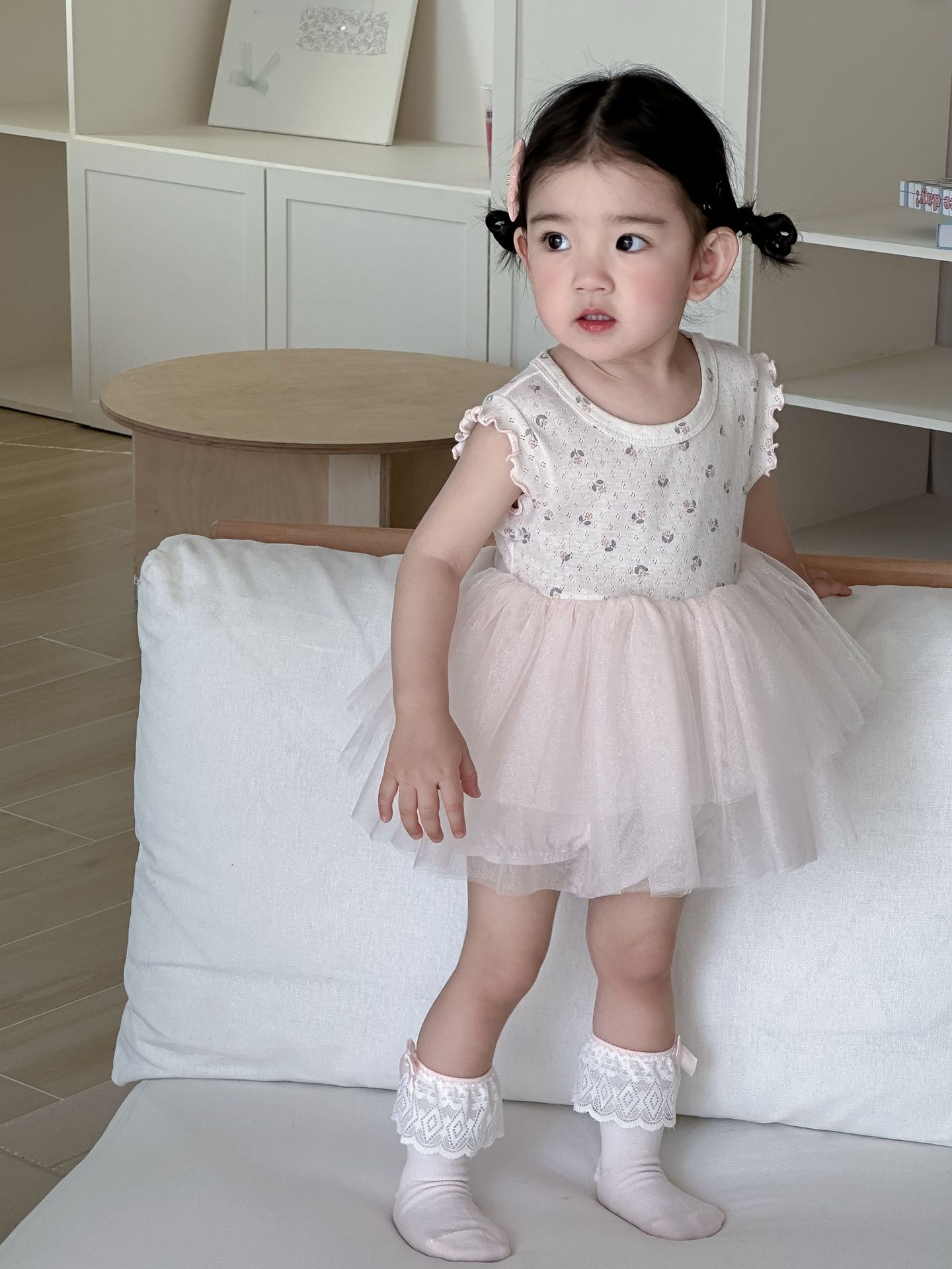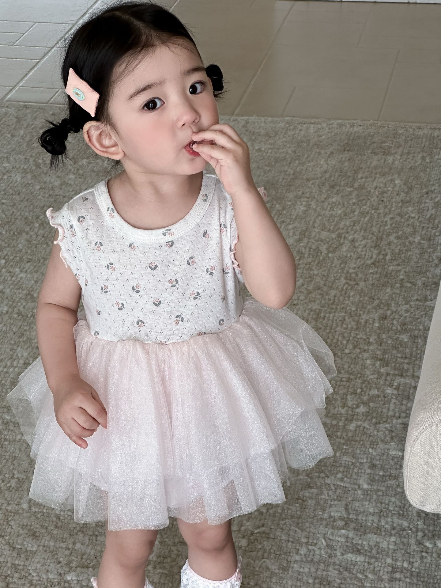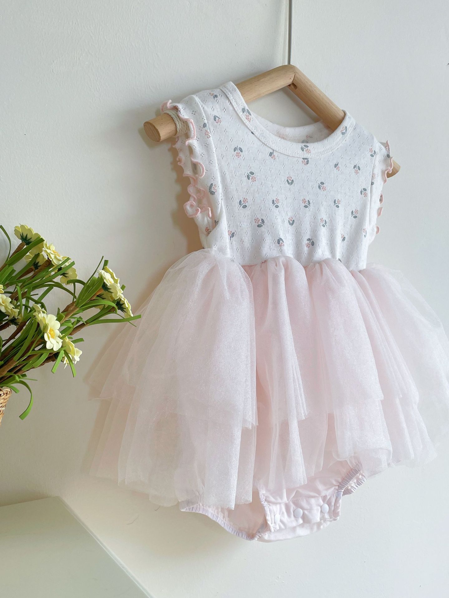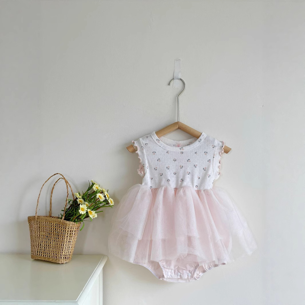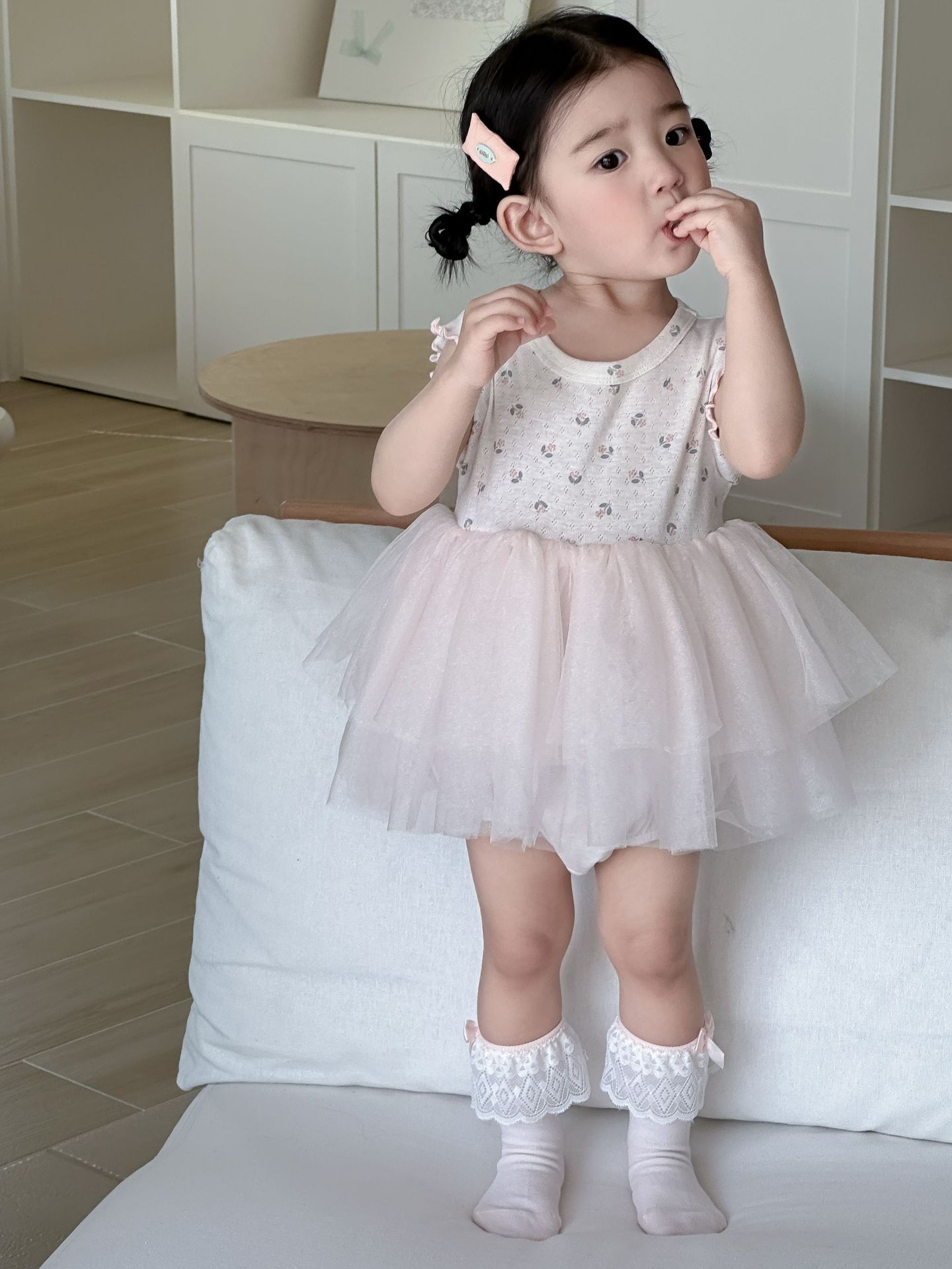 2025 여자 새로운 여름 니트 꽃 거즈 스커트 rompers 투투 스커트 휴가 스타일 공주 스타일 하렘