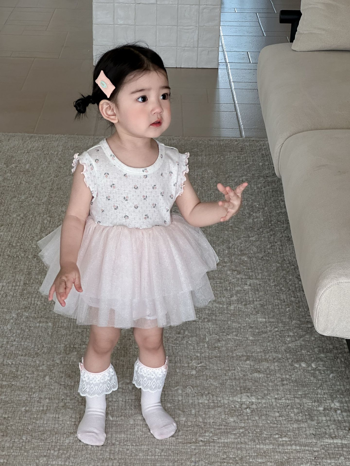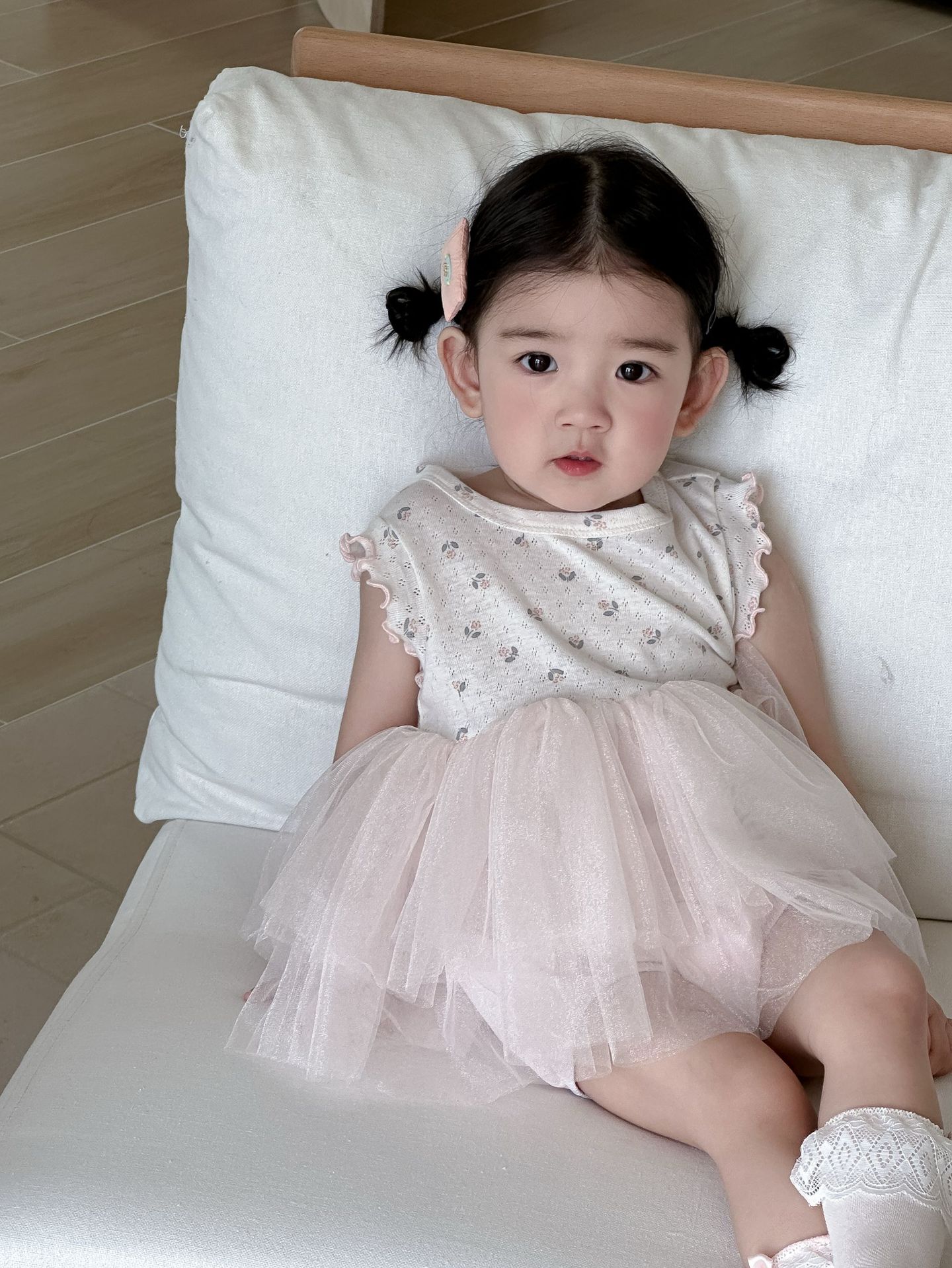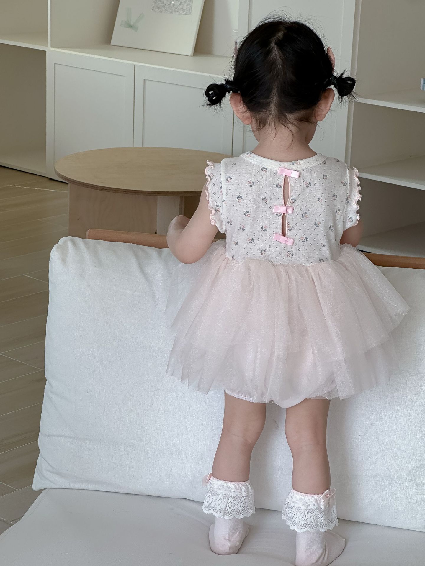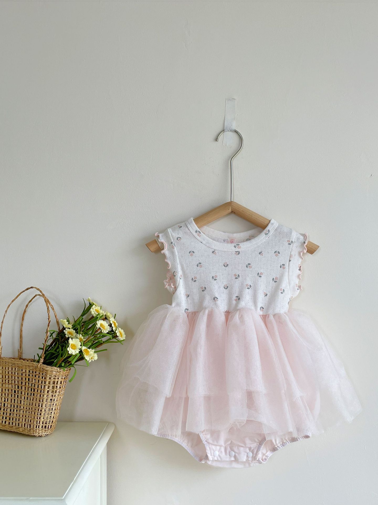 2025 여자 새로운 여름 니트 꽃 거즈 스커트 rompers 투투 스커트 휴가 스타일 공주 스타일 하렘