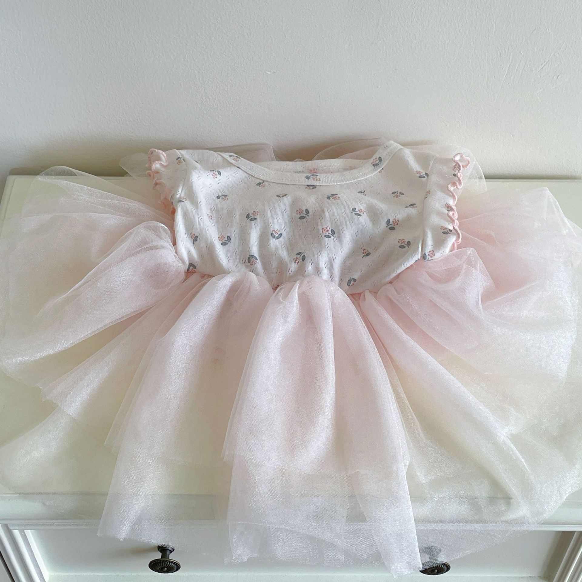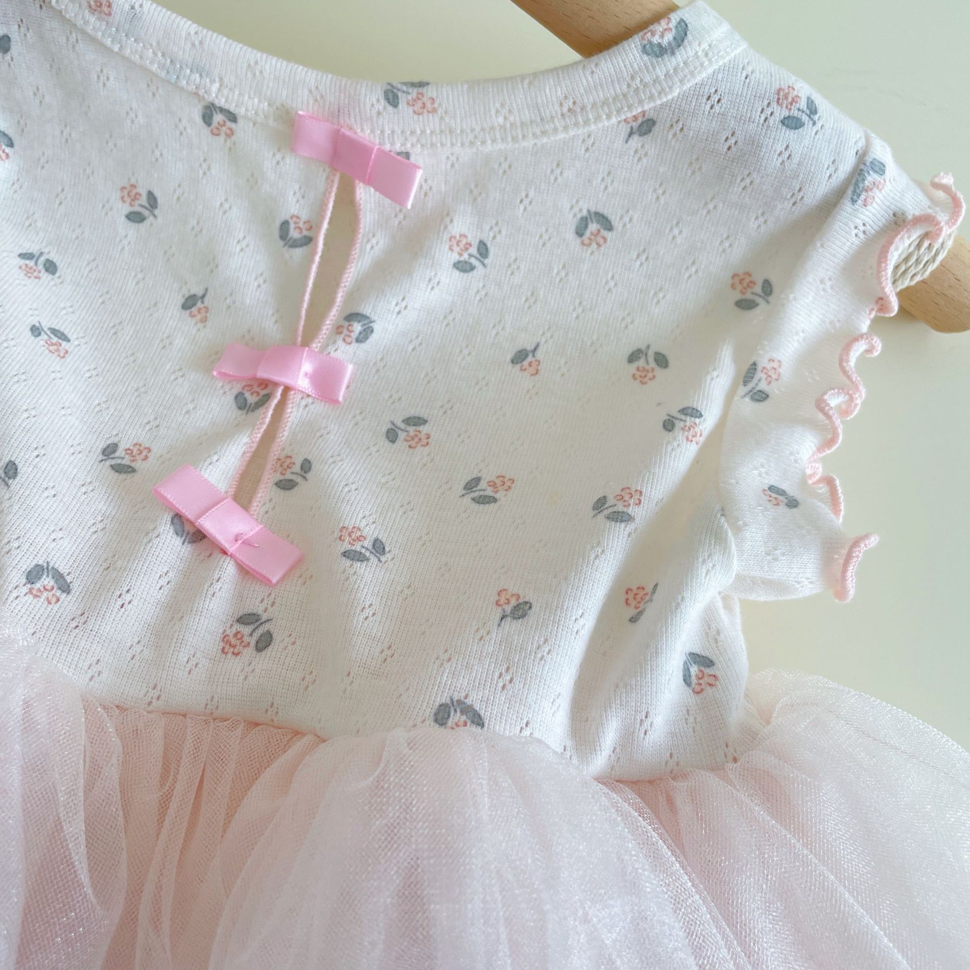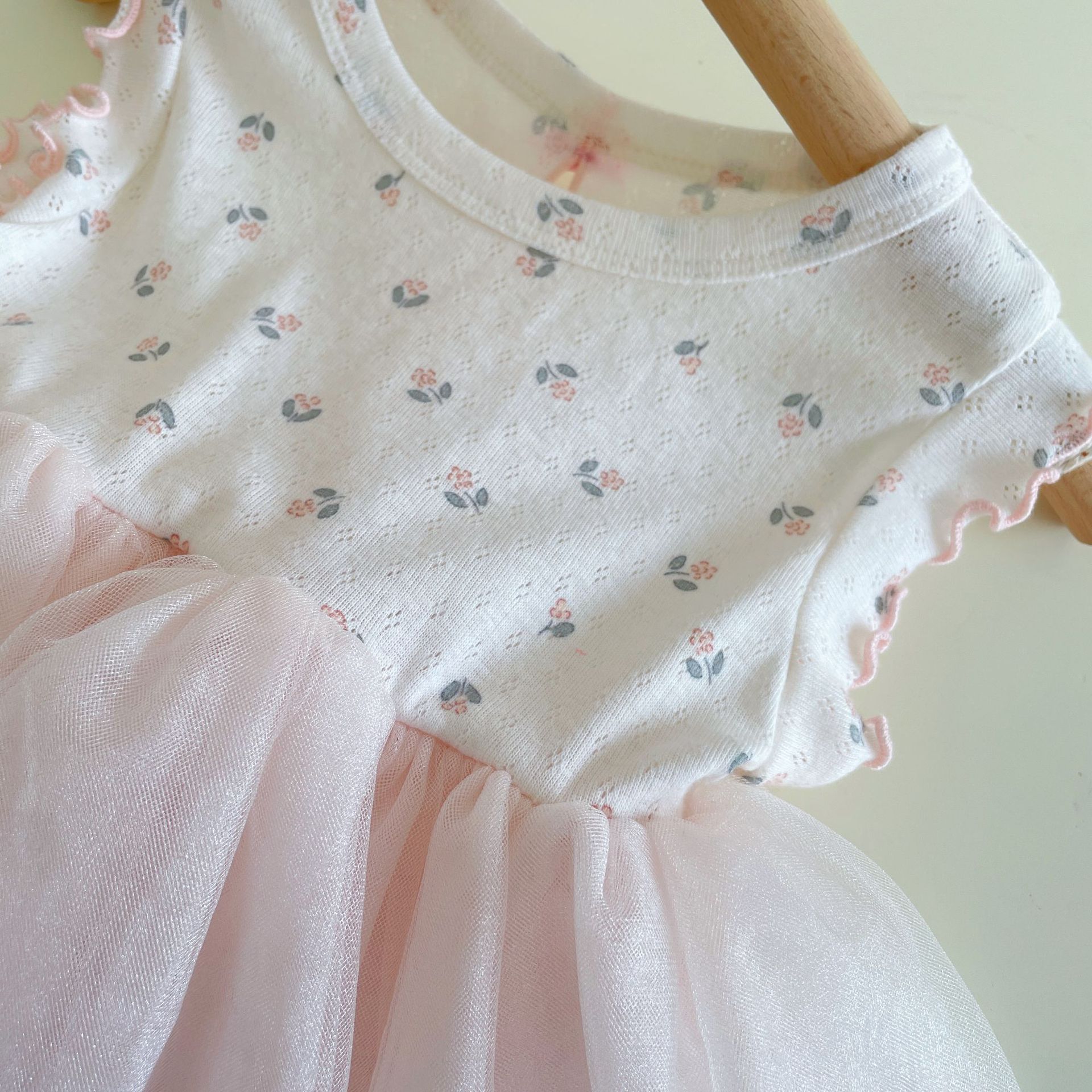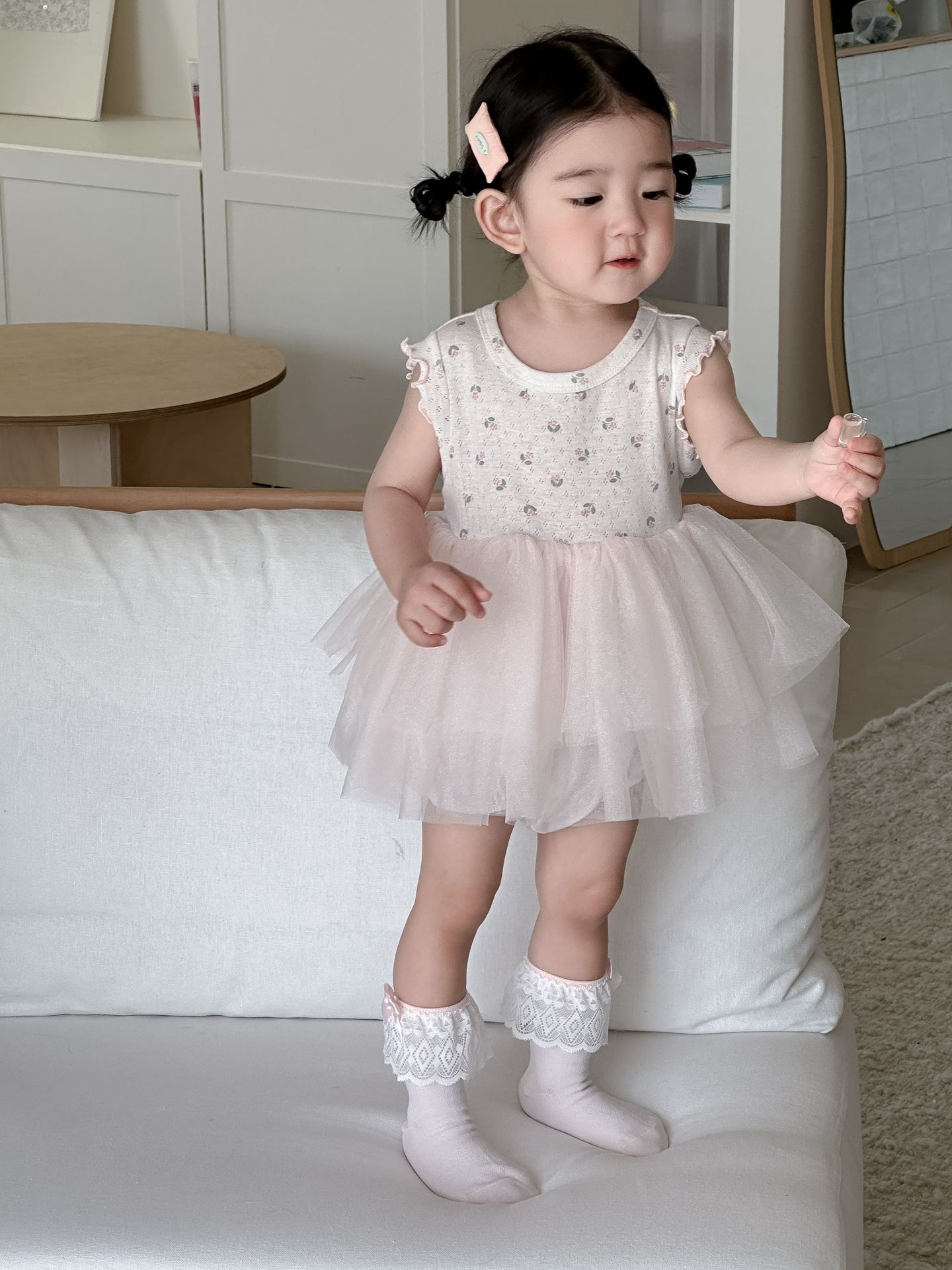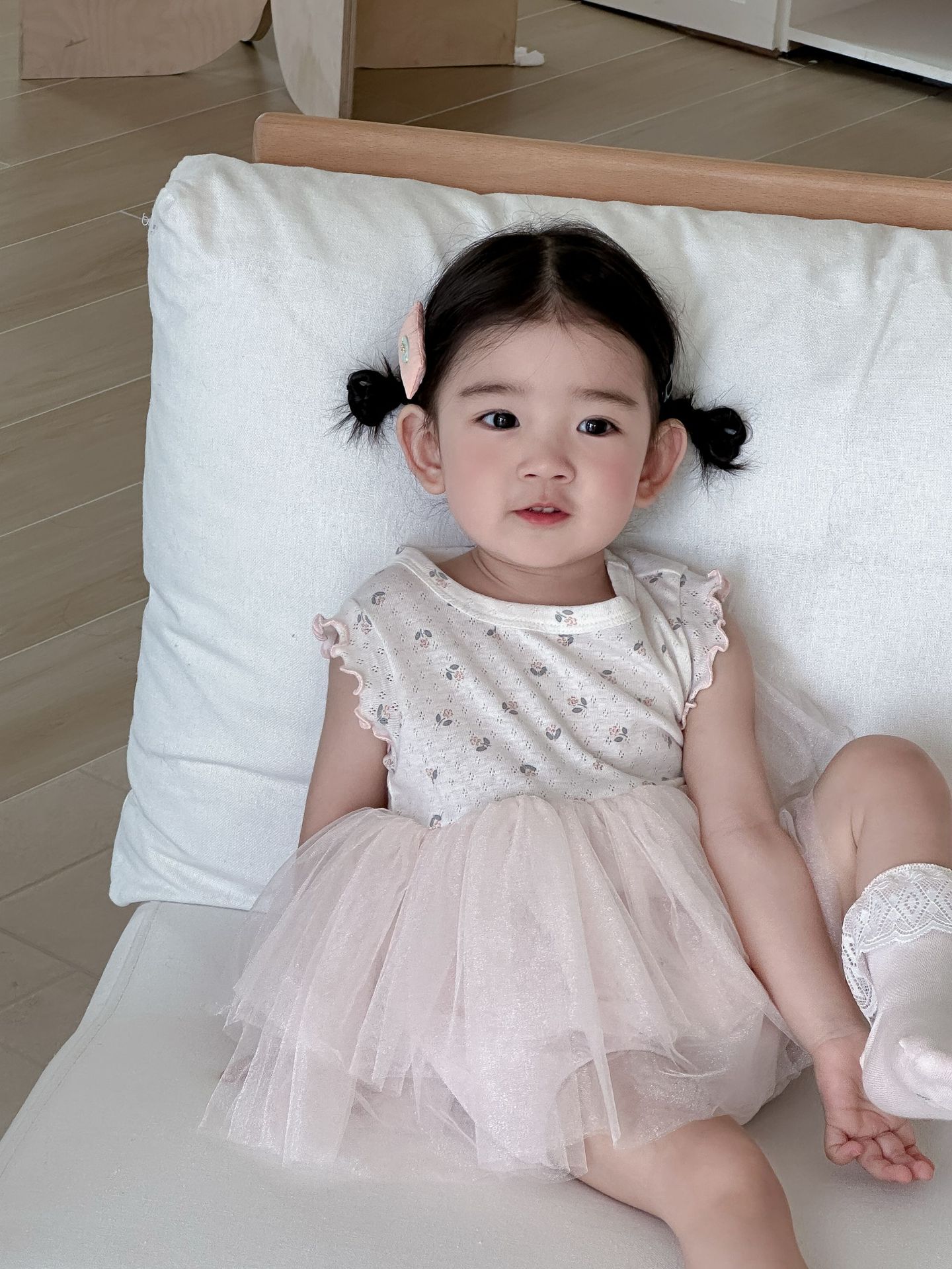 2025 여자 새로운 여름 니트 꽃 거즈 스커트 rompers 투투 스커트 휴가 스타일 공주 스타일 하렘