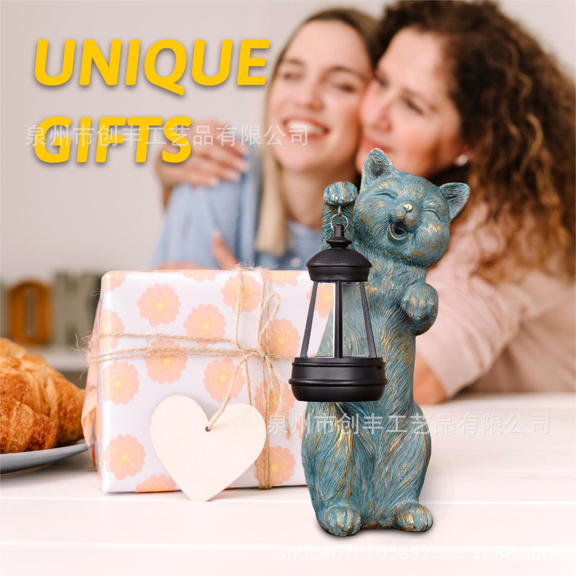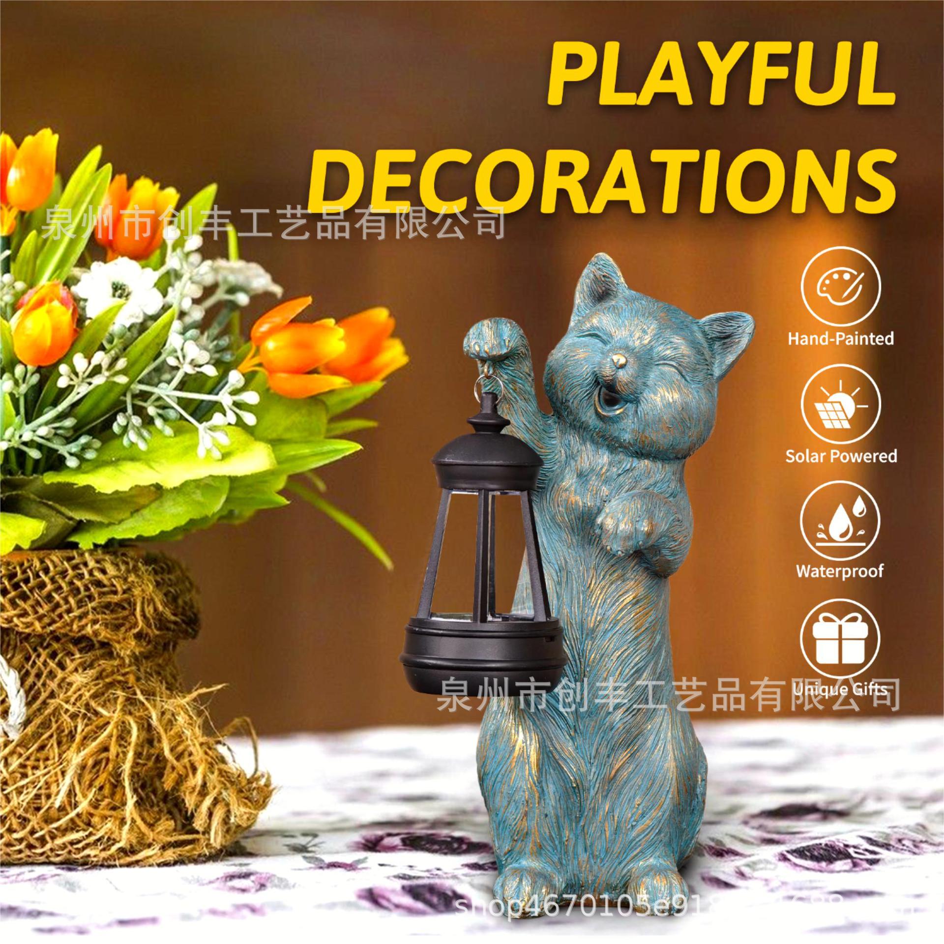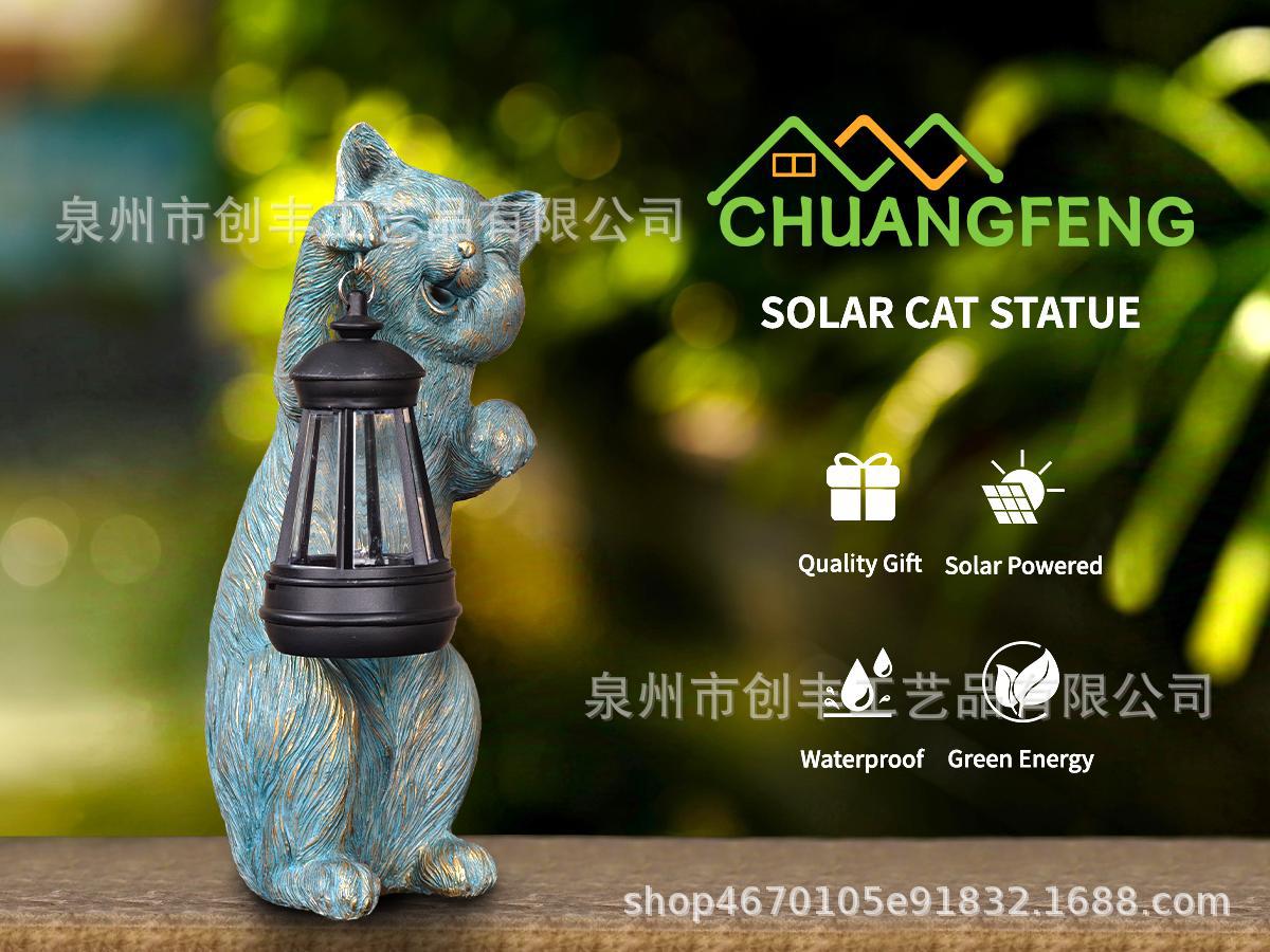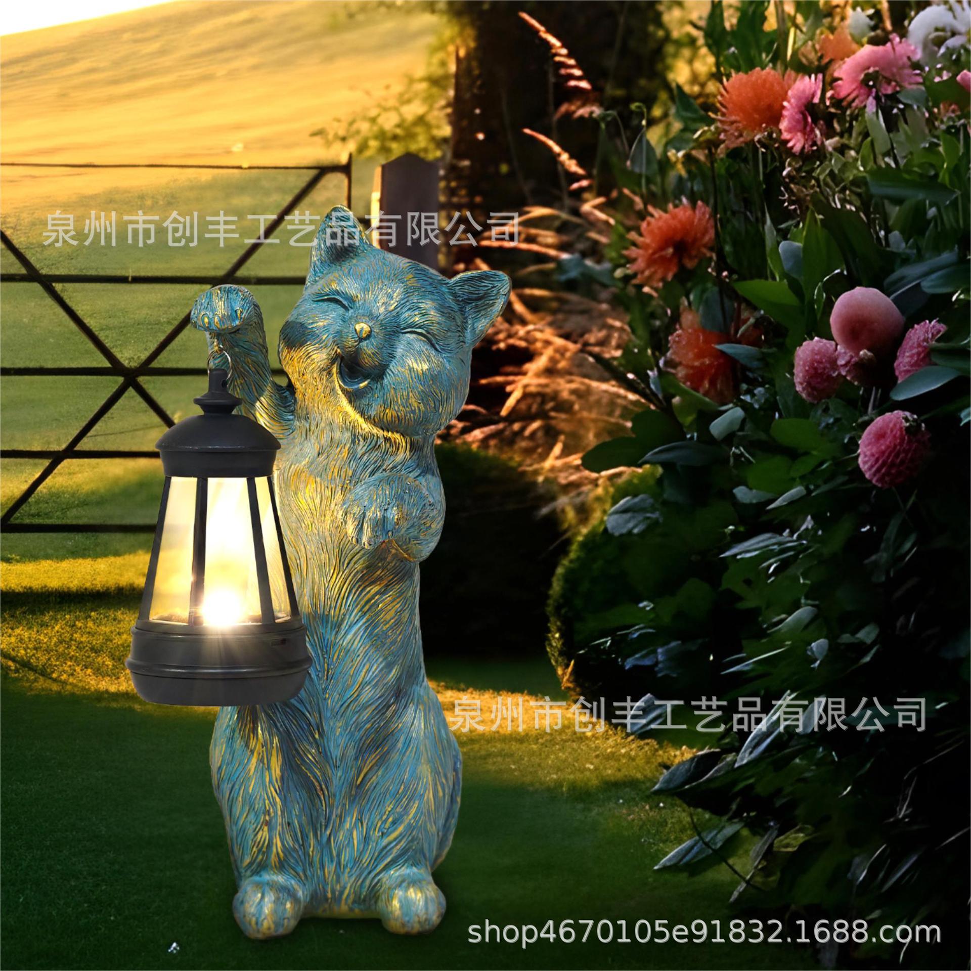 야외 태양 정원 램프 장식품 고양이 등불 수지 공예 동상 정원 안뜰 장식품